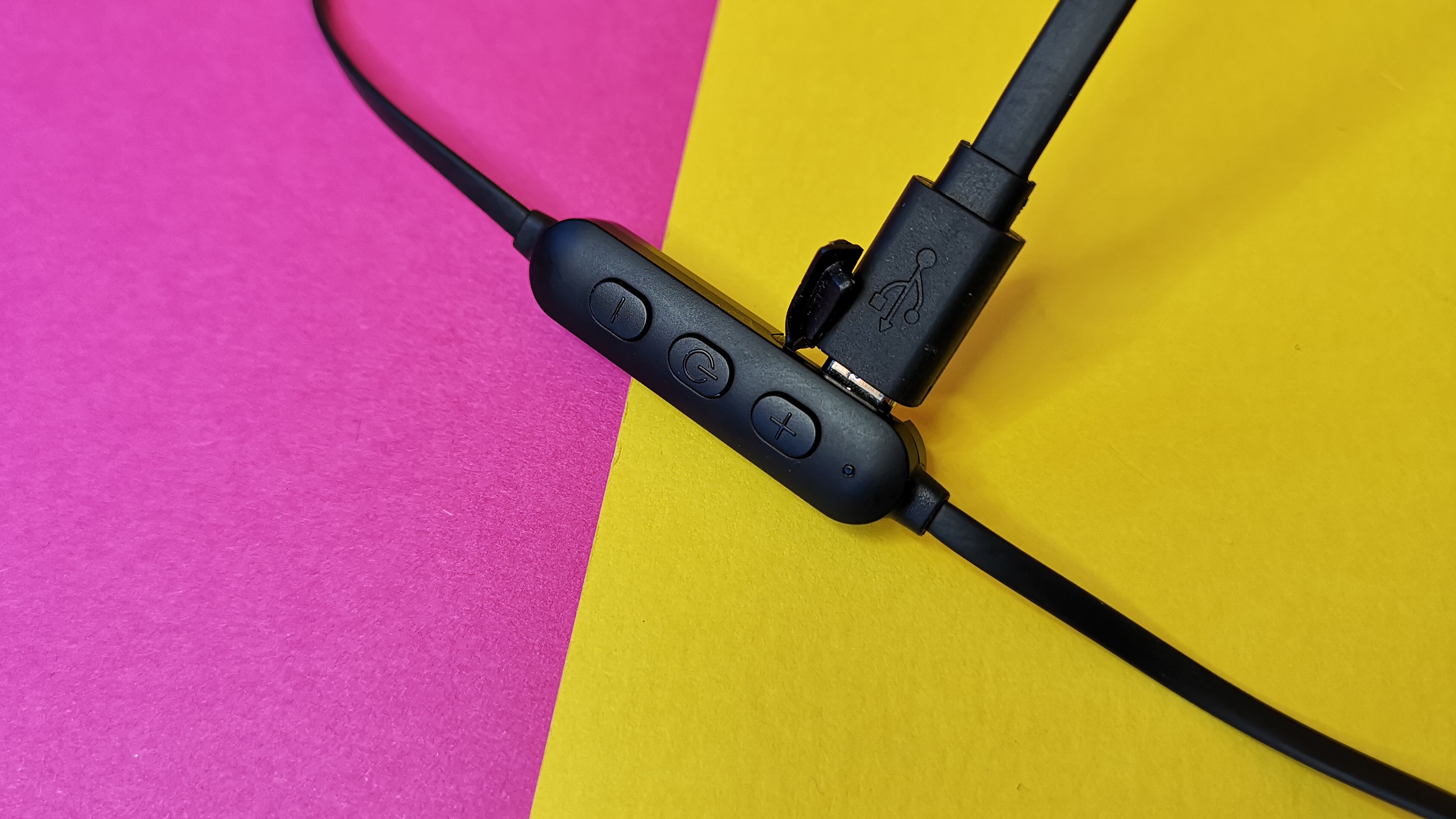 Das Öffnen der Klappe zur Micro-USB-Ladebuchse klappt auch mit kurzen Fingernägeln problemlos. Bei längerer Nichtbenutzung sind die Kopfhörer im Transportbeutel gut aufgehoben. Bei kurzen Nutzungspausen kommt die magnetische Rückseite in Spiel. Die Kopfhörer hängen dann wie eine Kette um den Hals. Wer die Kopfhörer zusätzlich sichern möchte, greift auf die beigelegte Kabelklammer zurück und befestigt diese zusätzlich an der Kleidung.