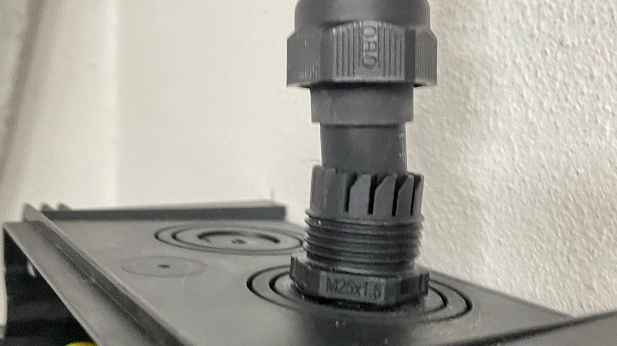 Die Verkablung an unserem vorhandenen Anschluss war allerdings etwas kompliziert. Dazu wird das Kabel durch eine Aussparung ins Gehäuseinnere geführt und mit einer Muffe fixiert. Leider ist hier nur die kleine Durchführung beigelegt, sofern man eine Zwischengröße benötigt (wie wir im Test) kann man diese nicht ohne Werkzeug montieren. Für den dauerhaften Einsatz hilft hier nur der Nachkauf einer passenden Größe.