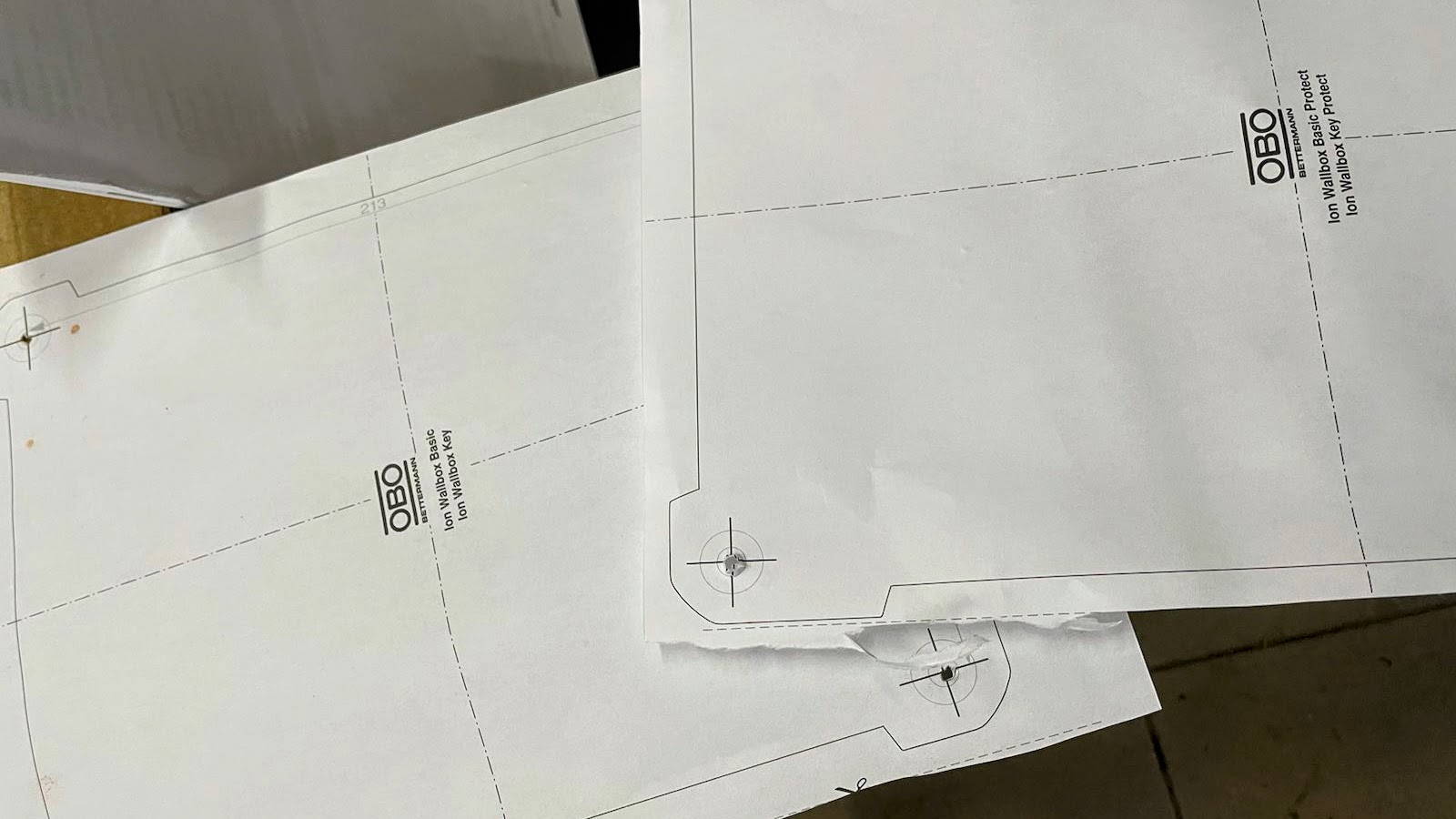 Obo Bettermann liefert der Ion Basic zwei unterschiedliche Schablonen für die Wandbohrung mit. Welche davon die richtige ist, muss man allerdings genau prüfen. Denn je nachdem, welche Ausstattungsvariante man wählt, passt nur eine der Schablonen.