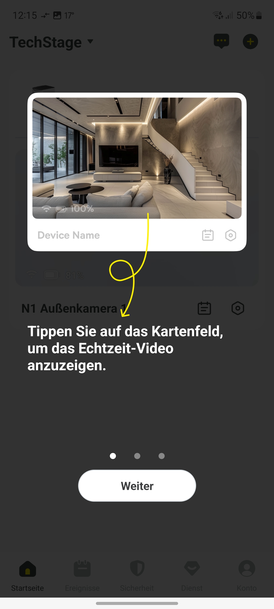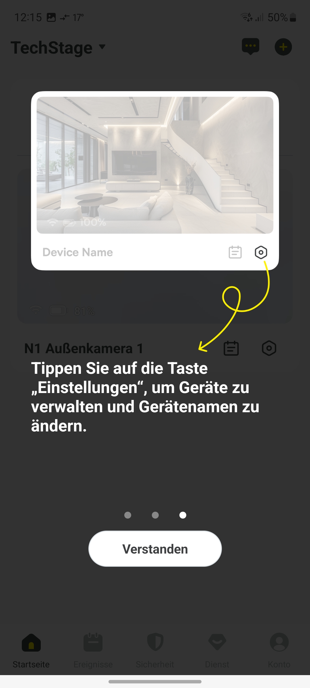 Die Aufnahmen von erkannten Bewegungen zeigt die App übersichtlich im Bereich Ereignisse. In der Beschreibung zu den Ereignissen klassifiziert die App die Erkennungsart mit Menschlich oder Bewegung. Da wir die Bewegungserkennung allerdings auf Personen begrenzt haben, ist das etwas verwirrend.