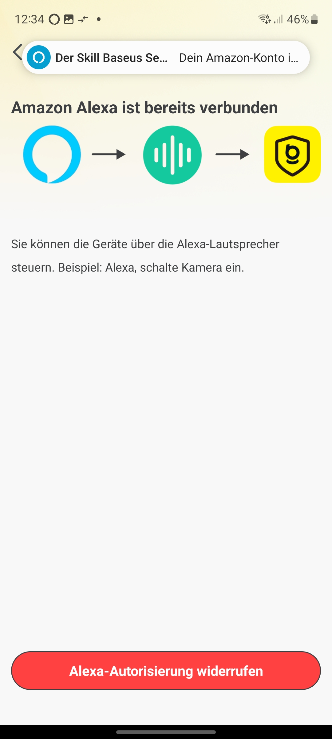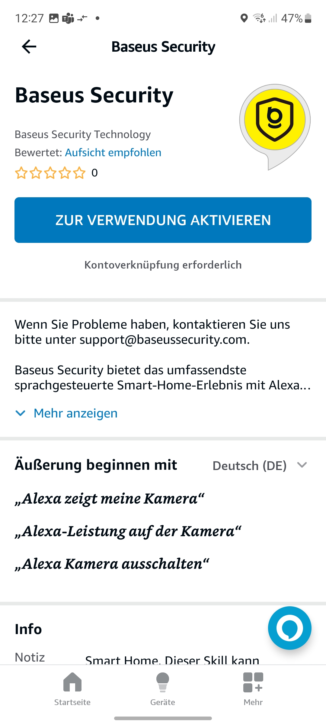 Eine Sprachsteuerung unterstützt die Baseus N1 Outdoor über Amazon Alexa und Google Assistant. Im Test hat die Koppelung mit Alexa zwar funktioniert, allerdings erscheint der Livestream nicht auf einem Echo Show 8. Eine Verbindung zur Kamera konnte Alexa aber herstellen und hat zuverlässig über Bewegungserkennungen informiert.