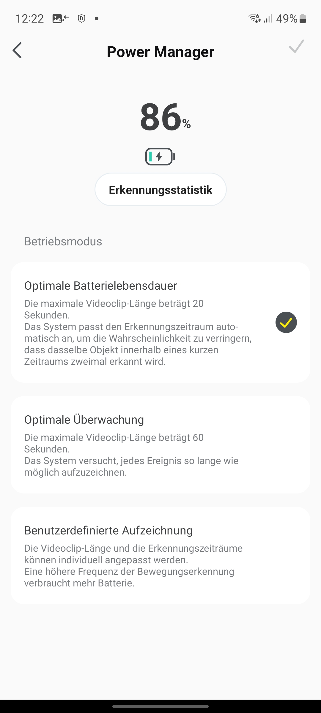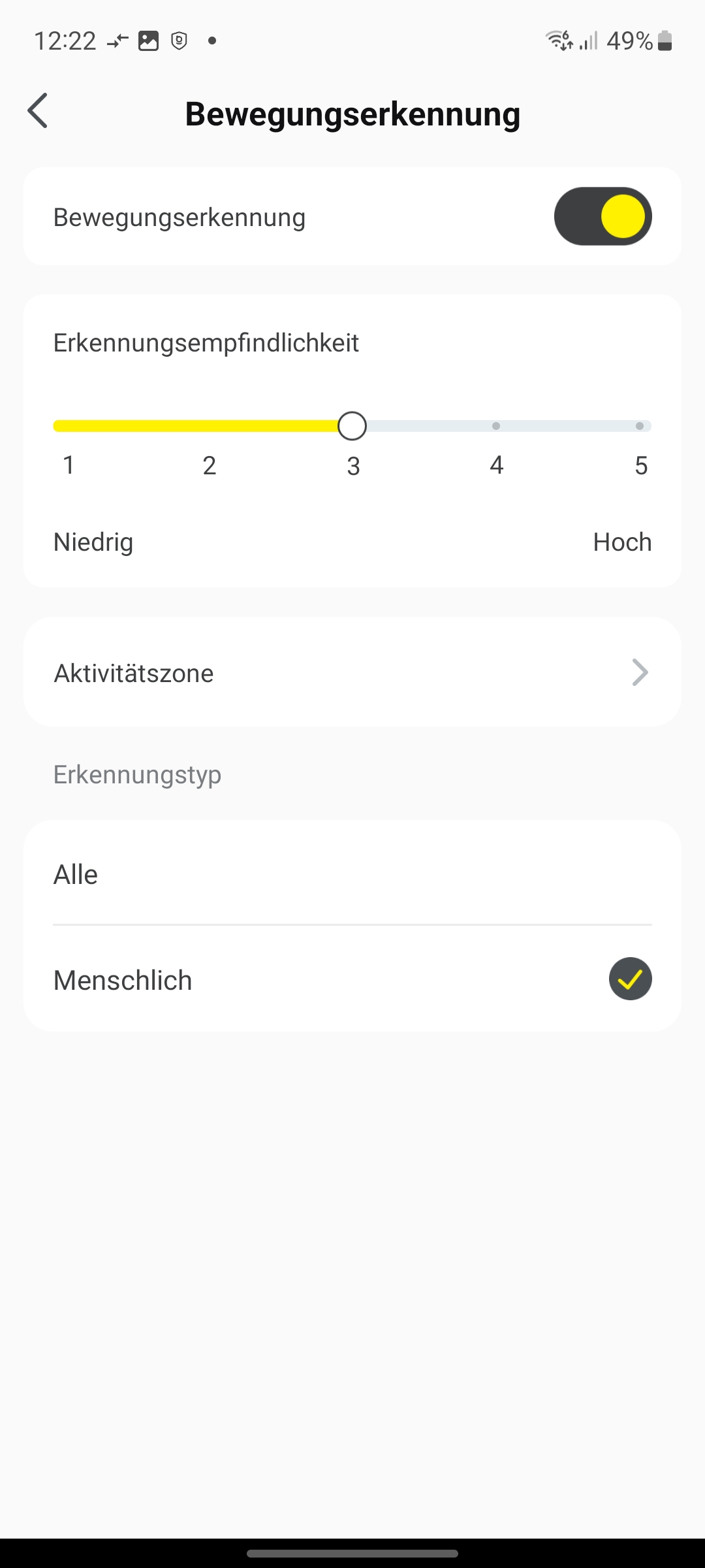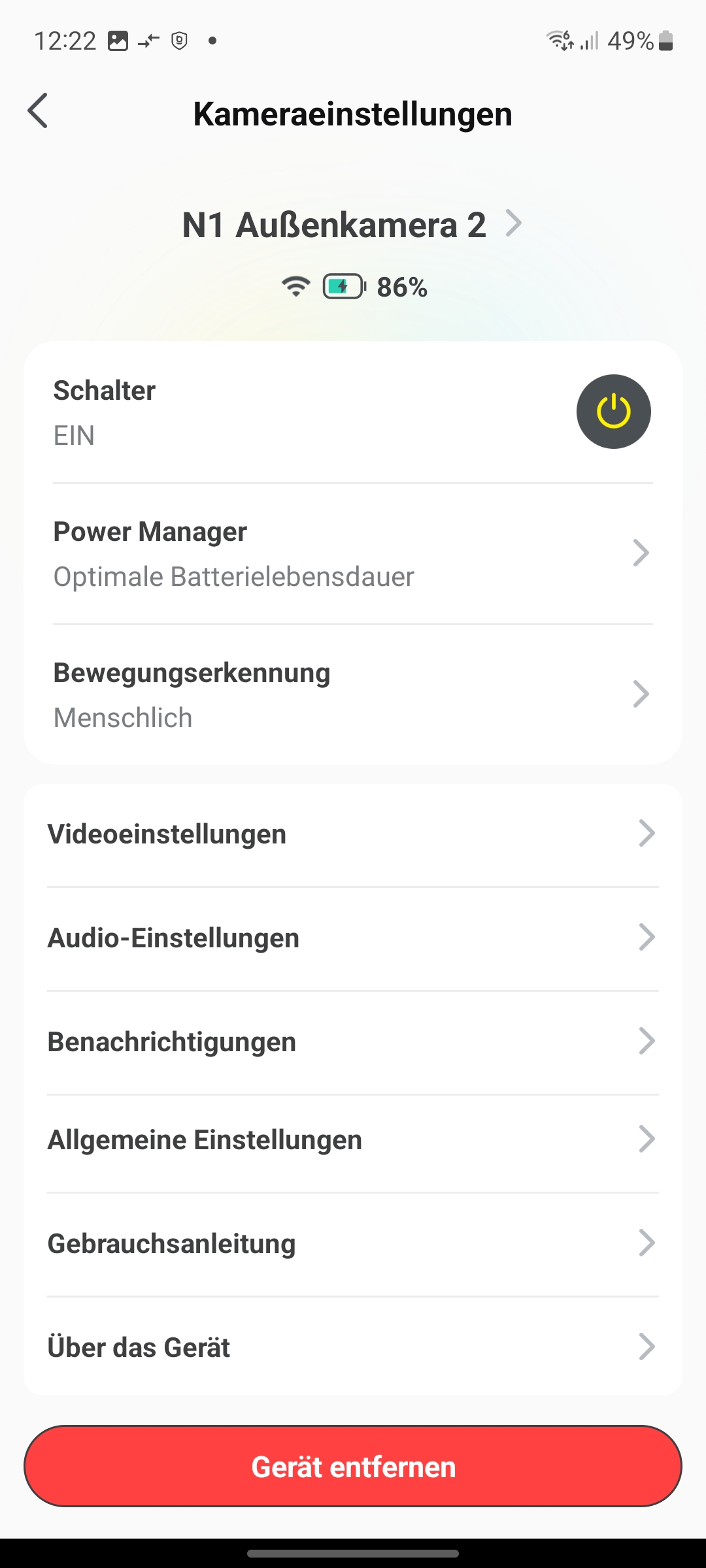 Bei der Bewegungserkennung unterscheidet die Baseus N1 Outdoor zwischen Personen und anderen sich bewegenden Objekten. Im Test kommt es mit der standardmäßig aktivierten Bewegungserkennung allerdings häufig zu Fehlalarmen, durch etwa vom Wind bewegte Äste, Luftballons und anderen Gegenstände. Erst nachdem wir die Bewegungserkennung auf Personen begrenzen, registrieren wir keine Fehlalarme mehr.