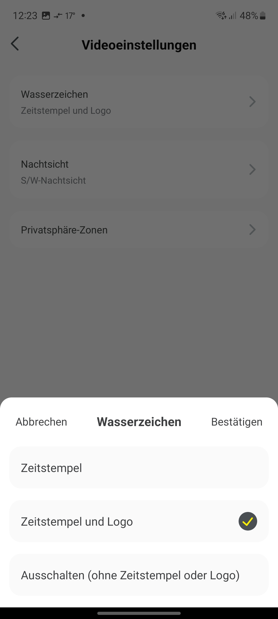 Die Alarmierungsmöglichkeiten der Baseus-Kamera umfassen neben den klassischen Pushbenachrichtigungen auch Alarmtöne und Lichtsignale der Spotlight-LEDs. Letztere können Anwender unter der Option Sicherheit konfigurieren. Akustische Alarme kann man dort für die Kameras und auch für den Hub aktivieren.