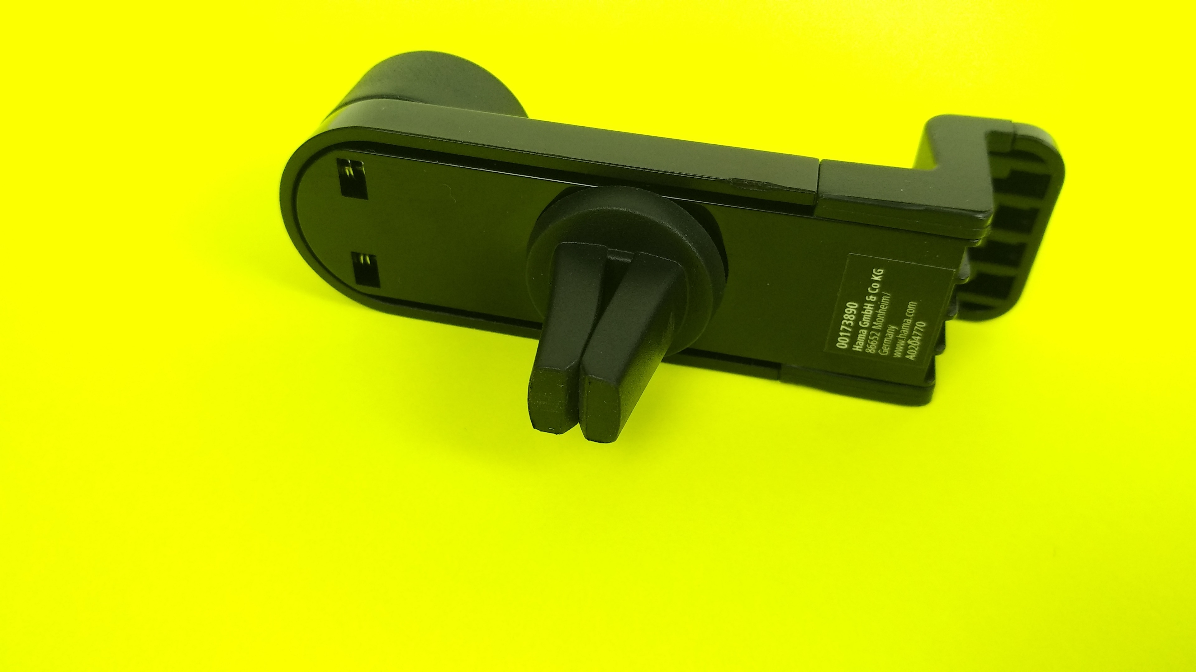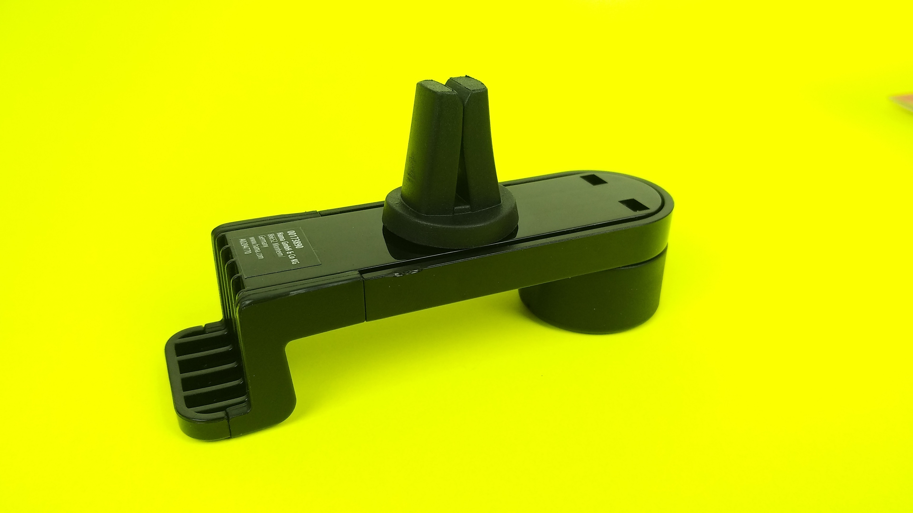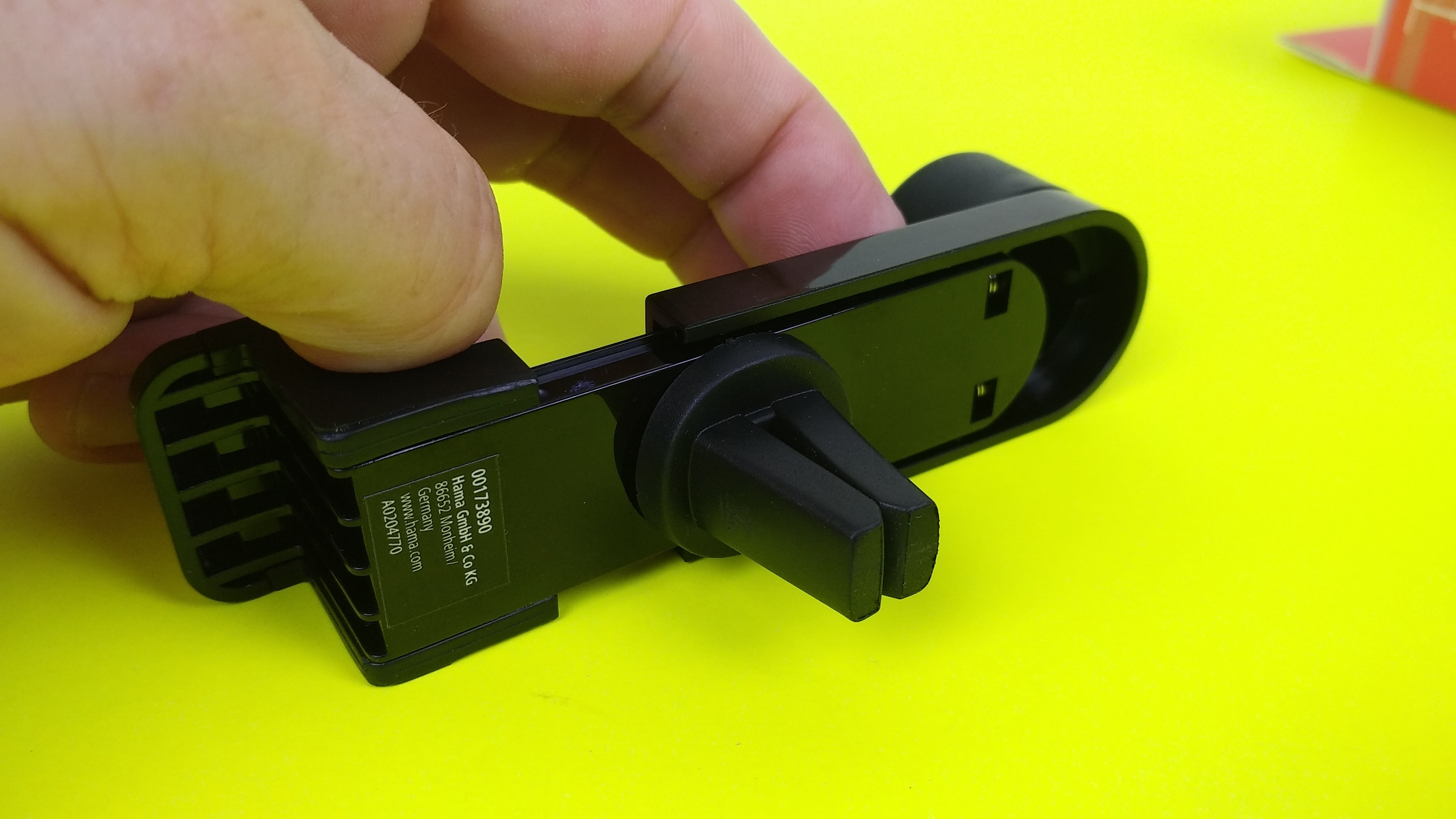 Die Handyhalterung besteht aus hochglänzendem, nicht besonders wertig wirkendem Kunststoff. Sie hat die Abmessungen 140 × 35 × 29,5 Millimeter und wiegt 33 Gramm. Wo das Smartphone den Flipper berührt, kommt gummiertes Material zum Einsatz, um das Handy vor Beschädigung zu schützen. Auch bei den Kunststofflippen zur Befestigung am Lüftungsgitter ist dies der Fall. Das Smartphone sitzt zwischen den beiden Enden der Halterung, die sich auseinanderziehen lassen. Im Inneren des Gadgets sind zwei Federn befestigt, die für die nötige Spannung und damit für einen guten Halt sorgen.