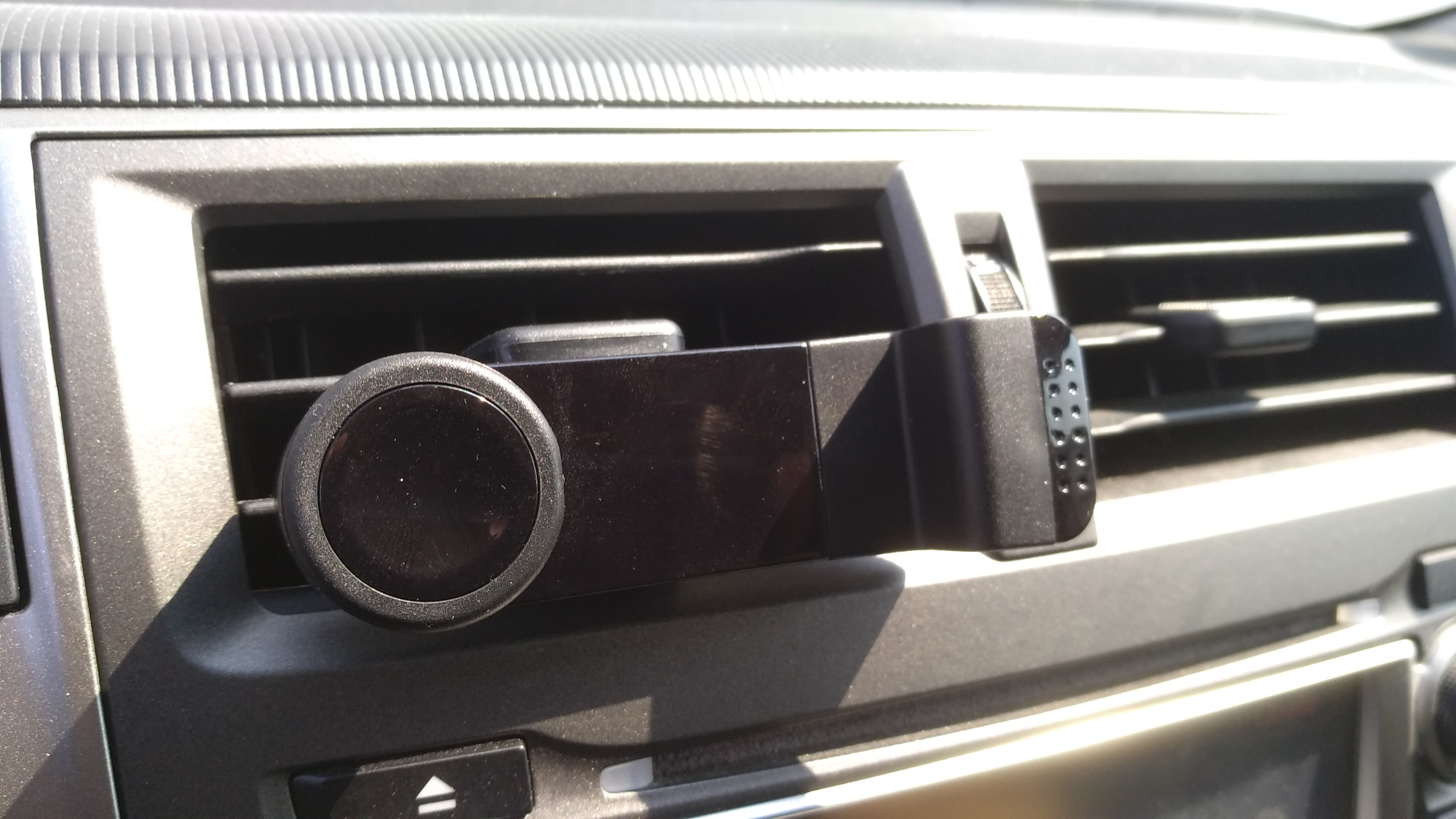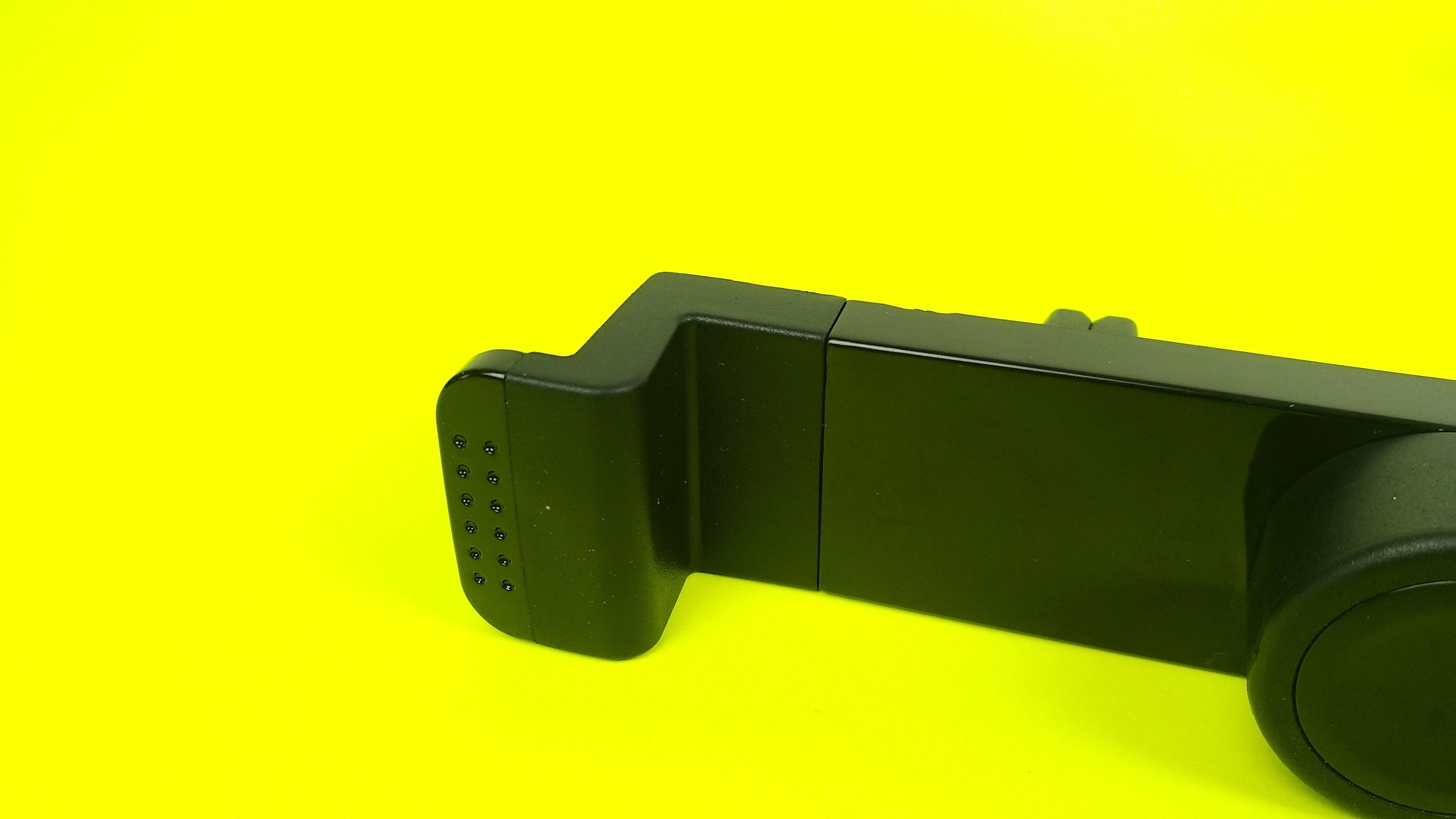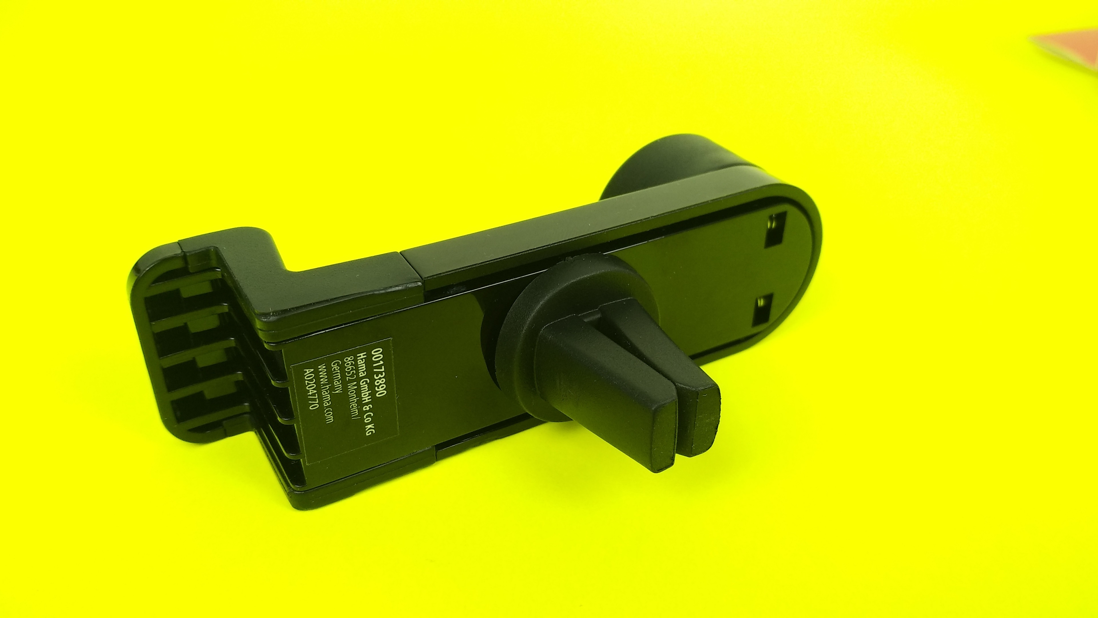 Die Handyhalterung besteht aus hochglänzendem, nicht besonders wertig wirkendem Kunststoff. Sie hat die Abmessungen 140 × 35 × 29,5 Millimeter und wiegt 33 Gramm. Wo das Smartphone den Flipper berührt, kommt gummiertes Material zum Einsatz, um das Handy vor Beschädigung zu schützen. Auch bei den Kunststofflippen zur Befestigung am Lüftungsgitter ist dies der Fall. Das Smartphone sitzt zwischen den beiden Enden der Halterung, die sich auseinanderziehen lassen. Im Inneren des Gadgets sind zwei Federn befestigt, die für die nötige Spannung und damit für einen guten Halt sorgen.