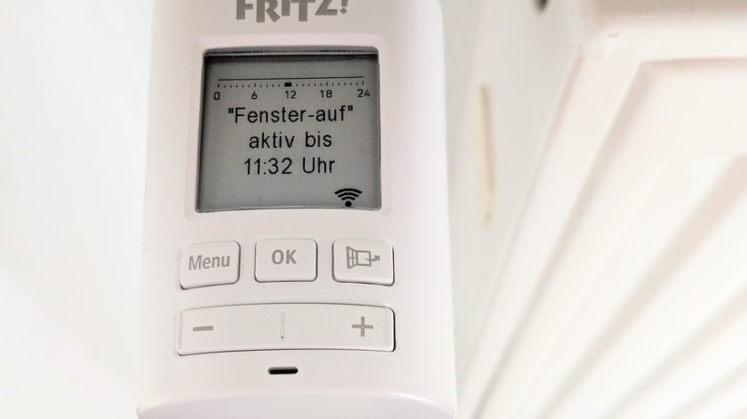 Die Fensteroffenerkennung soll den Heizkörper bei einem plötzlichen Temperaturabfall für einen frei wählbaren Zeitraum abschalten. Obwohl die Empfindlichkeit in den Optionen auf hoch gestellt war, funktionierte das im Test nur, nachdem wir einen Kühlbeutel aus dem Gefrierfach auf das Thermostat legten. Offensichtlich war bei geöffnetem Fenster der Temperaturunterschied nicht hoch genug. Das kann daran liegen, dass das Heizkörperthermostat nicht genau unter dem Fenster ruht, sondern etwa einen halben Meter daneben.