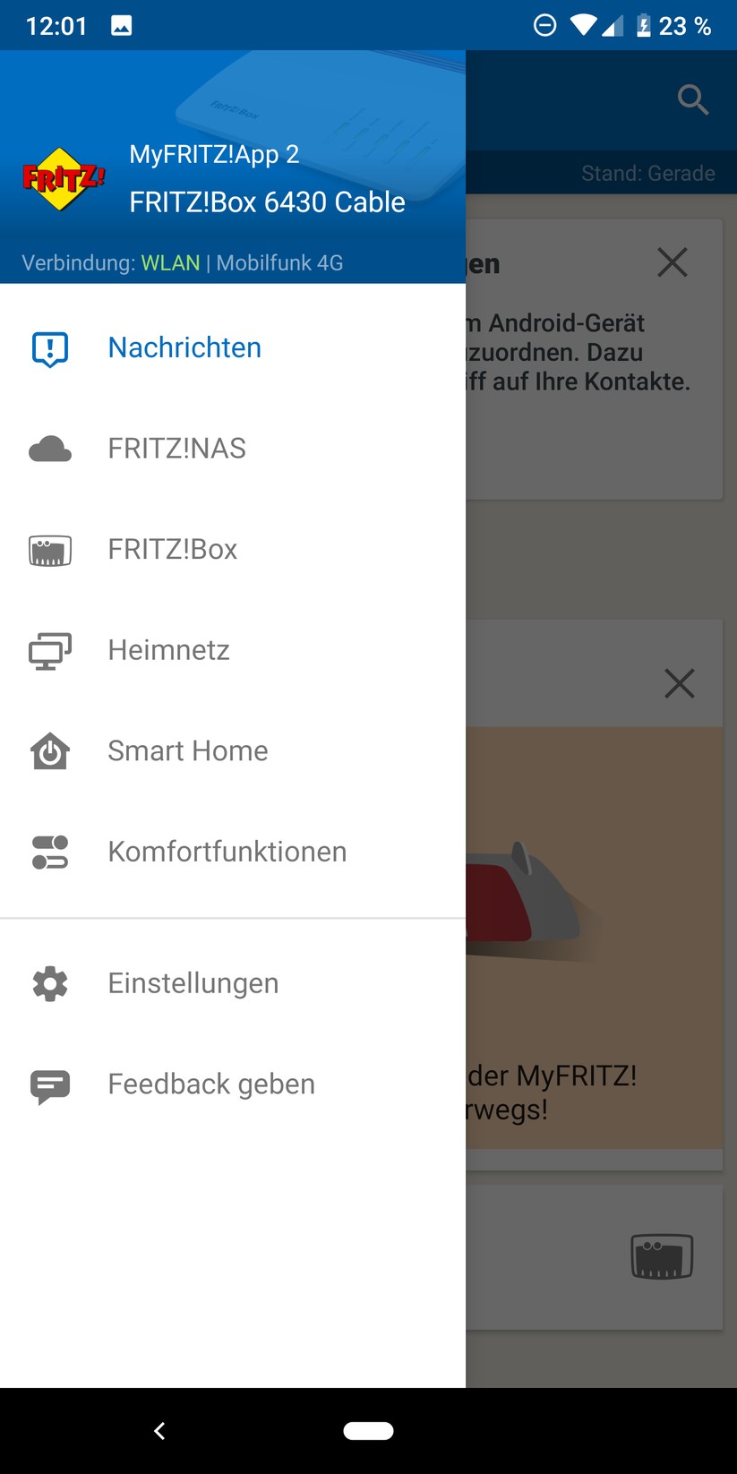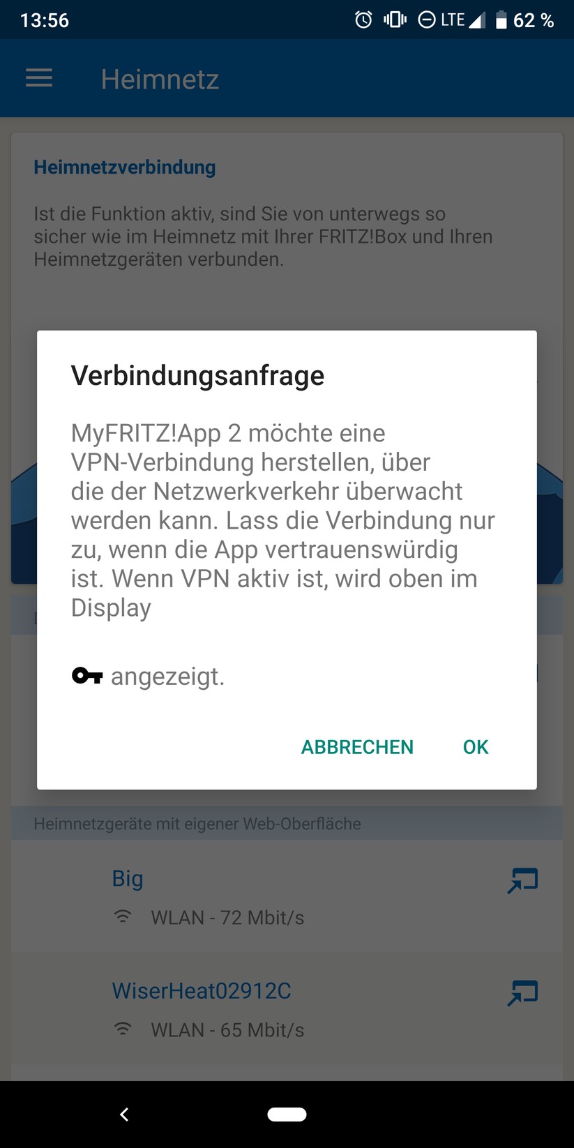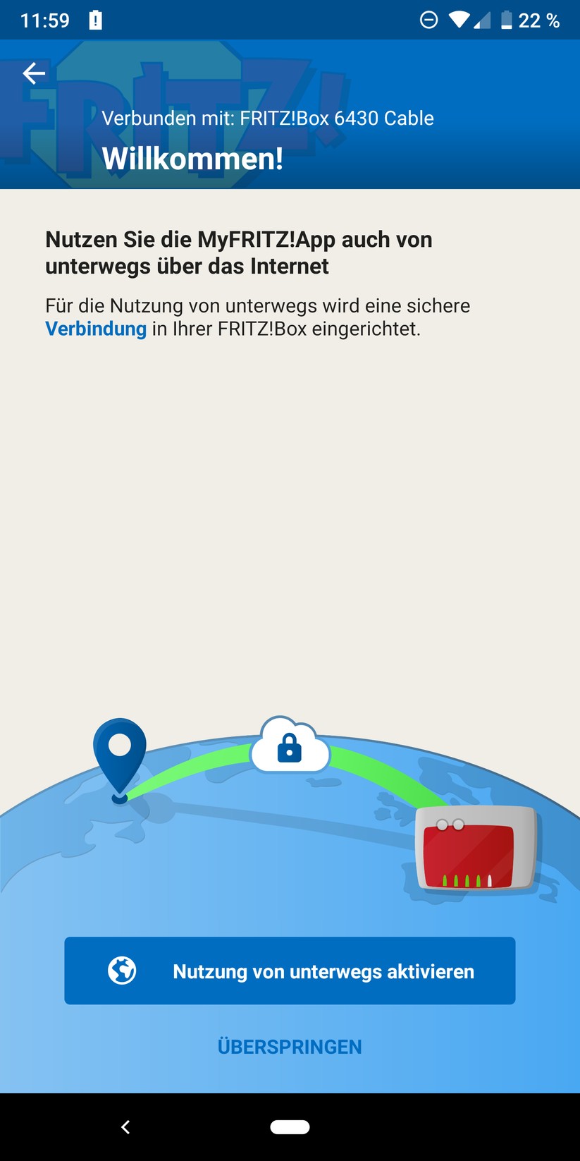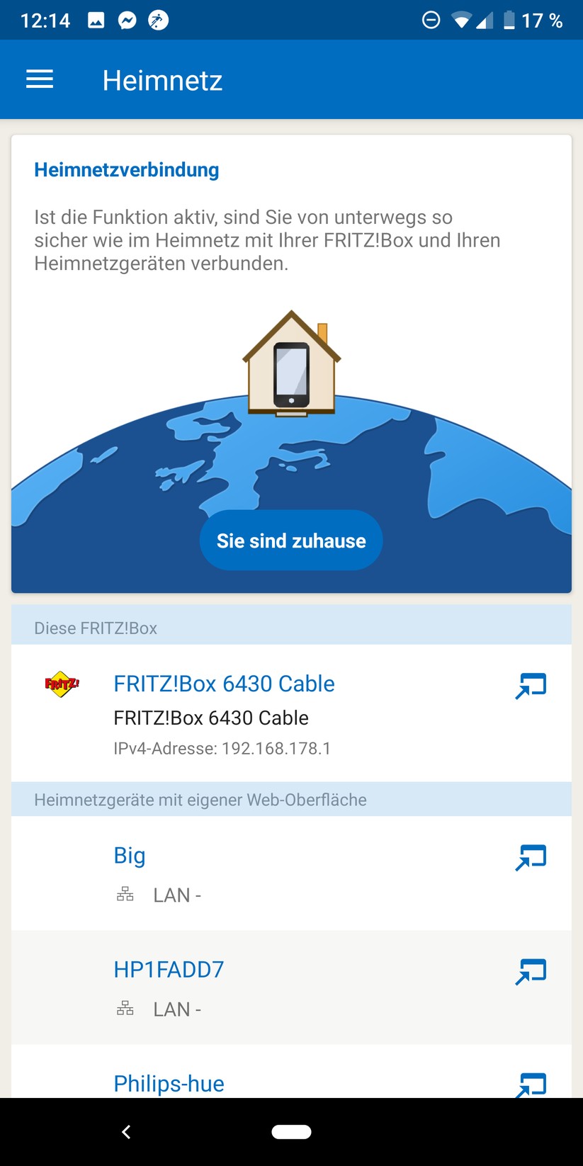 Wer sich im Heimnetzwerk befindet, kann im Browser unter der URL fritz.box nach der Eingabe des Passworts, welches auf der Unterseite der Fritzbox steht, die volle Funktionalität nutzen. Von außerhalb des eigenen WLANs baut dafür die MyFritz-App unter dem Menüpunkt Fritzbox eine VPN-Verbindung nach Hause auf. Das ist deutlich umständlicher als bei den meisten anderen Lösungen, aber eben auch sicherer.