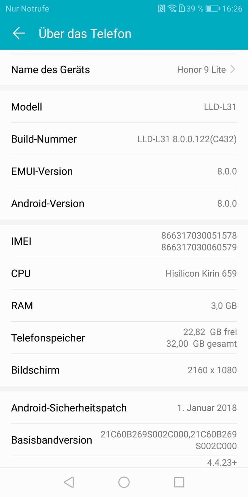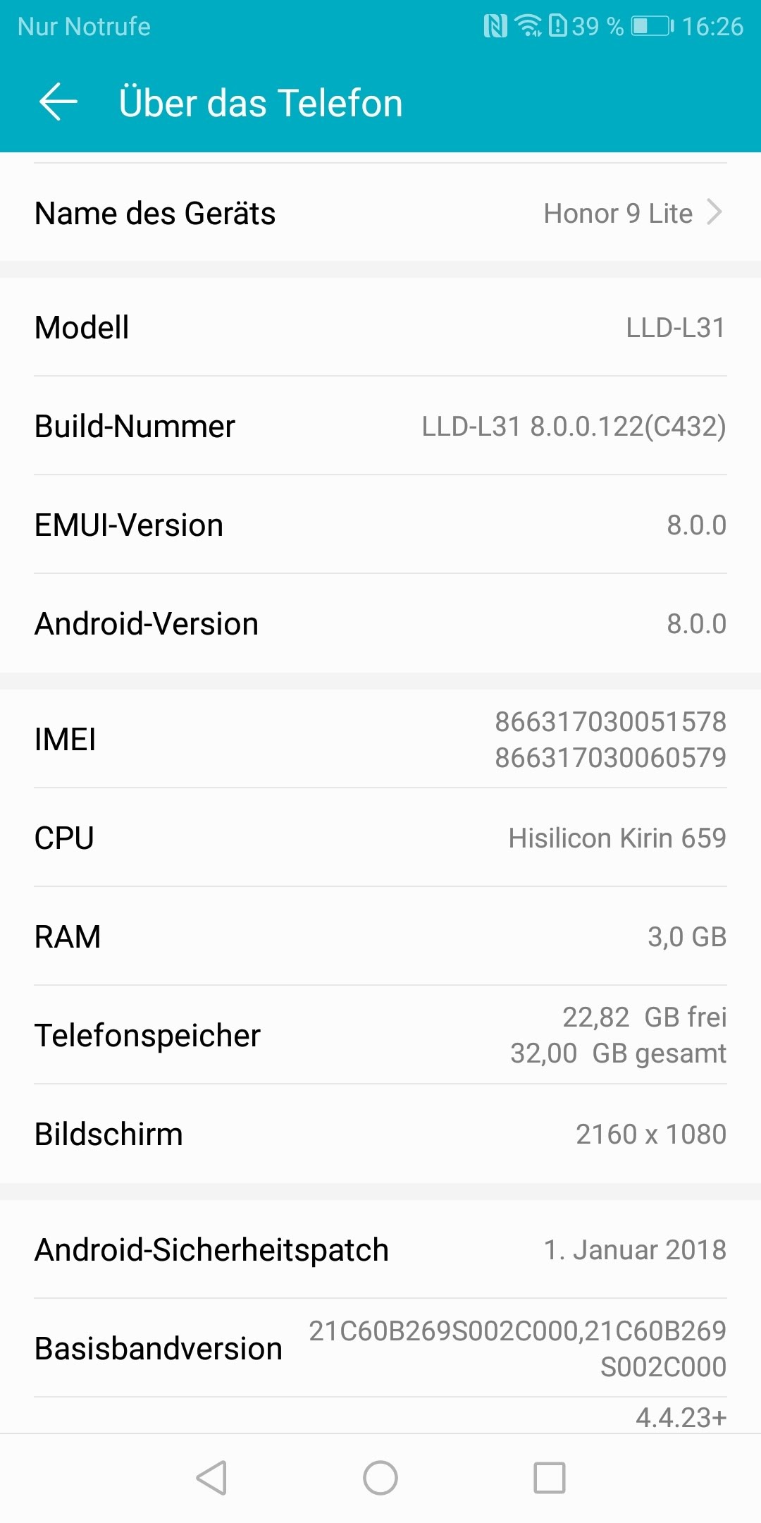 Aber so beeindruckend diese Zahlen auch sein mögen: Für die Bedienung im Alltag ist die Leistung des Honor 9 Lite völlig ausreichend. Bis auf wenige Stellen, zum Beispiel beim Rotieren des Displays in der Kamera-App, ruckelt das Smartphone kaum und läuft flüssig.