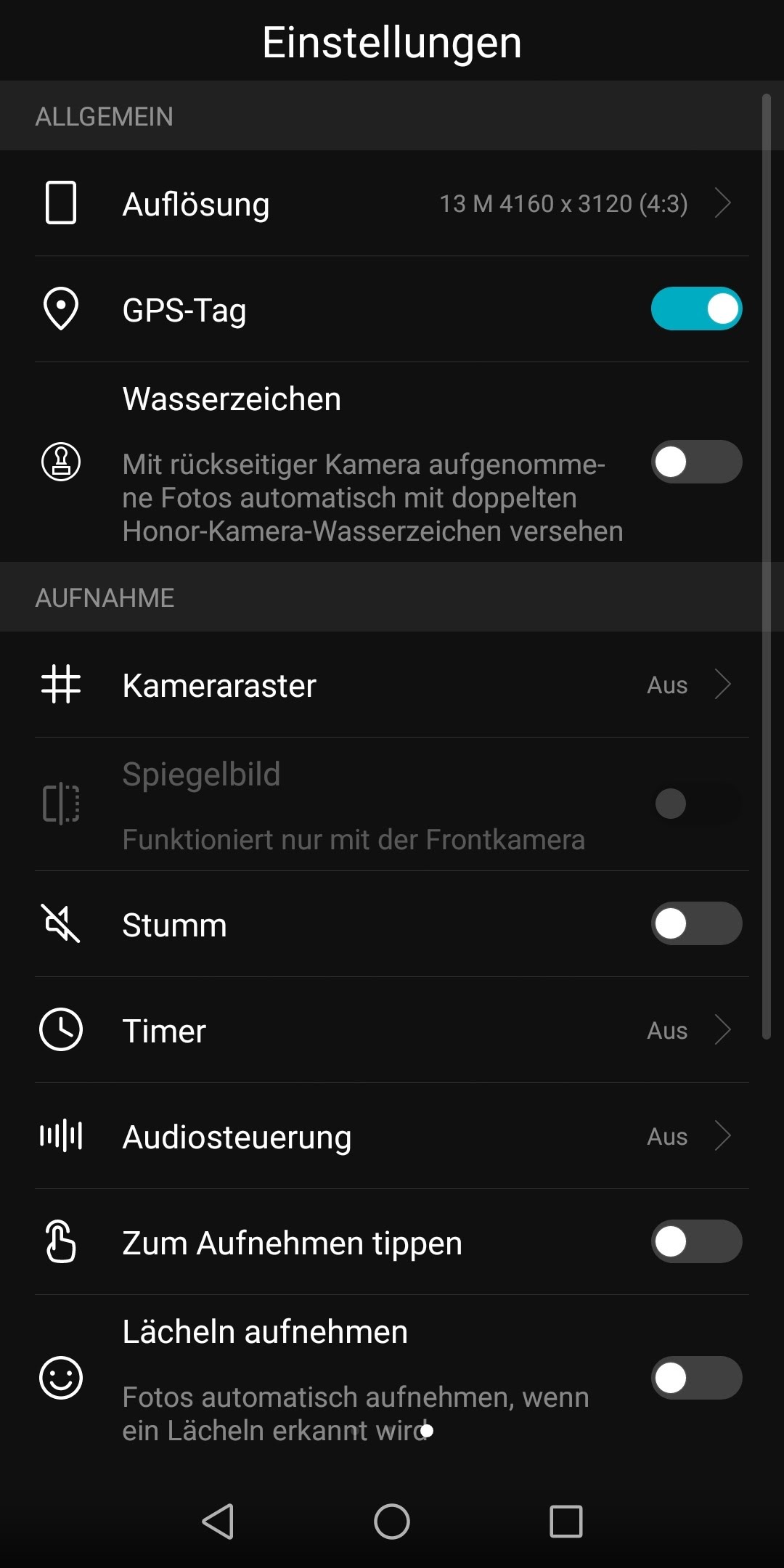 Die Kamera-App auf dem Honor 9 Lite bietet umfangreiche Funktionen. Neben einer Automatik beherrscht sie auch die manuelle Steuerung für Foto- und Videoaufnahmen in einer maximal möglichen Auflösung von Full-HD (1080p). Darüber hinaus existieren Funktionen wie Zeitraffer, Langzeitbelichtung, Hochkontrast (HDR) und bewegte Bilder.