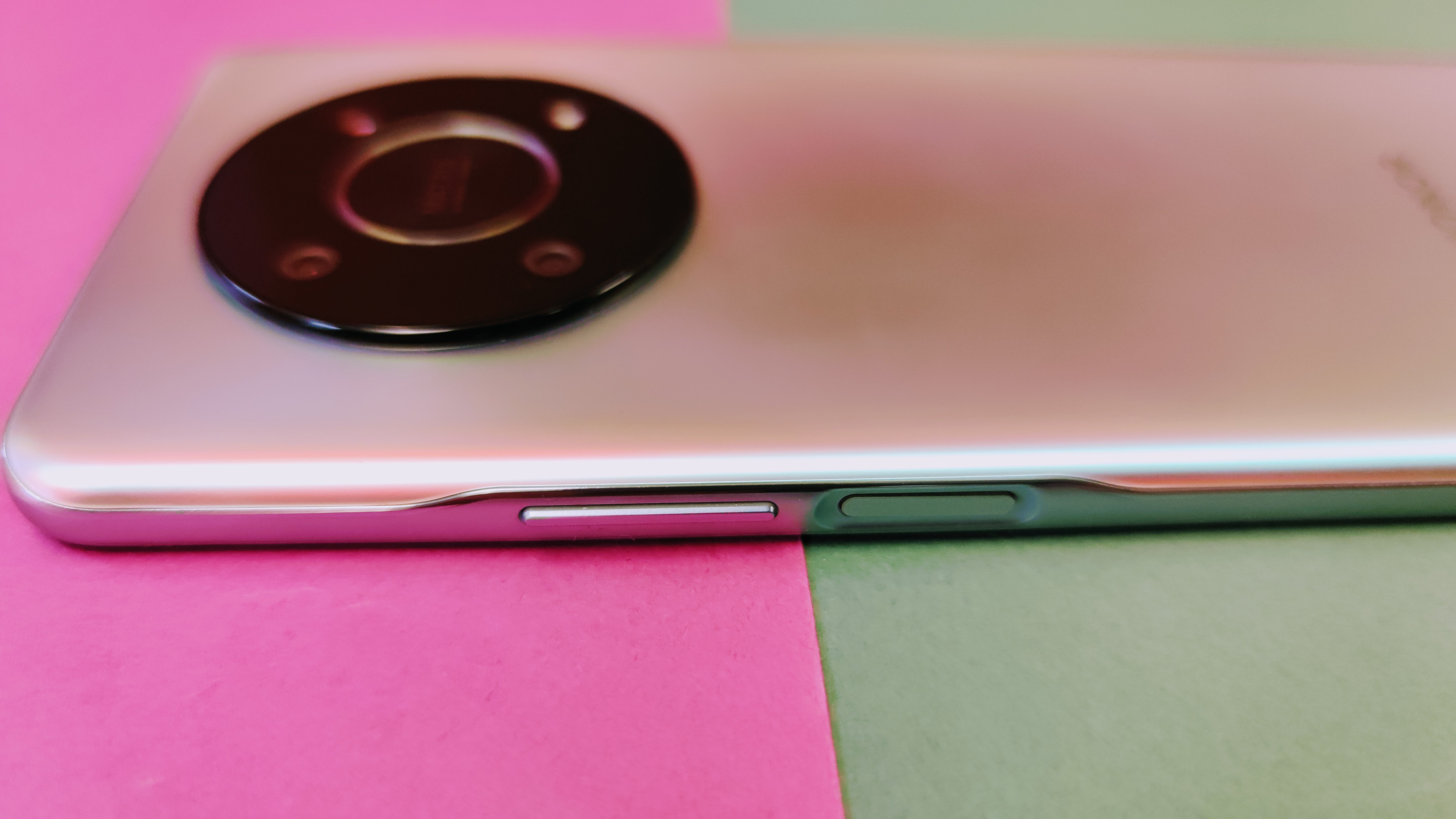 Für einen wertigen Eindruck sorgt der Rahmen aus Metall und die nahtlose Verarbeitung ohne größerer Spaltmaße. Lediglich die Display-Schutzfolie um die Punch-Hole-Notch stört etwas das haptische Erlebnis. Das Display ist vollkommen eben, anders als beim Magic 4 Pro mit seinem gewölbten 2,5D-Display. Der Power-Button ist auf der rechten Seite in einer kleinen Kerbe eingelassen – dort befindet sich zudem der Fingerabdrucksensor. Oberhalb liegt die Lautstärkewippe, die für unseren Geschmack ein klein wenig zu wackelig ist.