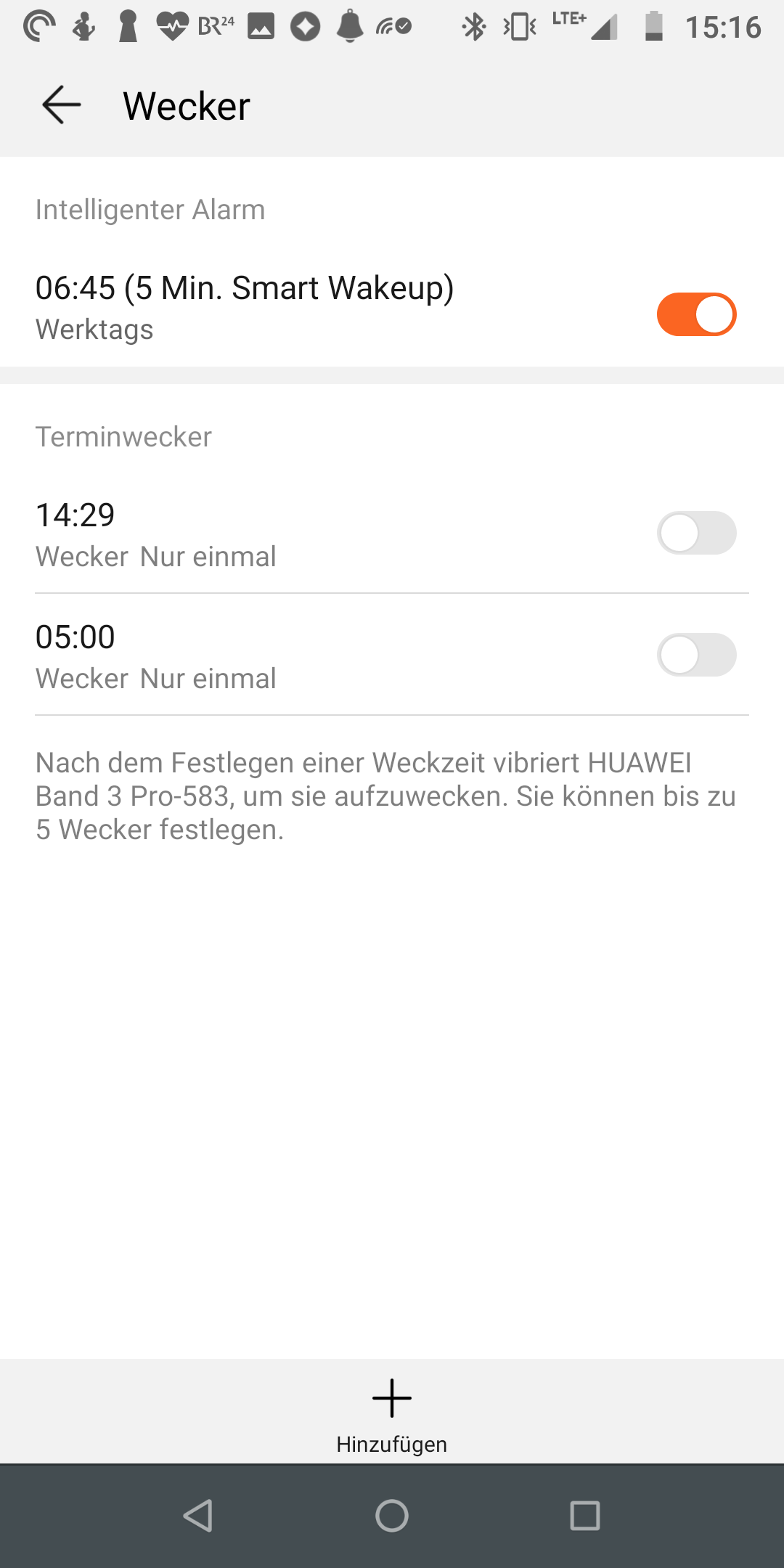 Der Fitness-Tracker bietet einen integrierten Wecker, der zur angegebenen Zeit ausreichend stark vibriert um selbst tiefe Schläfer aufzuwecken. Erfreulicherweise hat es der smarte Alarm erneut ins Armband geschafft: Dabei gibt der Nutzer einen Zeitraum an, in dem er geweckt werden möchte. Erkennt das Band 3 Pro, dass man in diesem Zeitraum am Aufwachen ist, vibriert es. Schläft man zu fest, weckt es gnadenlos am Ende der eingestellten Zeit. Im Test hat das gut funktioniert, zumindest gefühlt geht das Aufstehen mit dieser Funktion leichter.