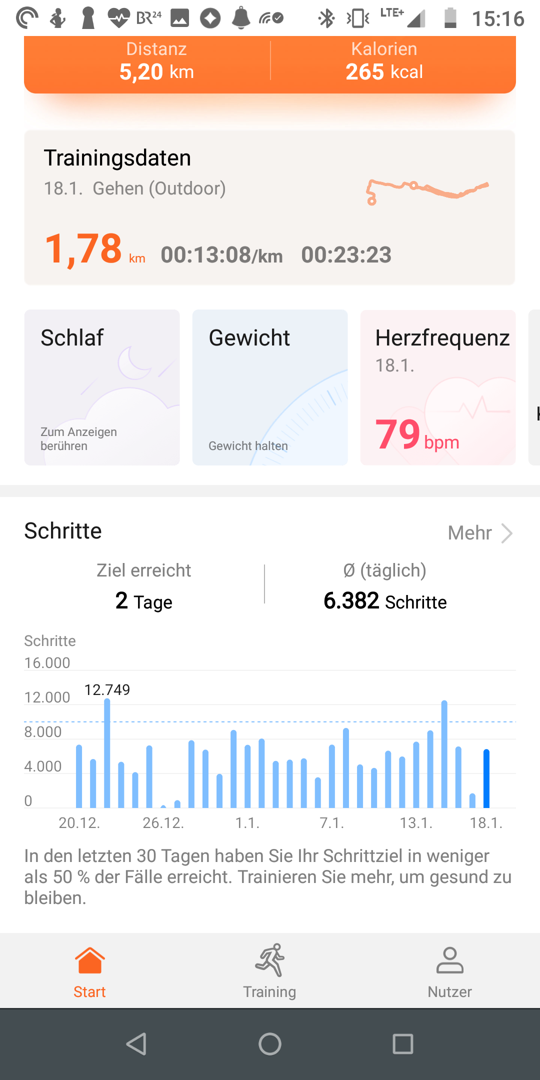 Die Health-App von Huawei gefällt uns im Alltag sehr gut. Die Aufmachung ist einfach, aber alle wichtigen Informationen sind enthalten. Die App übernimmt dabei nicht nur die Aufzeichnung der Sportdaten, sondern auch die Konfiguration des Fitness-Trackers.