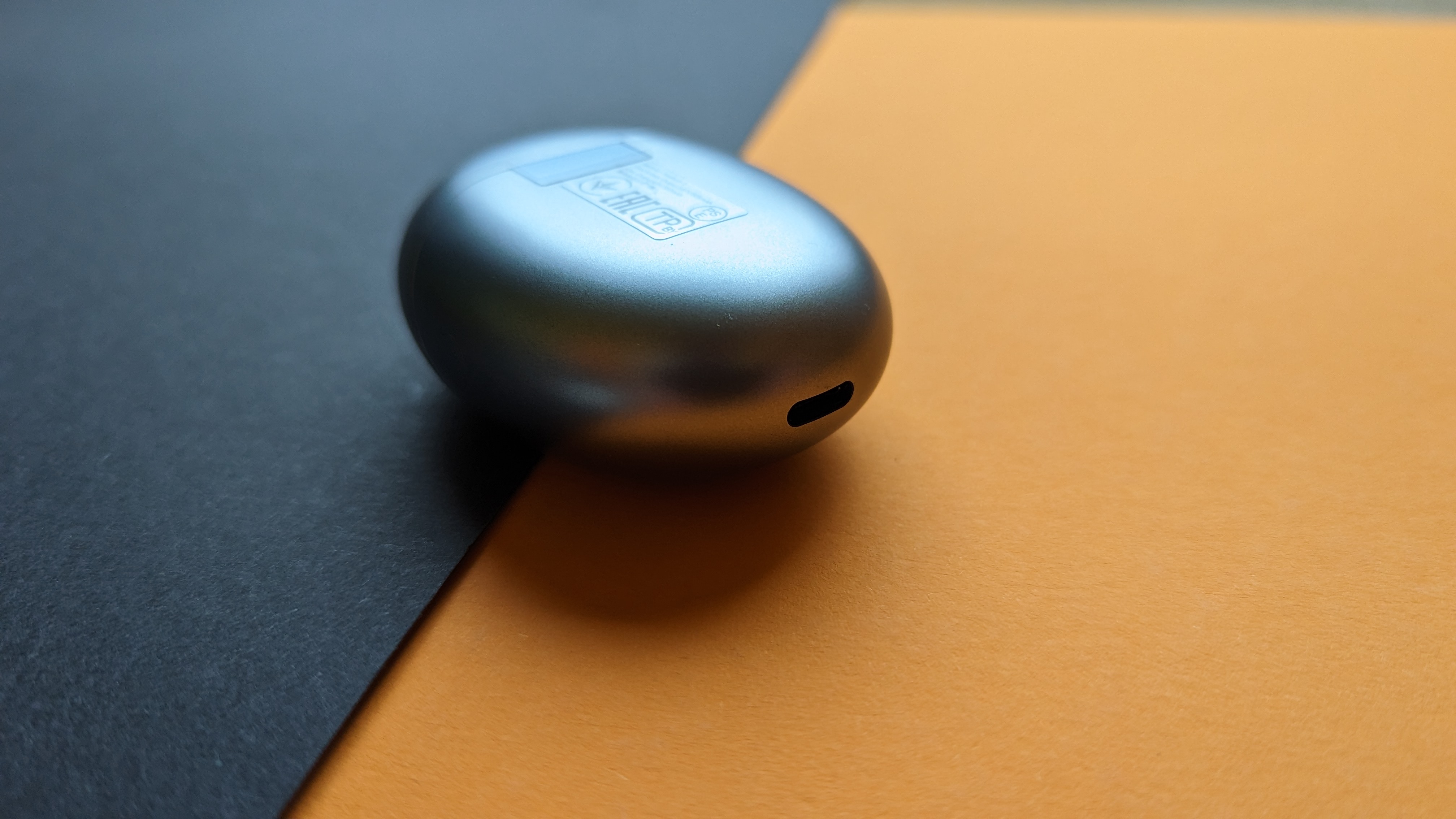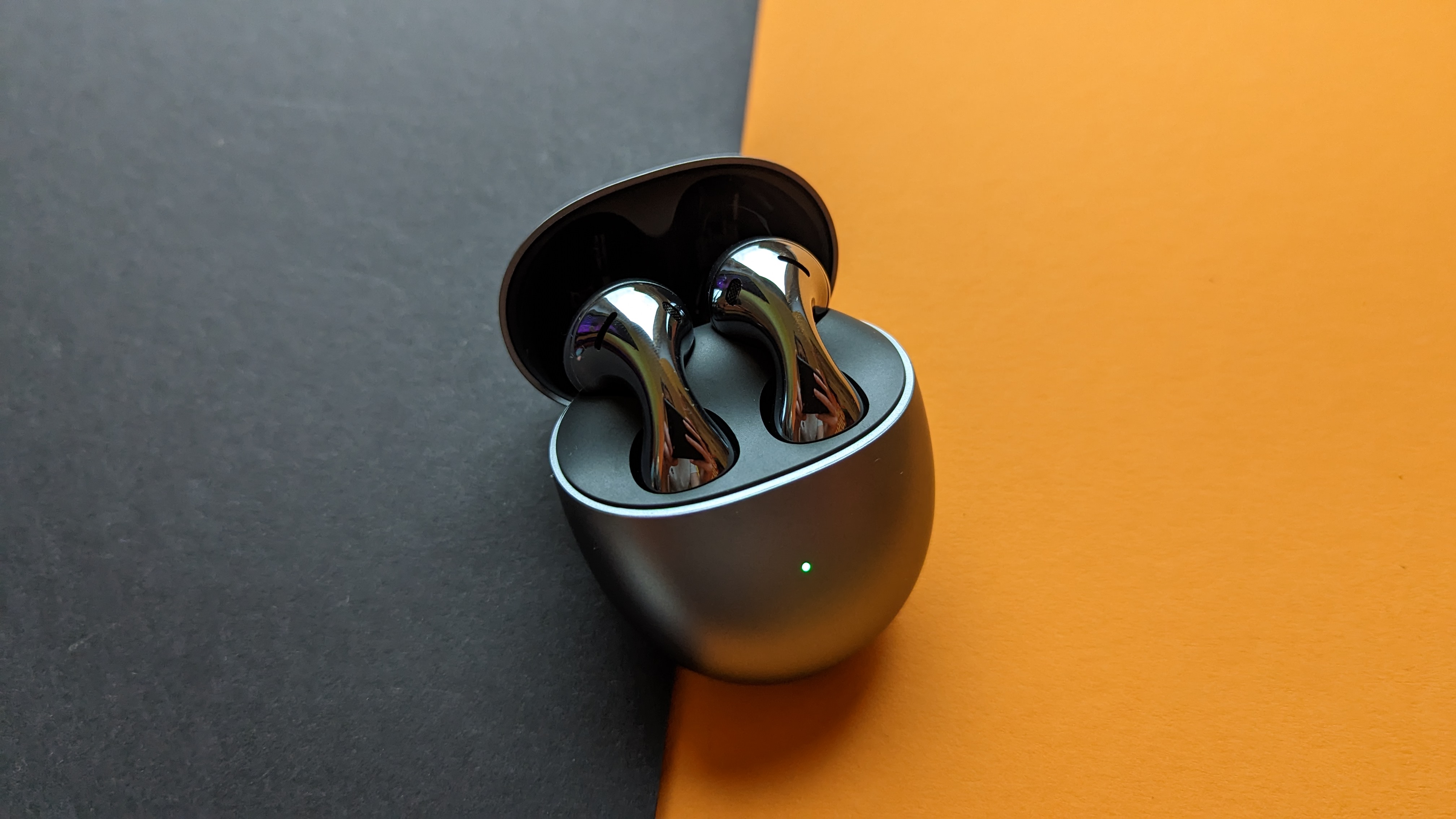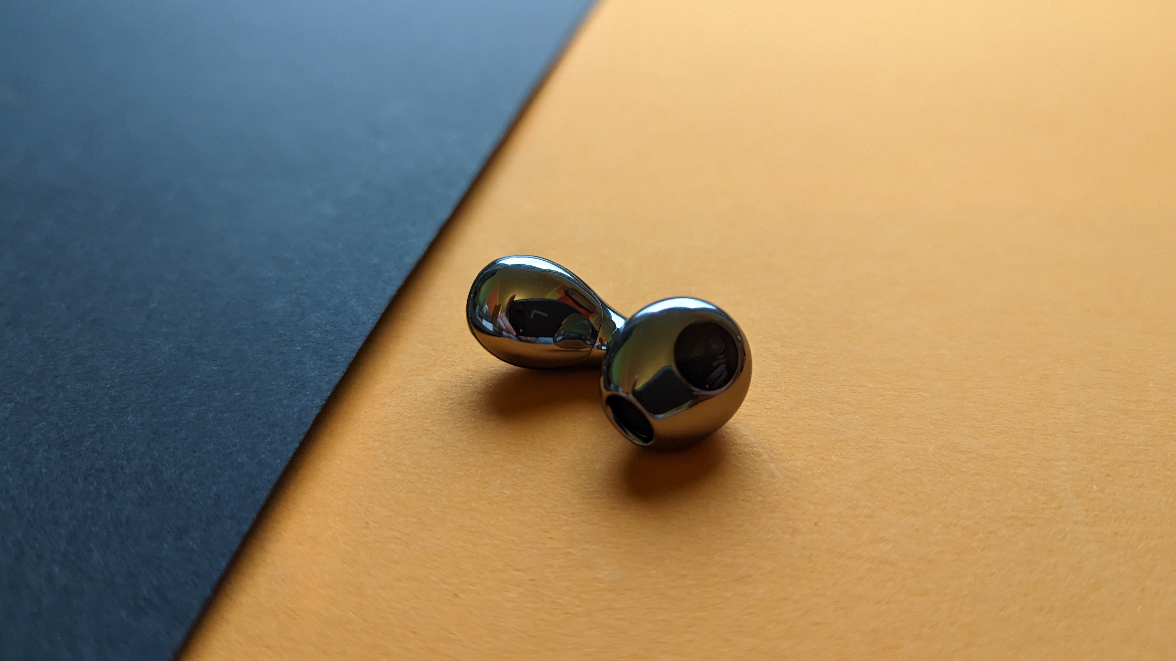 Deutlich auffälliger an den Kopfhörern ist das Aussehen. Sie sind metallic-grau und rundum vollständig glänzend poliert. Das sieht in unseren Augen echt cool aus und erinnert ein wenig an das Aussehen des chemischen Elements Quecksilber. Huawei selbst gibt an, sich an der sogenannten „Bologneser Träne“ orientiert zu haben. Das sind speziell gefertigte Glastropfen, die an ihren Köpfen durch Eigenspannung äußerst strapazierfähig sind, beim Abbrechen ihres Schwanzes allerdings sofort in Glasstaub zerspringen. Das Design ist in jedem Fall einzigartig und lässt sofort erkennen, mit welchen Ohrhörern man es hier zu tun hat. Ebenfalls silbergrau ist das Case, aber im Kontrast zu den Earbuds matt, geformt wie ein Ei und nicht zu groß. Unten befindet sich ein USB-C-Anschluss, rechts ein Pairing-Knopf. Auch die Verarbeitung stimmt – es gibt nirgendwo scharfe Kanten oder unschöne Übergänge.