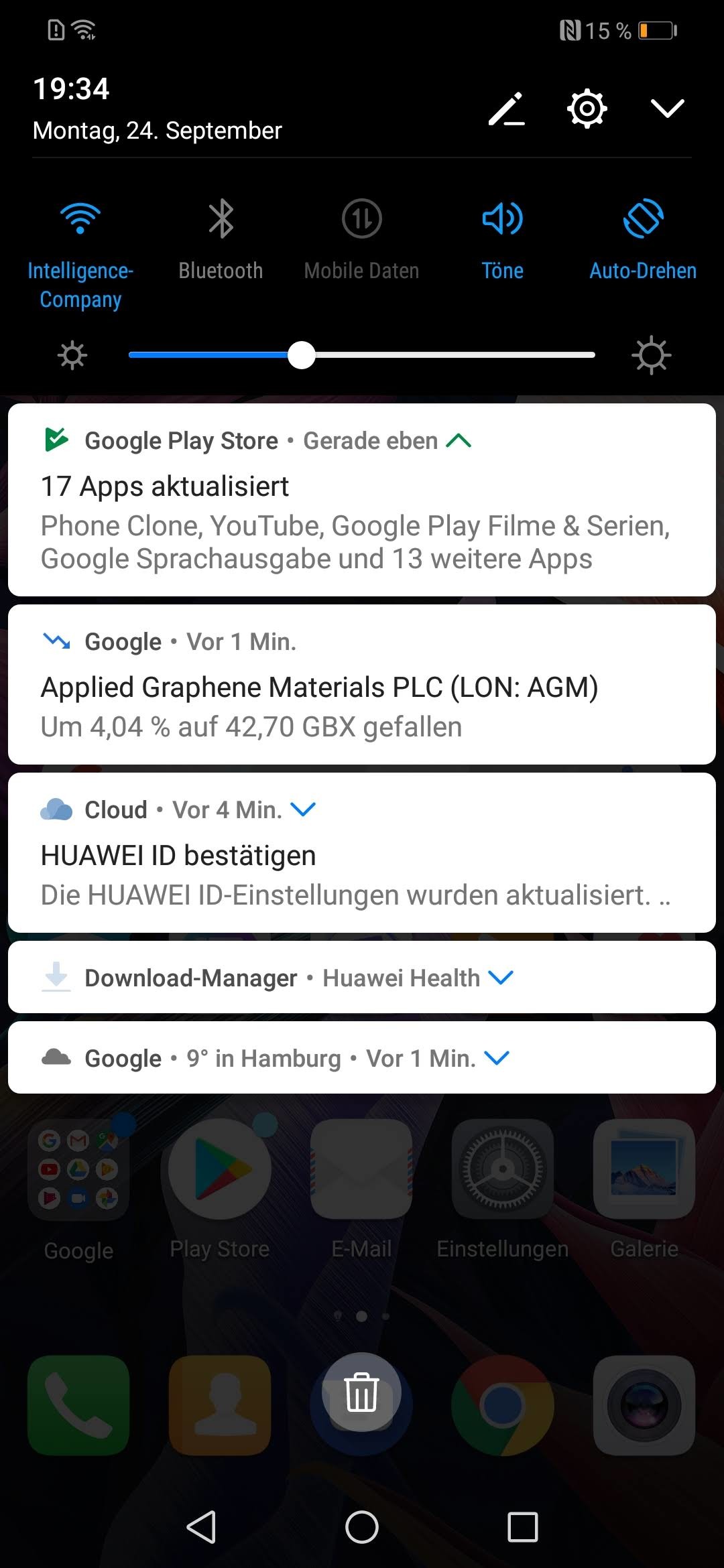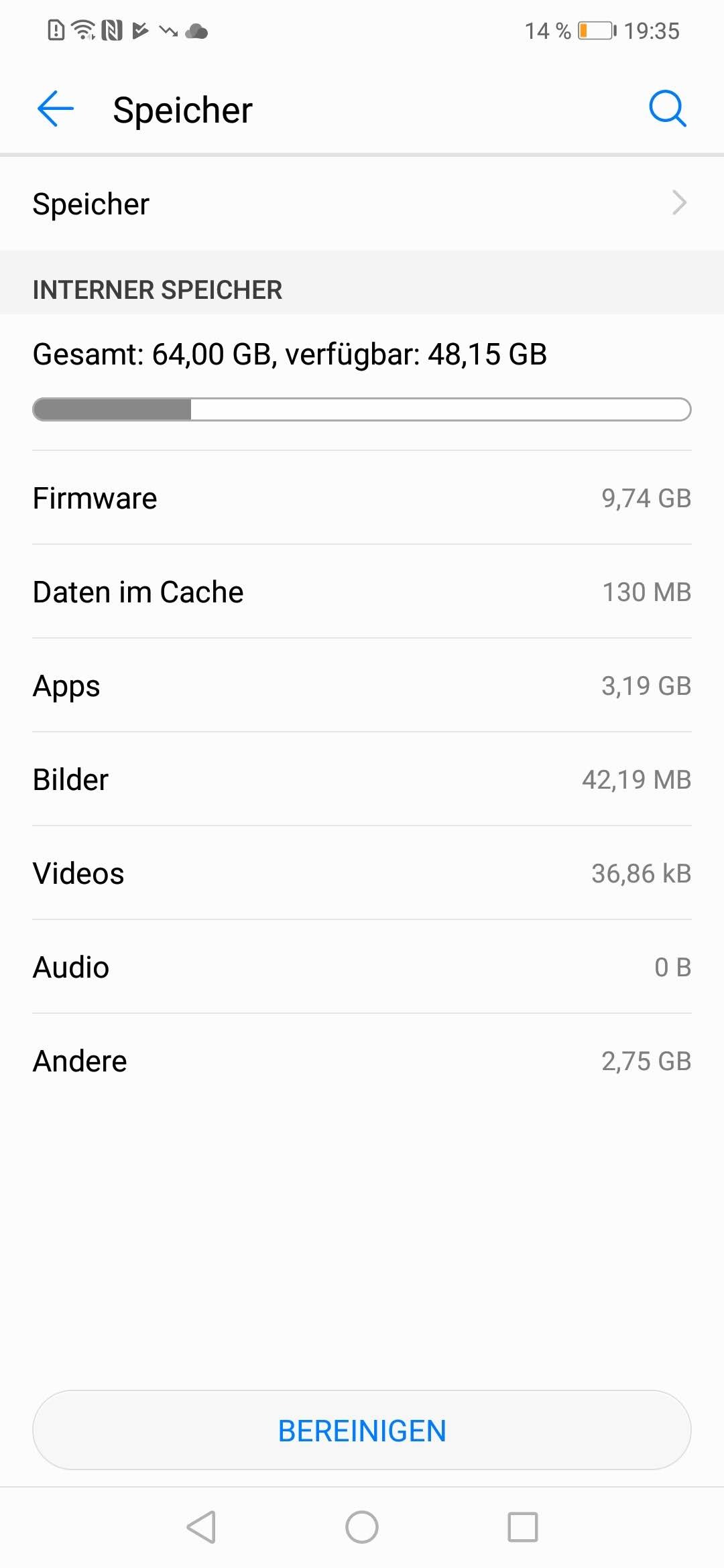 Auf dem Mate 20 Lite ist Android in der Version 8.1 Oreo installiert. Ein Upgrade auf das aktuelle Android 9.0 Pie soll kommen, allerdings möchte man kein Datum nennen. Vermutlich ist man bei Huawei Anfang des nächsten Jahres soweit. Für alle seine Smartphones nutzt der Hersteller eine eigene Oberfläche namens EMUI, die optisch und funktional stark an iOS angelehnt ist. Das System ist schnell, übersichtlich und selbsterklärend; man kann nicht viel falsch machen. Negativ am Mate 20 Lite fällt die Masse an Werbe-Apps auf, die ab Werk vorinstalliert sind und dem Nutzer Speicherplatz kosten. Glücklicherweise lassen sich alle zwölf Bloatware-Apps deinstallieren. Halb so tragisch.