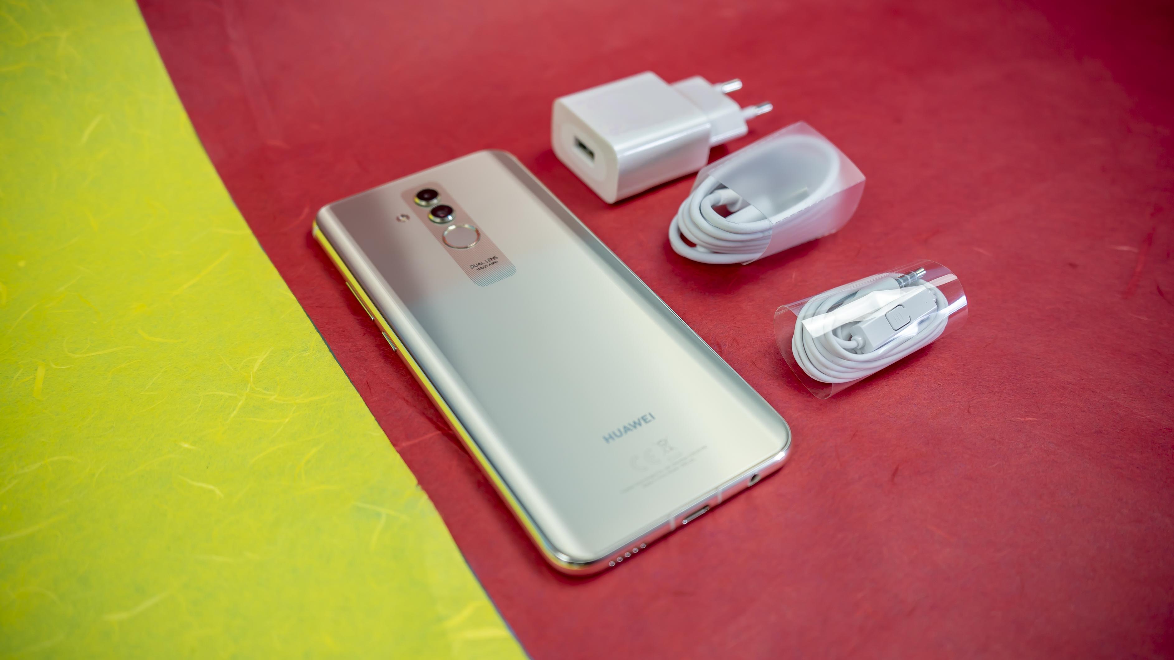 Der Lieferumfang des Mate 20 Lite beinhaltet neben dem eigentlichen Smartphone ein Schnellladegerät für den Akku, ein 1 m langes Kabel mit USB-C-Anschluss, einfache Kopfhörer mit 3,5-mm-Klinkenanschluss sowie ein Werkzeug zum Auswerfen des SIM-Kartenhalters. Außerdem befinden sich die Garantiekarte sowie die Anleitung für den Erstgebrauch drin. Optional – das hängt vom Händler ab – legt Huawei noch eine Schutzhülle aus Silikon bei.