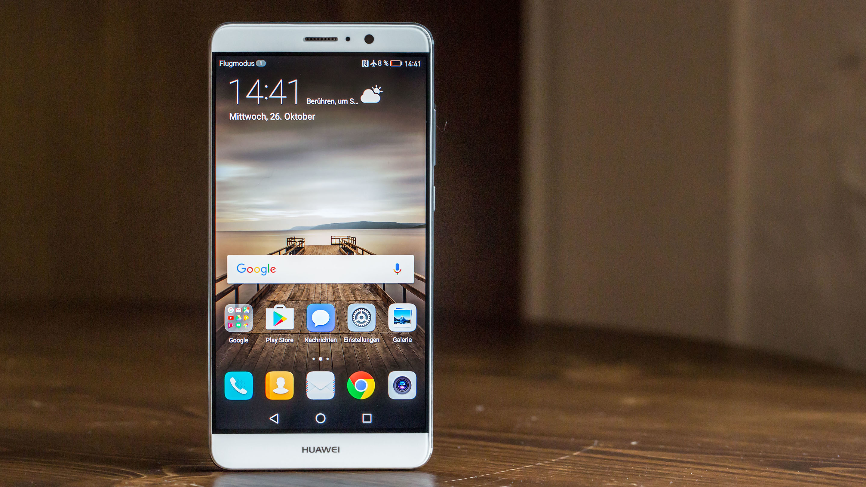 Die Frontkamera zu guter Letzt bietet 8 Megapixel und einen Autofokus. Einen Blitz auf der Vorderseite gibt es nicht, dafür schaltet das Mate 9 in dunklen Umgebungen aber das Display ein, um als Blitz zu wirken. Bei Tageslicht ist die Qualität der Fotos erstaunlich gut, bei schwachen Lichtverhältnissen hat die rückseitige Kamera dann merklich die Nase vorne.