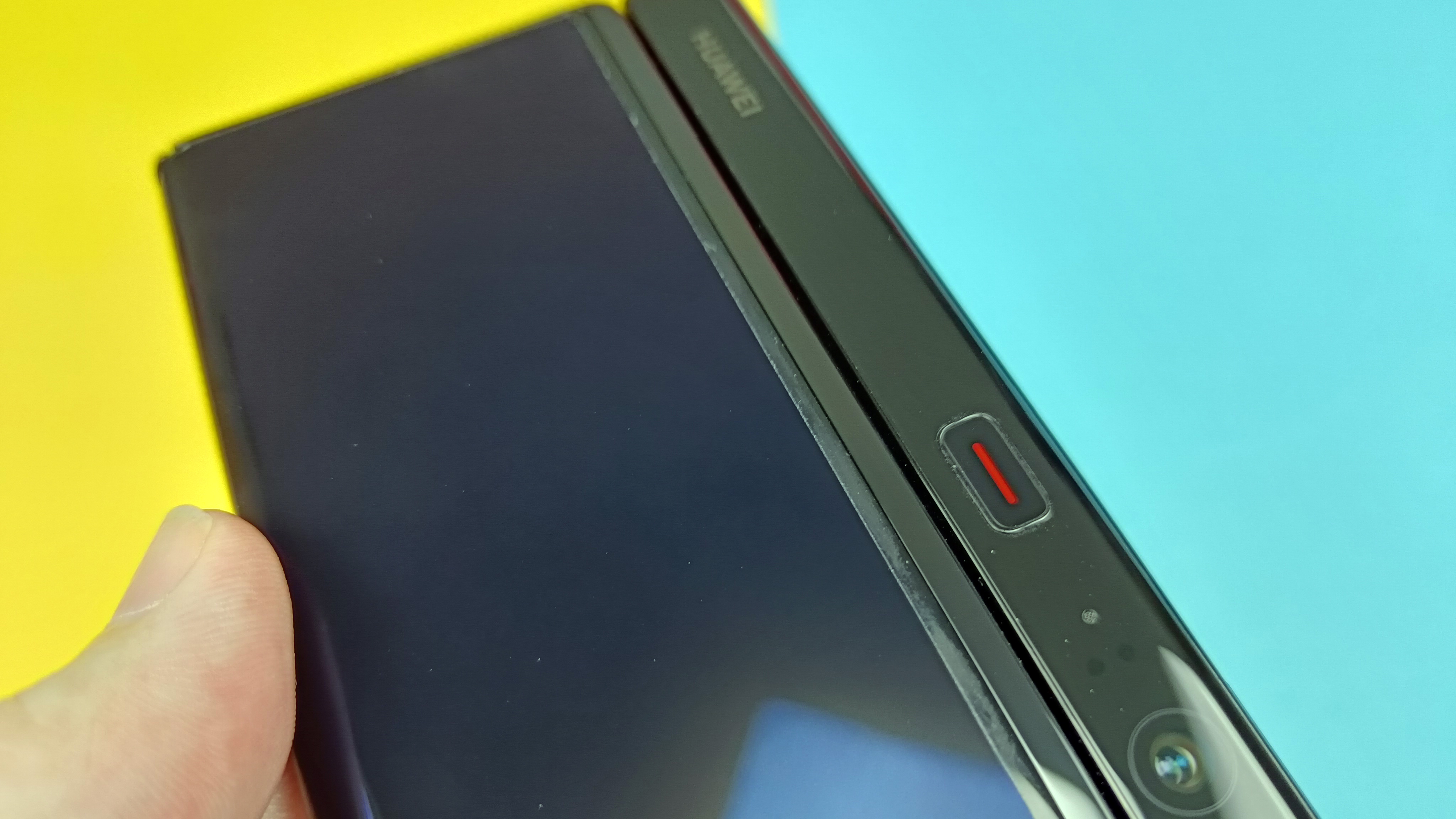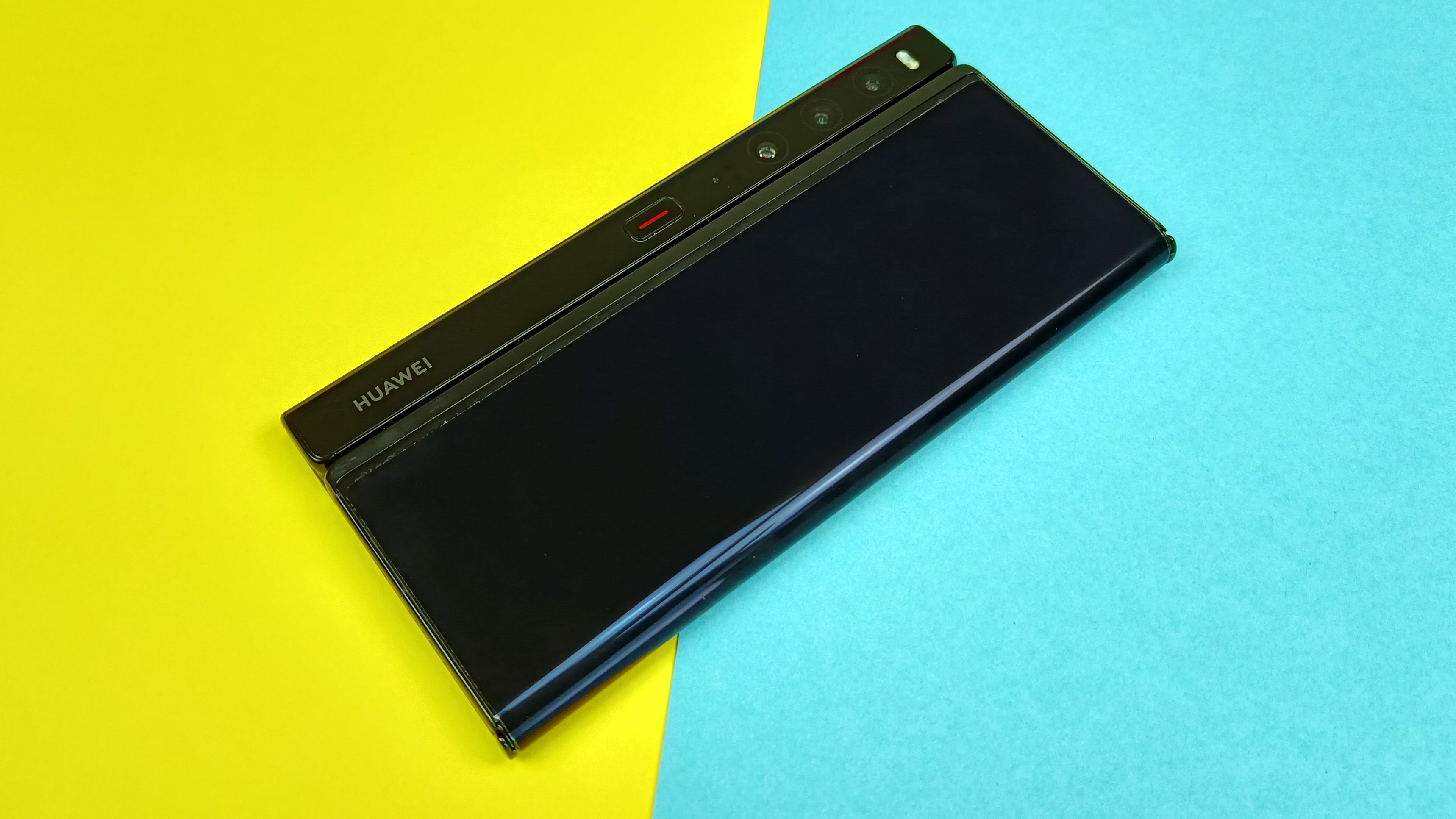 Auch der breitere Korpus auf der rechten Seite ist geblieben. Er ist nicht einmal 2 Zentimeter breit und definiert mit 11,1 Millimeter Bautiefe gleichzeitig die maximale Dicke des Smartphones. Huawei baut in diesen Streifen, der im zusammengeklappten Zustand gar nicht auffällt, weil er dann zusammen mit dem geschlossenen Display beinahe eine Einheit bildet, große Teile der Technik ein. Dazu gehört etwa die Kamera mit ihren drei Linsen und dem Dual-Blitz und auch der eingangs erwähnte Knopf zum Ausklappen des Panels sitzt hier. Gleiches gilt für den Powerbutton samt Fingerabdrucksensor und die Lautstärkewippe, beide sind allerdings seitlich am Gerät angebracht. Nur auseinandergeklappt bemerkt man die „Griffwulst“, die doppelt so dick ist wie das Display an sich. Rechtshändern könnte das sogar tatsächlich als Griff gefallen, alle anderen werden vermutlich das durchgehend gleich dicke Design des Samsung-Foldables vorziehen.