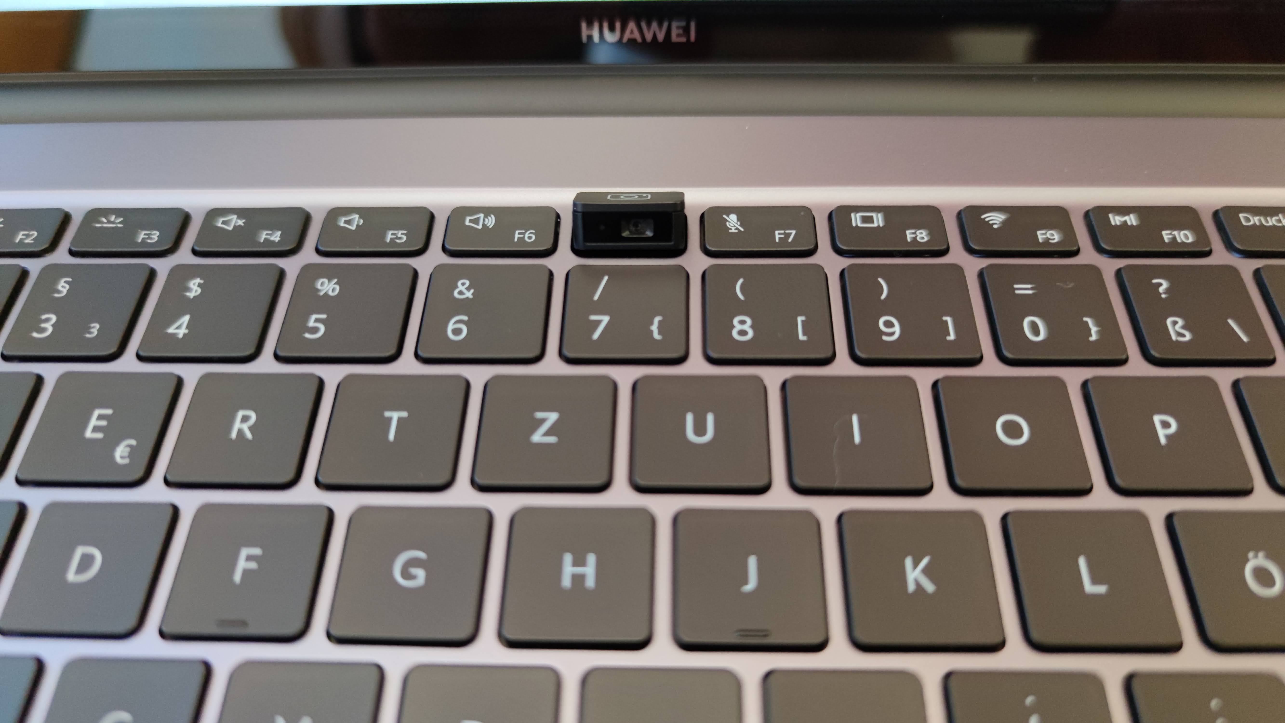 Bei der kabellosen Konnektivität ist mit Wifi-6 und Bluetooth 5.1 alles auf dem aktuellen Stand. Wie schon bei den übrigen Huawei-Laptops, verbirgt sich die Webcam mit 0,9 Megapixel hinter einer Taste im Keyboard. Das erlaubt einen größeren Bildschirmrand. Das hat aber einen entscheiden Nachteil: Der Winkel der Webcam ist sehr ungünstig und filmt den Nutzer aus der Froschperspektive. Die Auflösung und Bildqualität geht für Videokonferenzen gerade noch in Ordnung – setzt aber keine besonderen Maßstäbe.