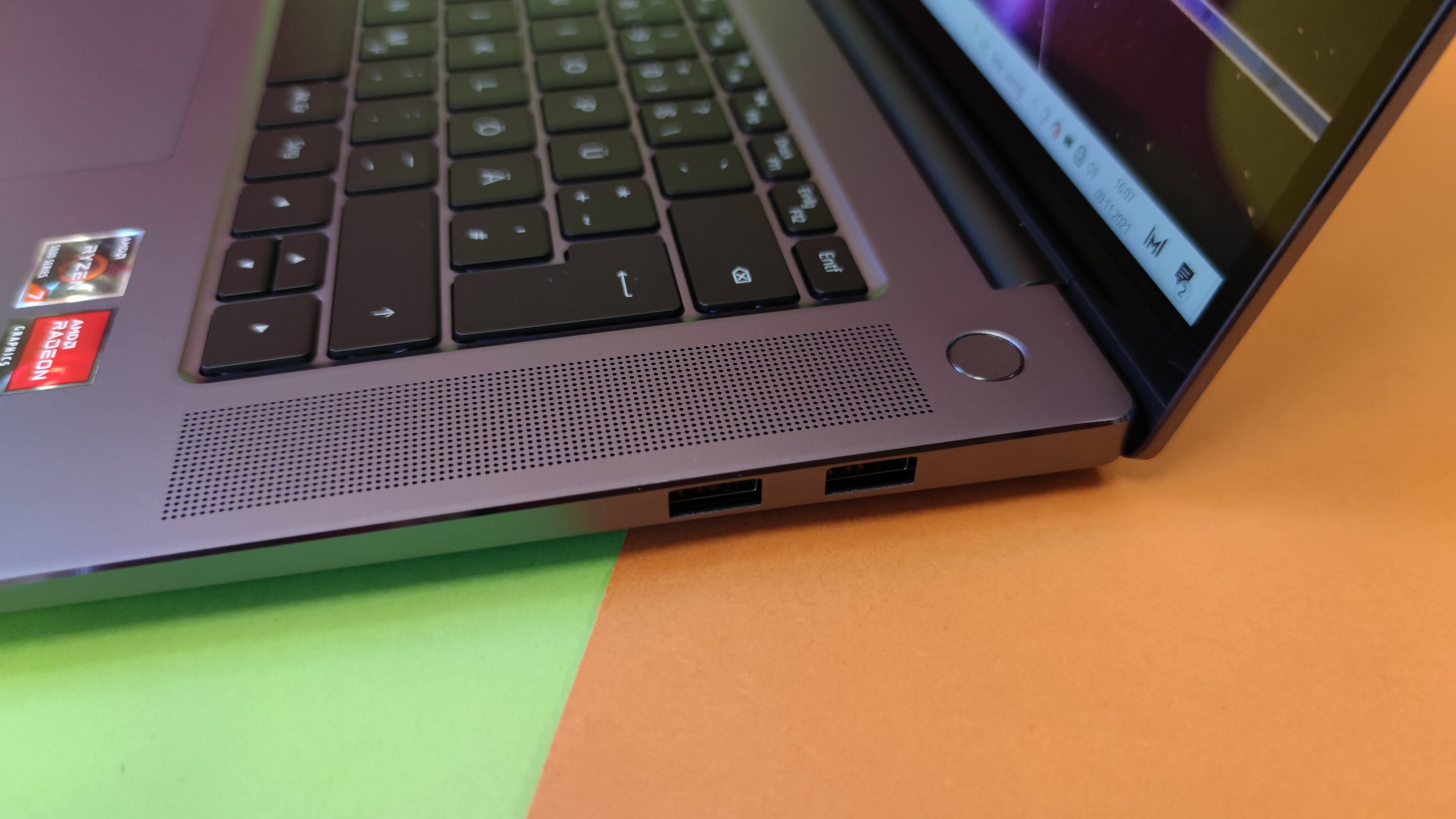 Die Ausstattung des Matebook 16 ist sehr ordentlich. Neben einem Fingerabdrucksensor finden sich ausreichend Anschlussmöglichkeiten: 1x HDMI 2.0, 2x USB-C 3.0 mit DisplayPort, 2x USB-A 3.0 und sogar eine Klinke mit 3,5 Millimeter. Einen der USB-C-Ports belegt das Netzteil. Anschlüssen nach dem Standard für Thunderbolt 4 finden sich aber keine. Der Arbeitsspeicher beträgt üppige 16 GByte RAM. Die NVMe-SSD hat eine Größe von 512 GByte.