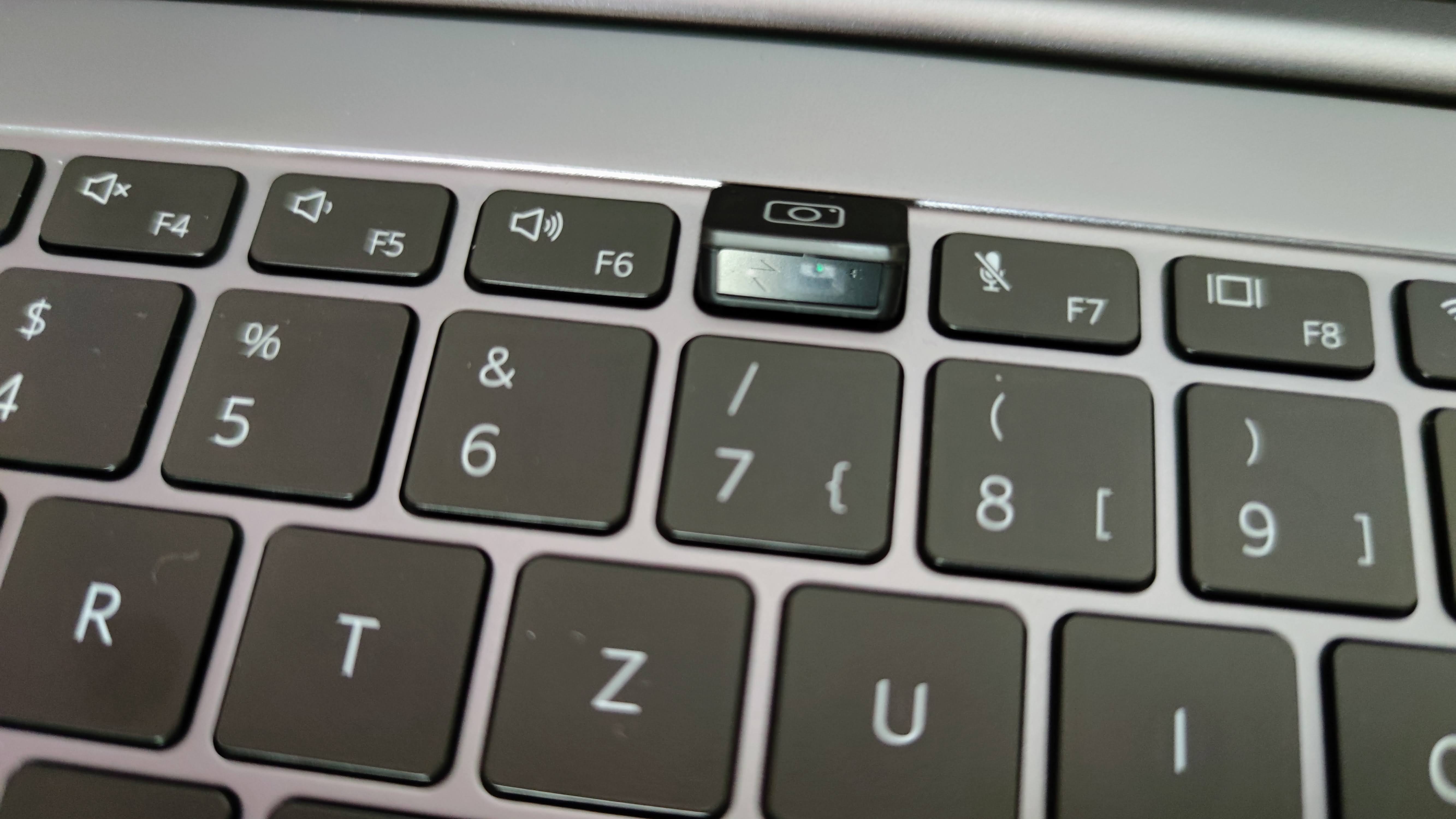 Wie schon bei den Vorgängern, befindet sich die Webcam nicht oberhalb des Bildschirms, sondern verbogen in einer ausklappbaren Taste im Keyboard. Das hat den Vorteil, dass die Kamera eingeklappt bleibt, wenn man sie nicht benötigt. Die Nachteile überwiegen allerdings: So ist der Kamerawinkel sehr ungünstig und filmt den Anwender von unten aus der Froschperspektive – praktisch direkt in die Nasenlöcher. Hier sollte Huawei in Zukunft eine andere Lösung wählen. Aus technischer Sicht bietet die Kamera ebenfalls nicht viel mit knapp unter 1 Megapixel und einer mäßigen HD-Auflösung von 720p. Hier sollte bei Webcams mittlerweile Full-HD Standard sein.