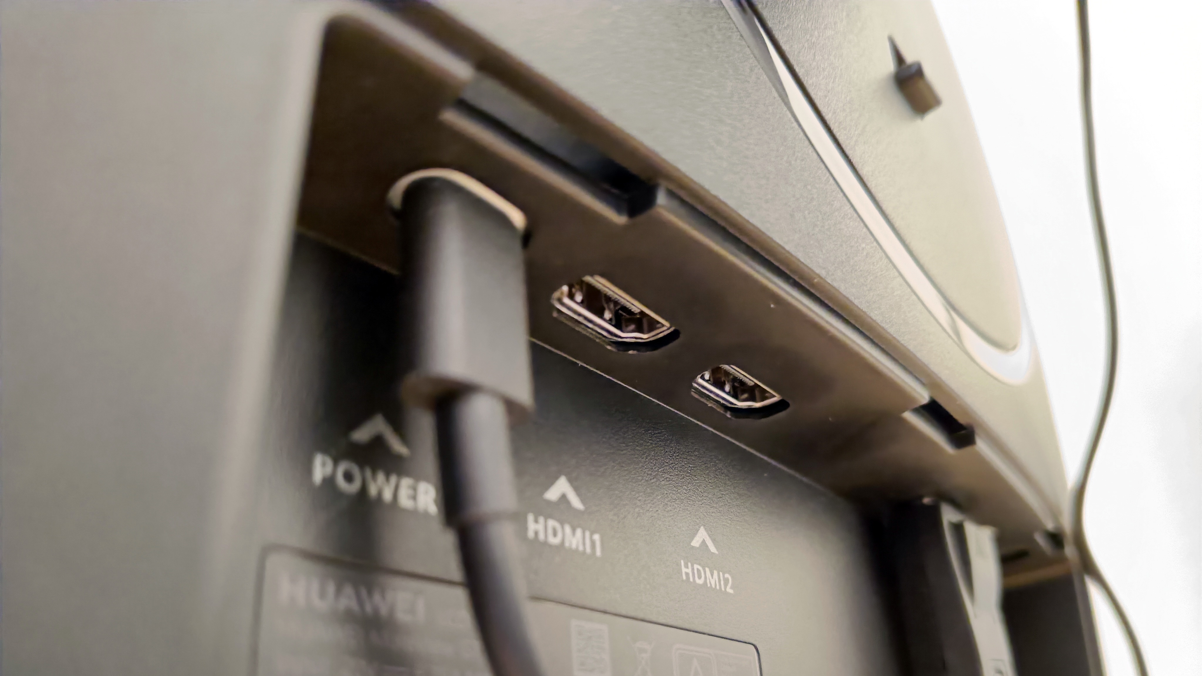 Auf der Rückseite gibt es die Möglichkeit, den Huawei Mateview GT 34 über Displayport 1.4 zu verbinden, außerdem sind 2x HDMI-2.0-Anschlüsse vorhanden, zusätzlich ein 3,5-Millimeter-Klinkenanschluss (2-in-1 Kopfhörer/ Mikrofonbuchse) und USB-C für Datenübertragung und Ladefunktion für Smartphone oder Tablet. Das ist laut Hersteller allerdings nur mit maximal 10 Watt möglich.