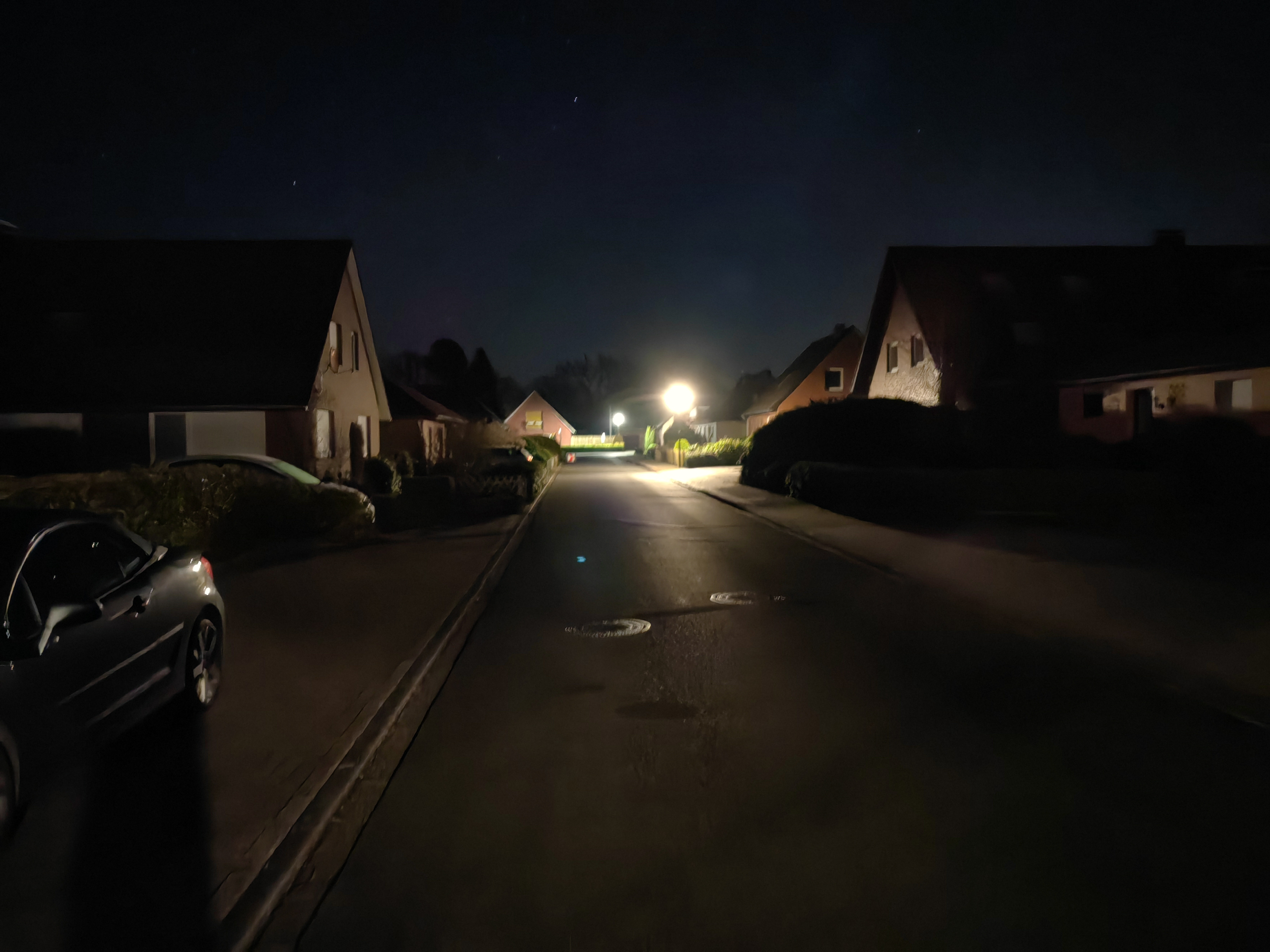 Kommen wir zur ehemaligen Paradedisziplin, den Nachtaufnahmen. Hier leistet Huawei immer noch erstaunliches, aber auch hier wird die fehlende Konstanz bei Aufnahmen deutlich. Denn mal wirken Aufnahmen bei dunkler Nacht im Automatikmodus besser, mal im Nachtmodus. Generell färbt der Nachtmodus Aufnahmen mit künstlichem Licht gelblicher, dafür liefert er schärfere Ergebnisse als der Automatikmodus. Der Automatikmodus hingegen hellt insgesamt etwas weniger auf und schafft so die natürlicheren Bilder. Bei beiden Modi ist die Lichtempfindlichkeit so groß, dass sogar Sterne am Firmament mit in den Speicher gebannt werden, sofern keine überstrahlende andere Lichtquelle im Fokus steht. Dabei dauern Aufnahmen nicht wie bei älteren P-Modellen mehrere Sekunden, sondern meist nur rund eine Sekunde. Hinzu kommen allerdings weitere Sekunden für die Verarbeitung.