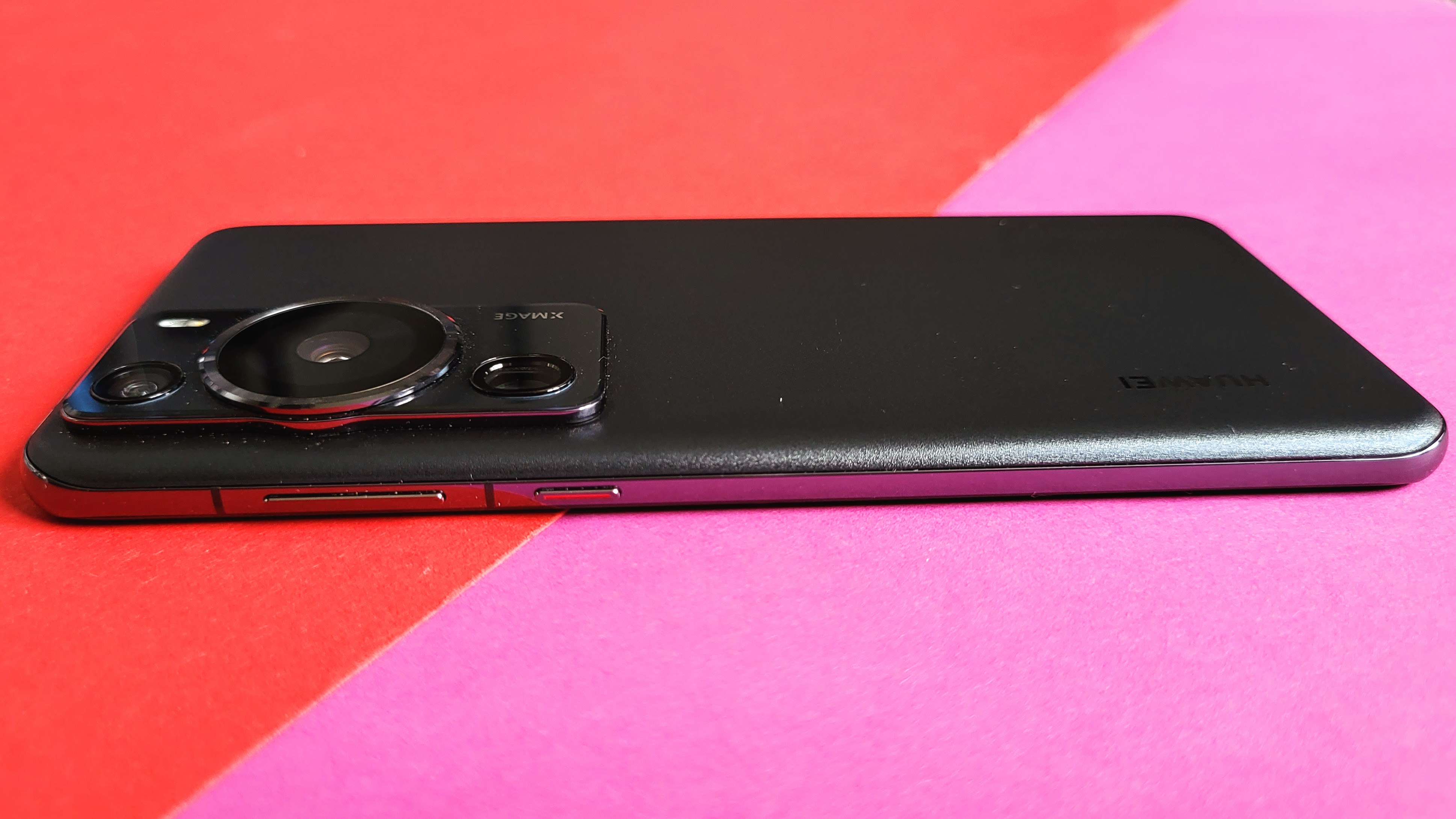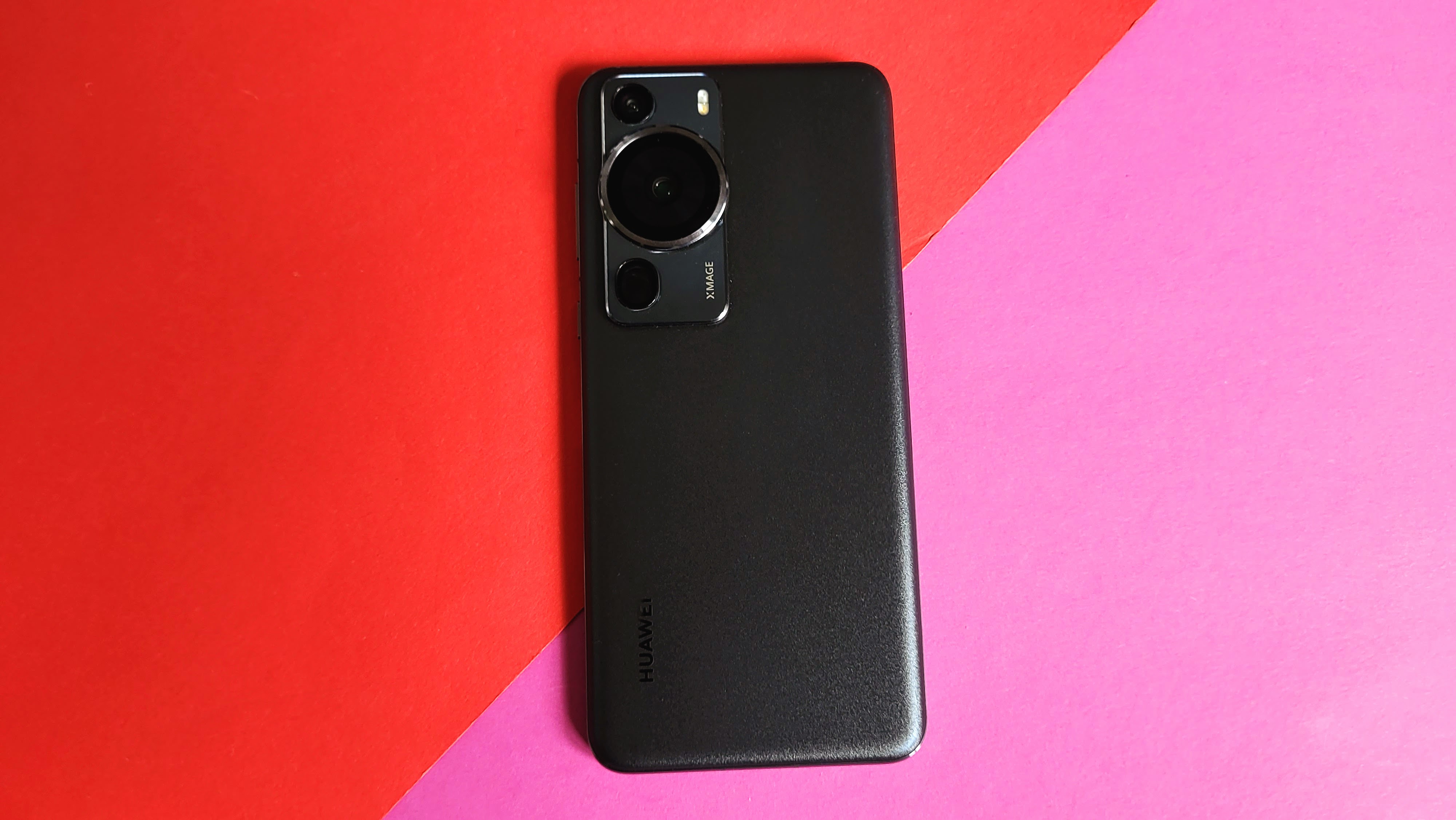 Das Hauptthema des Huawei P60 Pro ist die Kamera – was sich auch am Design zeigt. So erinnert das matte schwarz schon an eine klassische Systemkamera. Die drei Linsen auf der Rückseite sind zudem in einem hervorstehenden Element angeordnet, sodass sie an eine Fotokamera erinnern. Die Hauptlinse ist besonders groß und mittig angeordnet. Sie symbolisiert das Objektiv bei einem echten Fotoapparat. Links und rechts davon befindet sich die kleineren Tele- und Weitwinkellinsen.