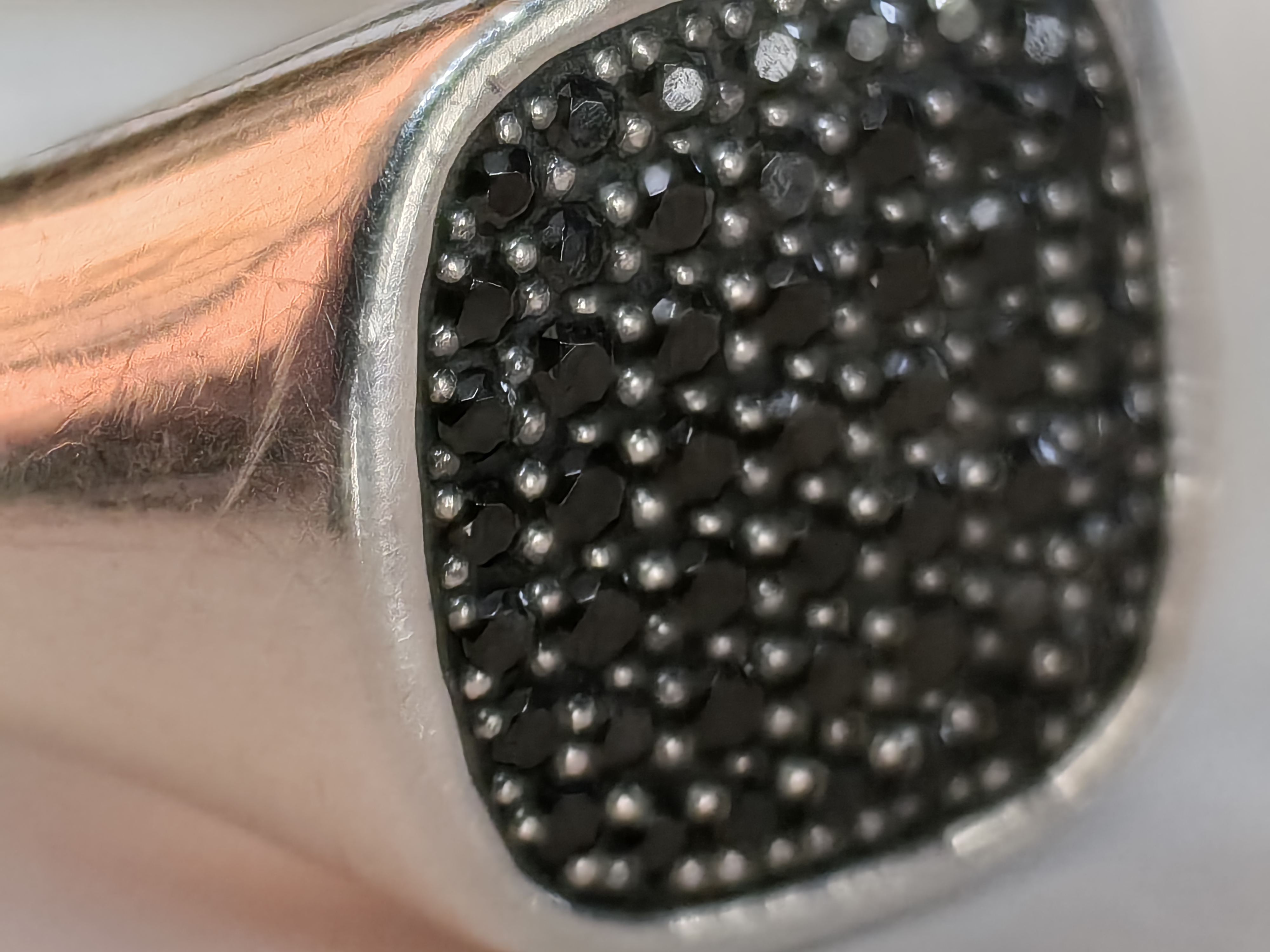 Die Gestaltung der Glasrückseite gefällt uns sehr gut. Bei unserem Testgerät handelt es sich um das schwarze Modell. Dieses bietet hinten eine Oberfläche in einer rauen Optik, die an Sandstein erinnert. Das erhöht den Grip, Fingerabdrücke sind darauf nicht zu erkennen. Es gibt zudem eine weiße Variante in Marmor-Optik (Rococo Pearl). Dabei weist jedes Handy eine einmalige Maserung auf.