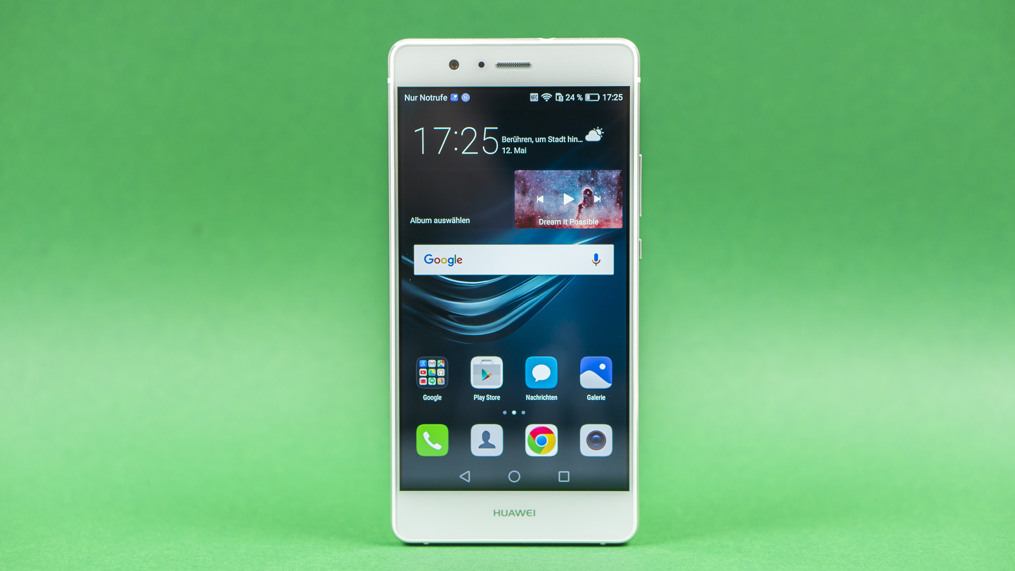 Was müsst Ihr zu der Hardware wissen? Nicht viel. Es gibt einen Octa-Core-Prozessor von HiSilicon Technologies. Es handelt sich um einen Kirin 650 mit 1,7 und 2 GHz Taktfrequenz. Für das Zwischenspeichern gibt es drei GByte RAM, ins Internet geht es über LTE sowie per WLAN nach 802.11 b, g und n. Der ac-Standard mit Dual-Band-Unterstützung fehlt. Darüber hinaus verfügt das System über Bluetooth 4.1 und NFC. Die Gesprächqualität beim P9 lite war im Mobilfunknetz von Vodafone und Telefónica Germany im Raum von Hamburg exzellent.
