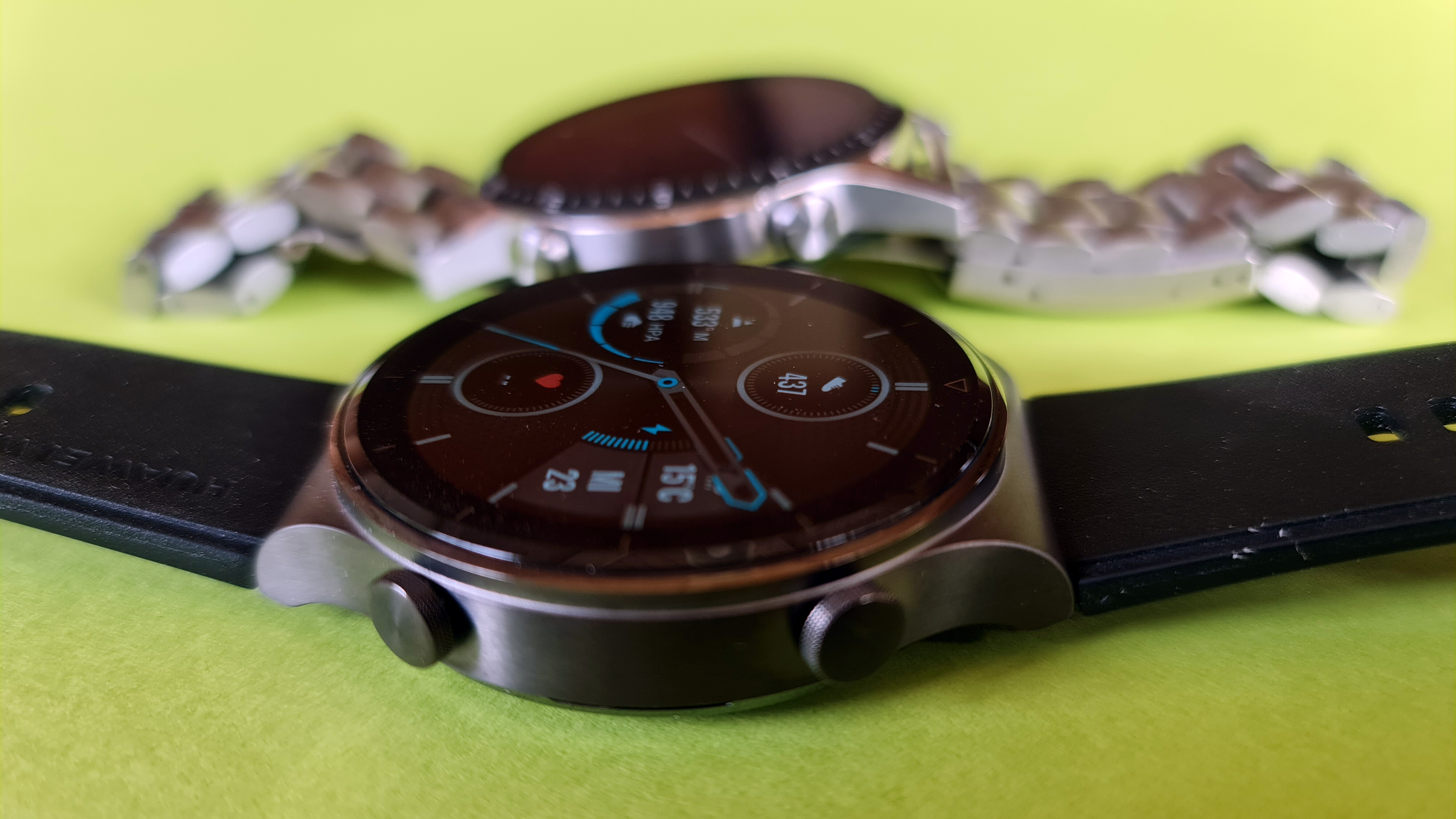 So hinterlässt die Pro-Version ein ambivalentes Bild. Einerseits ist die neue Uhr klar edler und auch moderner, was an der gehobenen Materialwahl und dem fließenden Übergang des Armbandes ins Gehäuse liegt. Andererseits ist die GT 2 Pro dicker und zumindest ihr aufgesetztes Display wirkt weniger grazil. Perfekt sind – auch wenn das sicherlich immer auch Geschmackssache ist – beide Uhren nicht. Uns gefallen sie dennoch beide so gut, dass wir sie gern je nach Tageslaune oder Kleidungsstil wechseln würden. Zum Glück ist das gleichzeitige Verbinden von zwei Smartwatches mit der benötigten Health-App möglich, dann reicht ein Klick, um auszuwählen, welche gerade getragen wird.
