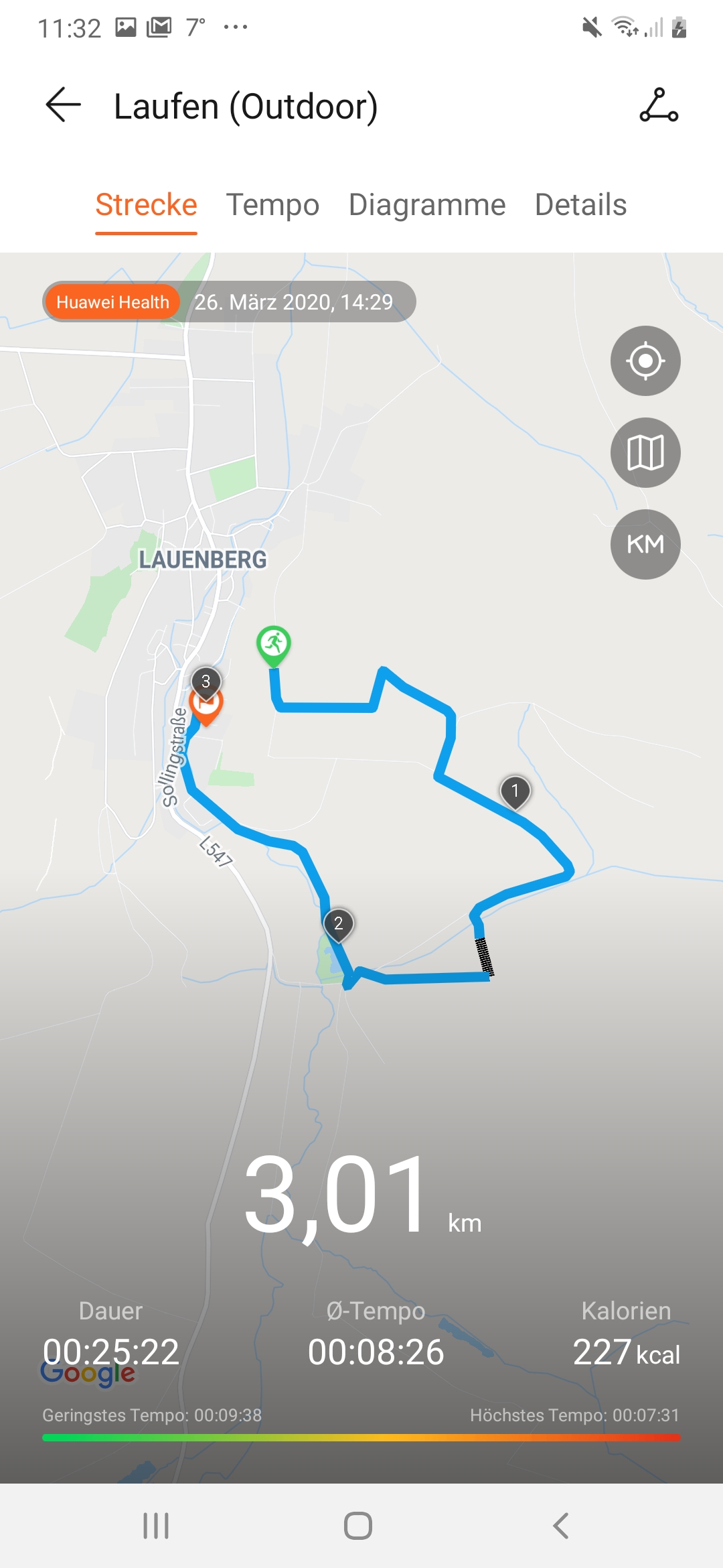 Weil die GT 2e über ein integriertes GPS und Höhenbarometer verfügt, können wir zurückgelegte Lauf-, Rad- und Schwimmstrecken mithilfe der Smartwatch aufzeichnen und anschließend an die Health-App übertragen. Dadurch müssen wir unser Smartphone beim Training nicht dabei haben - das Tracking funktioniert trotzdem.