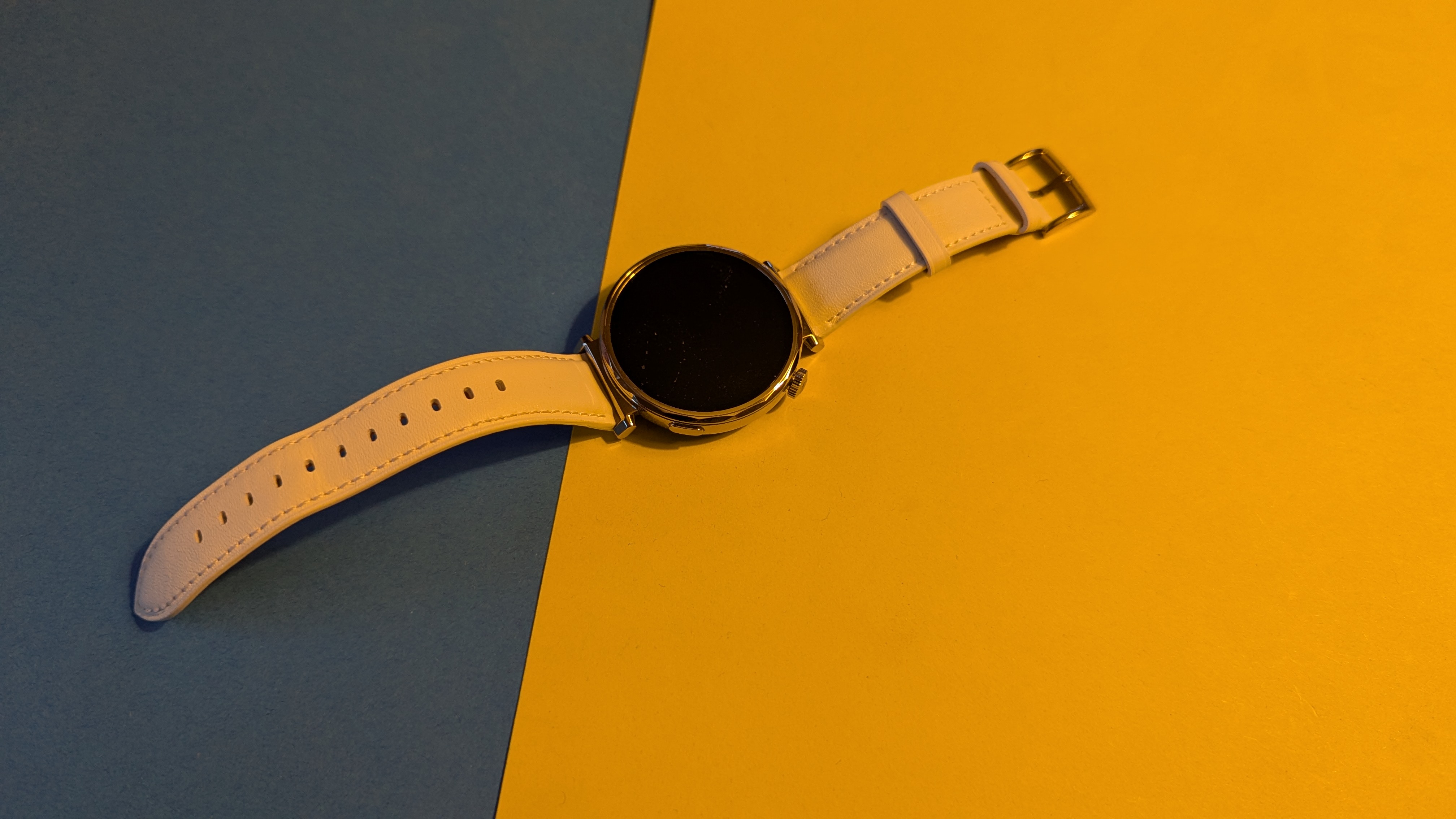 Wir haben es bereits angedeutet: Die kleinere 41-mm-Variante der Huawei Watch GT 5 setzt auf ein dezenteres Design als die 46-mm-Version der Smartwatch. Das macht sich nicht nur bei der Größe des Displays, sondern auch bei der Optik von Lünette und Armband bemerkbar. Alles in allem erinnert die Watch GT 5 an eine elegante Damenuhr, die sich auf den ersten Blick nicht von einem analogen Modell unterscheidet. Dabei setzt der Hersteller auch nicht auf ein Armband aus Silikon, sondern verwendet stattdessen Kunstleder mit einer Metallschnalle, die farblich auf die Legierung der Lünette angepasst ist. Das macht sie zur schicken Begleiterin im Alltag, aber auch im Beruf, wenn ein gewisser Chic gefragt ist.