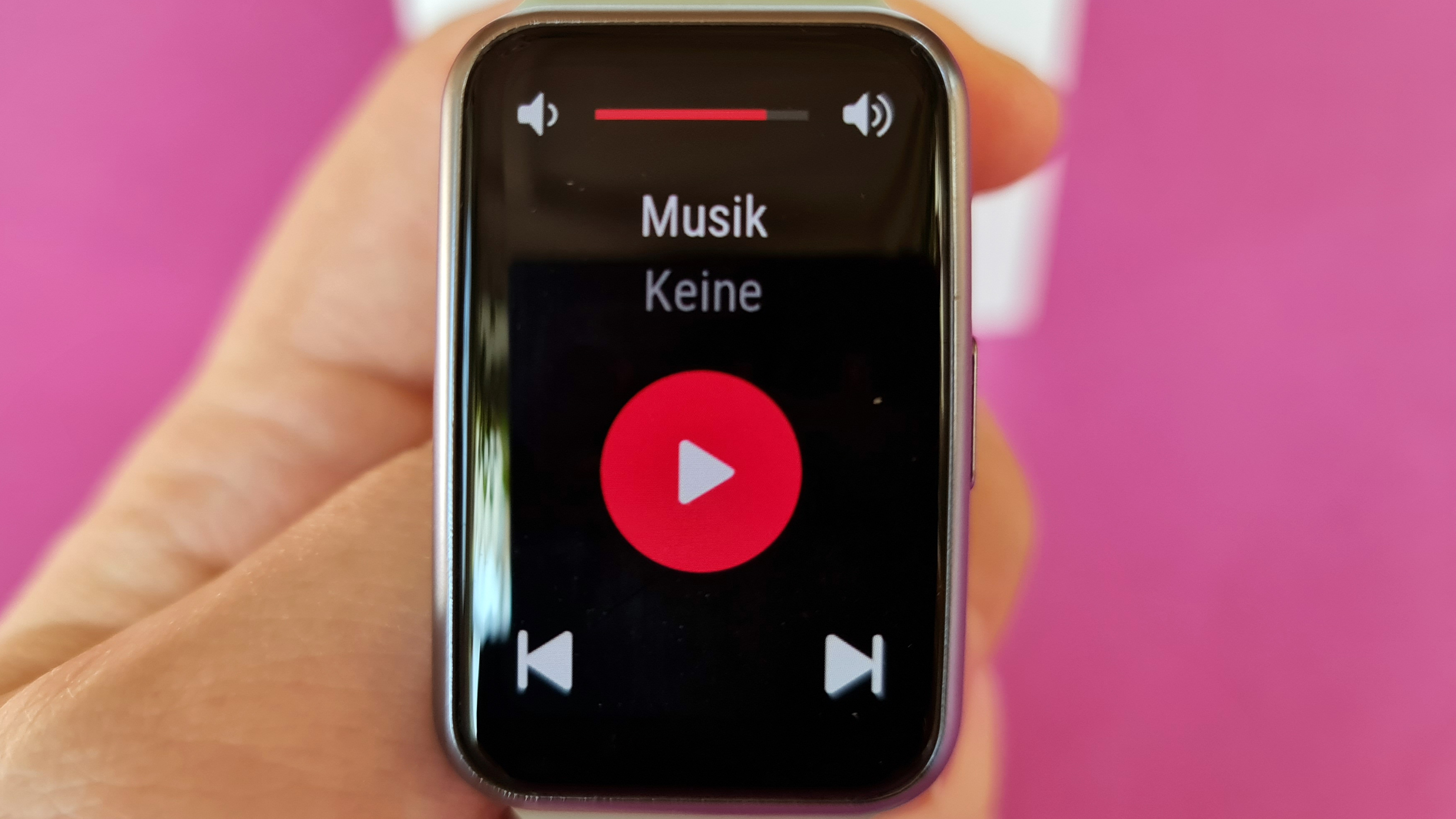 Die Huawei Watch Fit bietet Beschleunigungssensor, Gyroskop, optischen Herzfrequenz-Sensor, den bereits angedeuteten Umgebungslichtsensor, Bluetooth 5.0 und GPS. Letzteres wird offenbar automatisch aktiviert, sofern Trainings durchgeführt werden. Manuell deaktivieren – etwa um Strom zu sparen – lässt es sich nicht. Der größte Unterschied zur Watch GT 2 (Testbericht) ist der fehlende interne Datenspeicher. Das erscheint uns gerade für eine auf Sport ausgelegte Uhr nicht ganz passend, denn so müssen Sportler, die unterwegs Musik hören wollen, immer ihr Smartphone mitschleppen. Im Alltag stört das hingegen nicht, zumal eine Steuerungsfunktion für auf dem Telefon abgespielte Musik existiert. Ähnlich verhält es sich bei Telefonaten: Eingehende Anrufe werden auf der Uhr signalisiert und können angenommen oder abgelehnt werden. Das funktioniert aber nur im Zusammenspiel mit einem per Bluetooth verbundenen Smartphone, die Uhr selbst verfügt über keine SIM. In Verbindung mit dem Telefon können Gespräche aber dank Micro und Lautsprecher in der Uhr über die Watch Fit geführt werden. Das klappt zumindest in halbwegs ruhiger Umgebung dank ausreichend starkem Speaker und sensiblem Mikrofon ganz passabel.