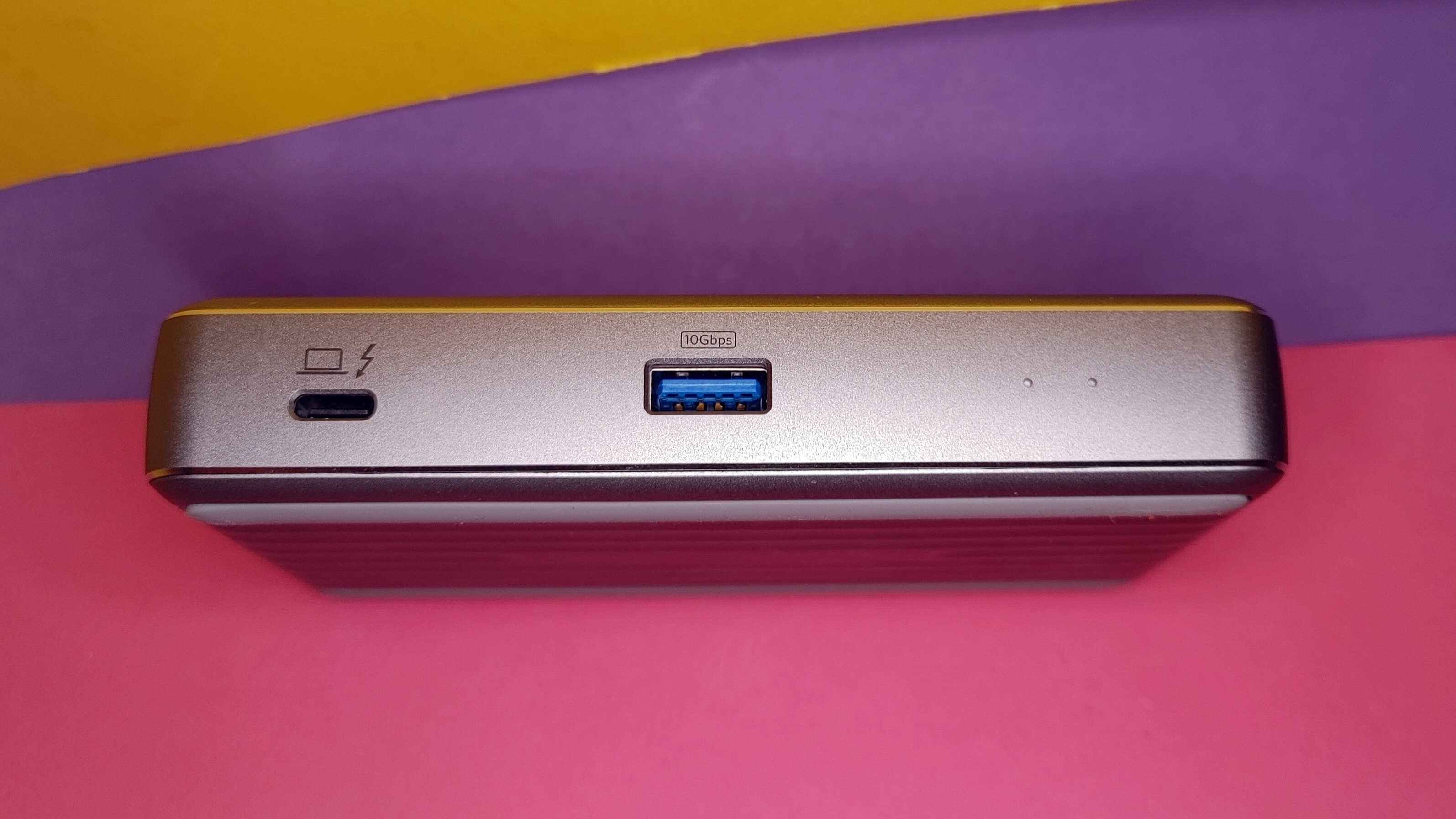 Neben den drei Downstream-Ports gibt es noch einen USB-A-Port. Das war es dann leider auch schon. Sprich, wer schon komplett auf USB-C und Thunderbolt umgestellt hat, der bekommt zahlreiche Anschlüsse. Alle anderen müssten dann weitere Dongles dazwischen hängen, um etwa von USB-C auf DisplayPort oder HDMI zu wechseln.