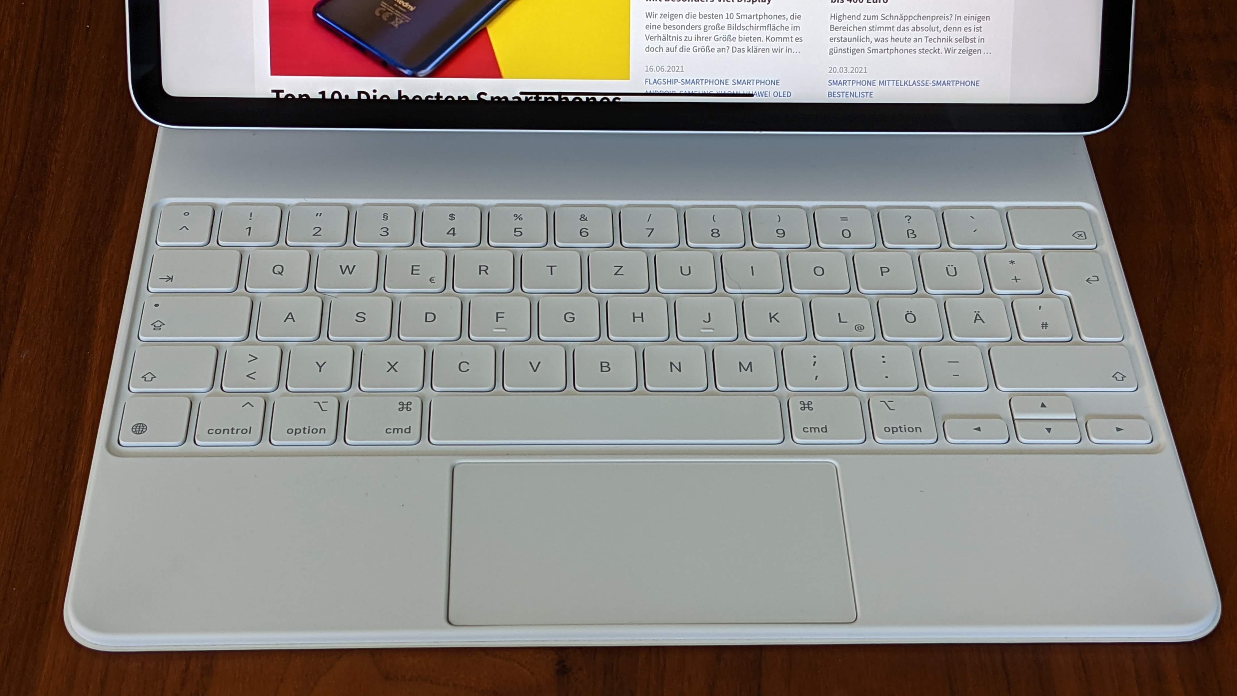 Wie schon der Vorgänger unterstützt auch das iPad Pro 2021 eine externe Maus. Diese wird etwa beim Magic Keyboard über ein Trackpad unterstützt, welches gut funktioniert, aber für unser Empfinden etwas größer hätte ausfallen dürfen. Auf der beleuchteten Tastatur tippt es sich einwandfrei, etwa vergleichbar gut wie bei den aktuellen Macbooks. Das Magic Keyboard hat einen USB-C-Port, über welches das iPad geladen wird. Dadurch ist der USB-C-Port am iPad für andere Geräte frei. Zusammengeklappt schützt es wie eine Klapphülle sowohl Vorder- als auch Rückseite. Das iPad selbst haftet daran magnetisch, der Betrachtungswinkel lässt sich einstellen. Außerdem gibt es nach wie vor den Apple Pencil, das Smart Keyboard Folio und diverse Hüllen.