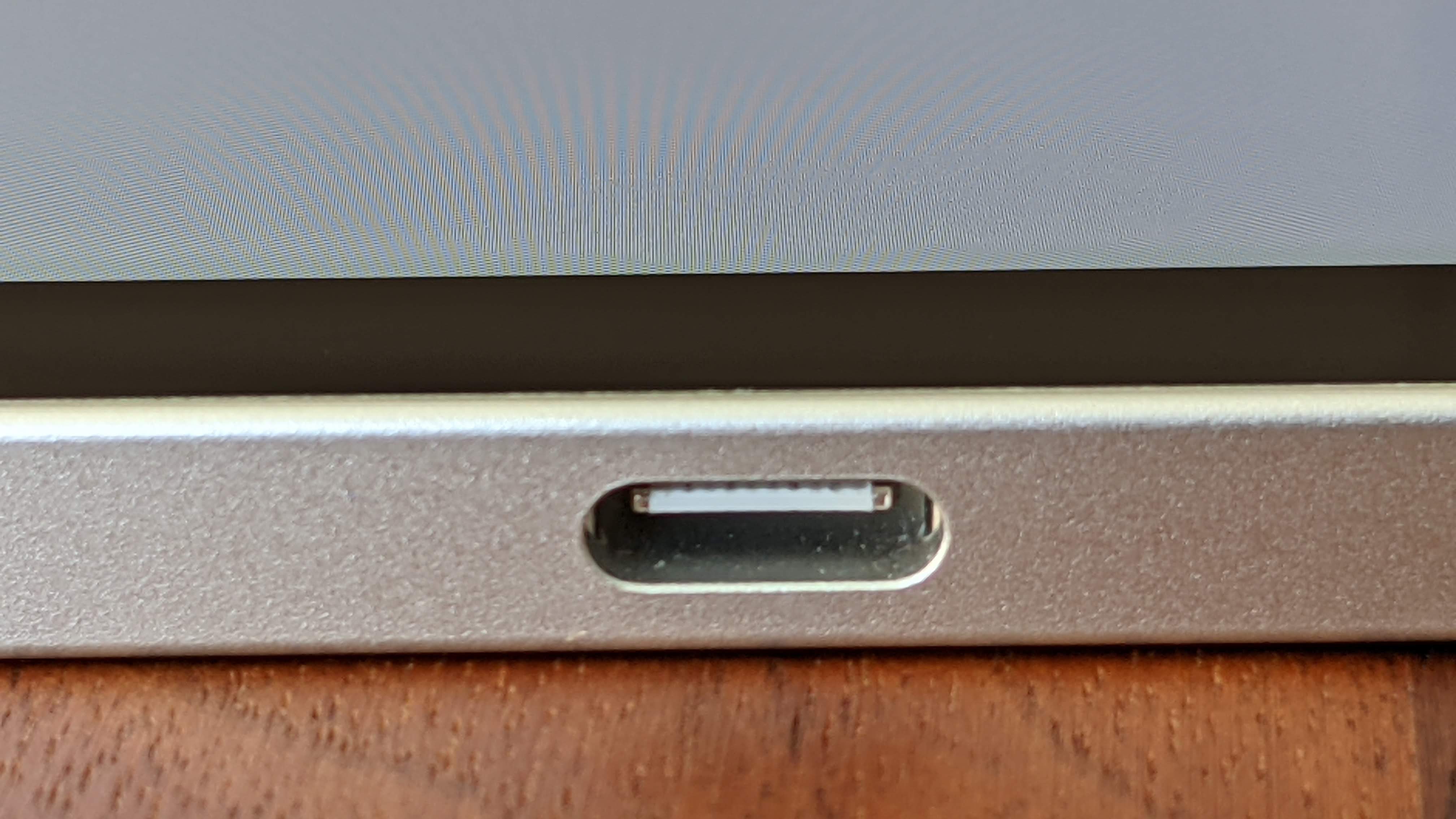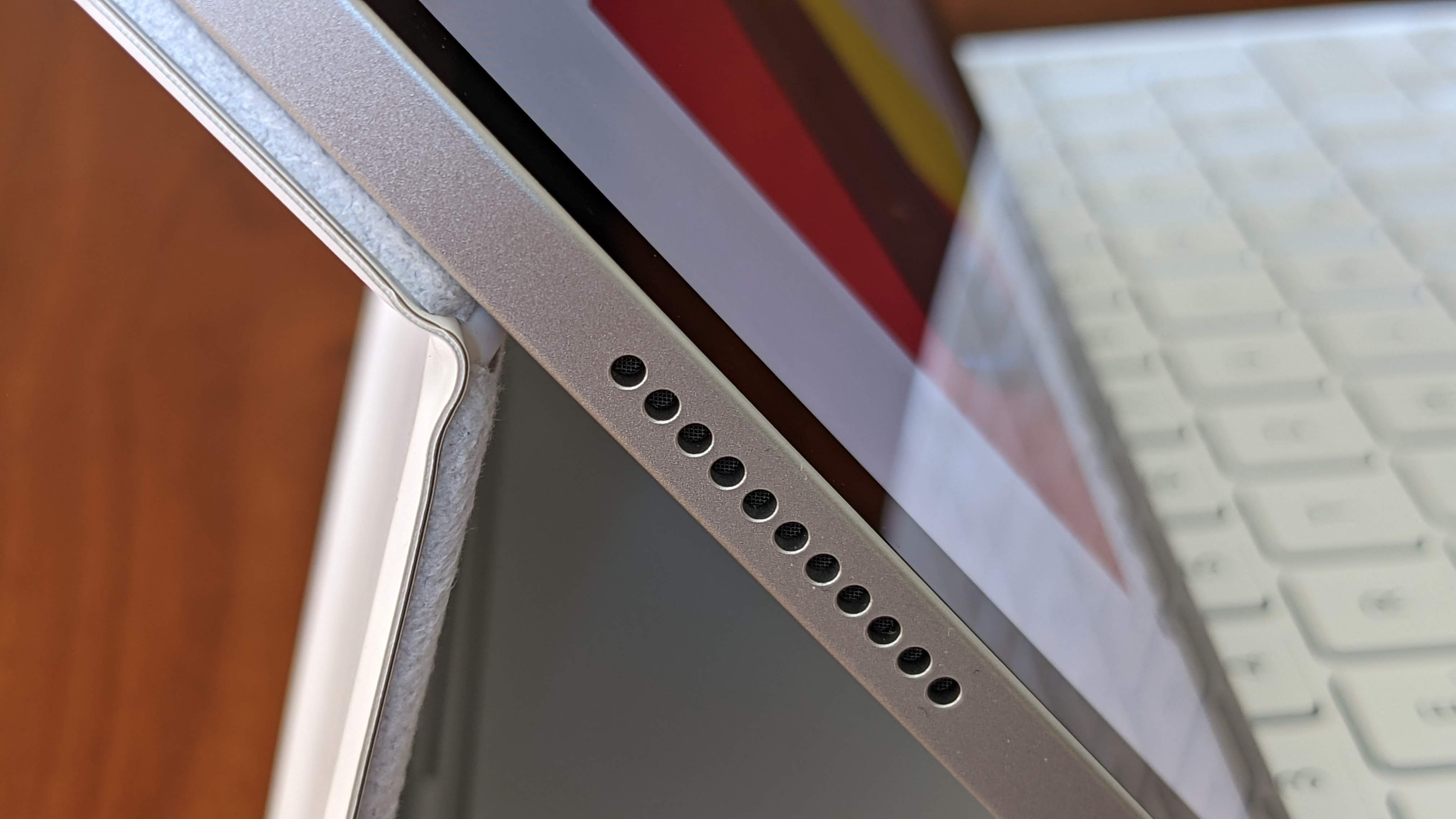 Die vier Lautsprecher-Grills sind nun im Vergleich zum Vorgänger etwas länger, Apple will hier größere, längliche Membranen verwenden. Im Hörtest sind sie richtig gut und das Beste, was wir bisher bei einem Tablet gehört haben. Allerdings sind sie kaum besser als beim direkten Vorgänger. An der linken Längsseite und an der Oberseite lauschen insgesamt vier Mikrofone. Nach wie vor gibt es keine Möglichkeit einer Speichererweiterung etwa durch Micro-SD-Karten (Vergleichstest). Dafür unterstützt das neue iPad Pro über den unten sitzenden USB-C-Port dank Thunderbolt-USB-4 nun sehr flotte externe SSD-Festplatten. Allerdings gibt es weiterhin nur einen einzigen Anschluss. Wer mehrere Geräte wie Kopfhörer, Netzteil und SSD-Festplatten anschließen will, braucht einen Adapter.