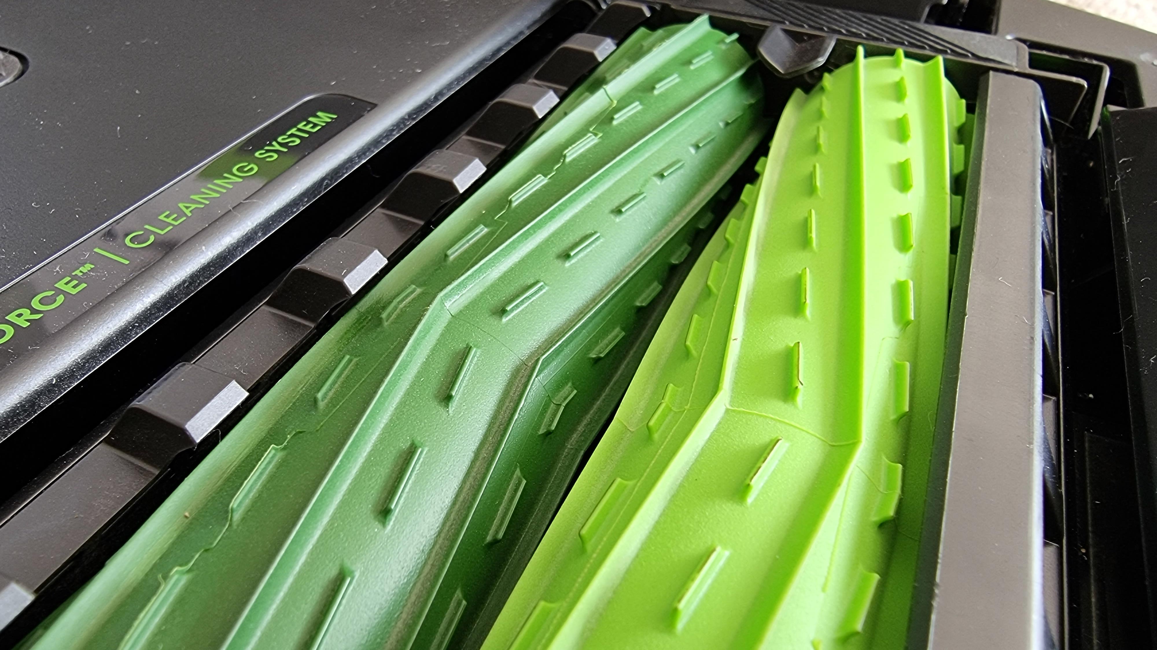 Die Saugleistung muss bei so viel Krawall ja super sein, oder macht der Sauger doch eher viel Lärm um nichts? Tatsächlich ersteres. Die gegenläufigen Gummibürstenrollen nehmen – auch wenn es eigentlich genau andersherum klingt – vor allem den Teppich richtig „in die Mangel“. Dabei klingt der Bot bisweilen etwas gequält und manchmal springt und hoppelt er auf dem Teppich etwas. Ob das alles für einen langflorigen Teppich wirklich gut ist, sei dahingestellt.
