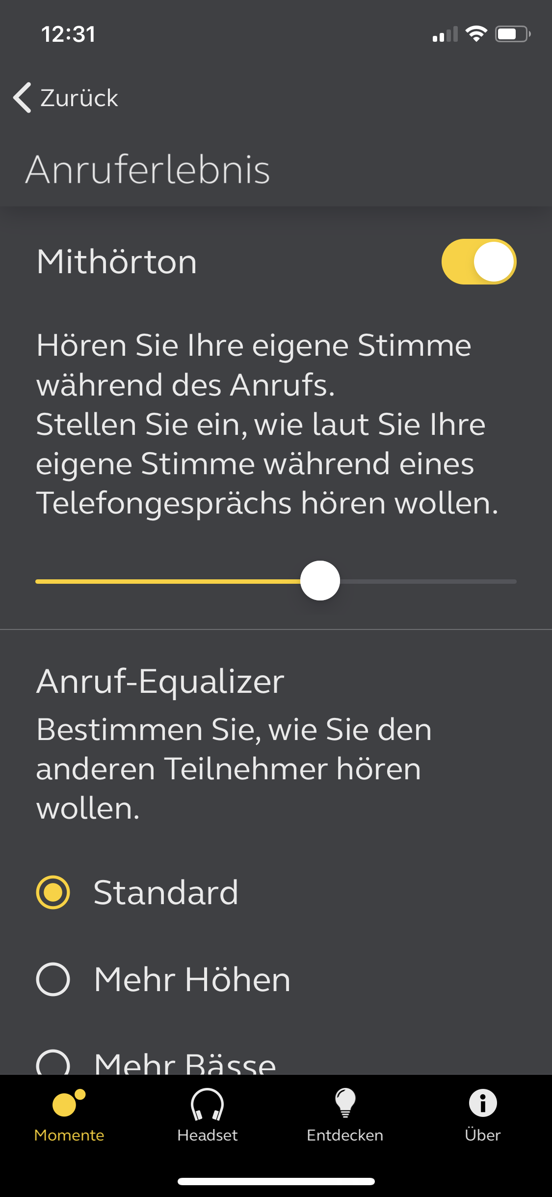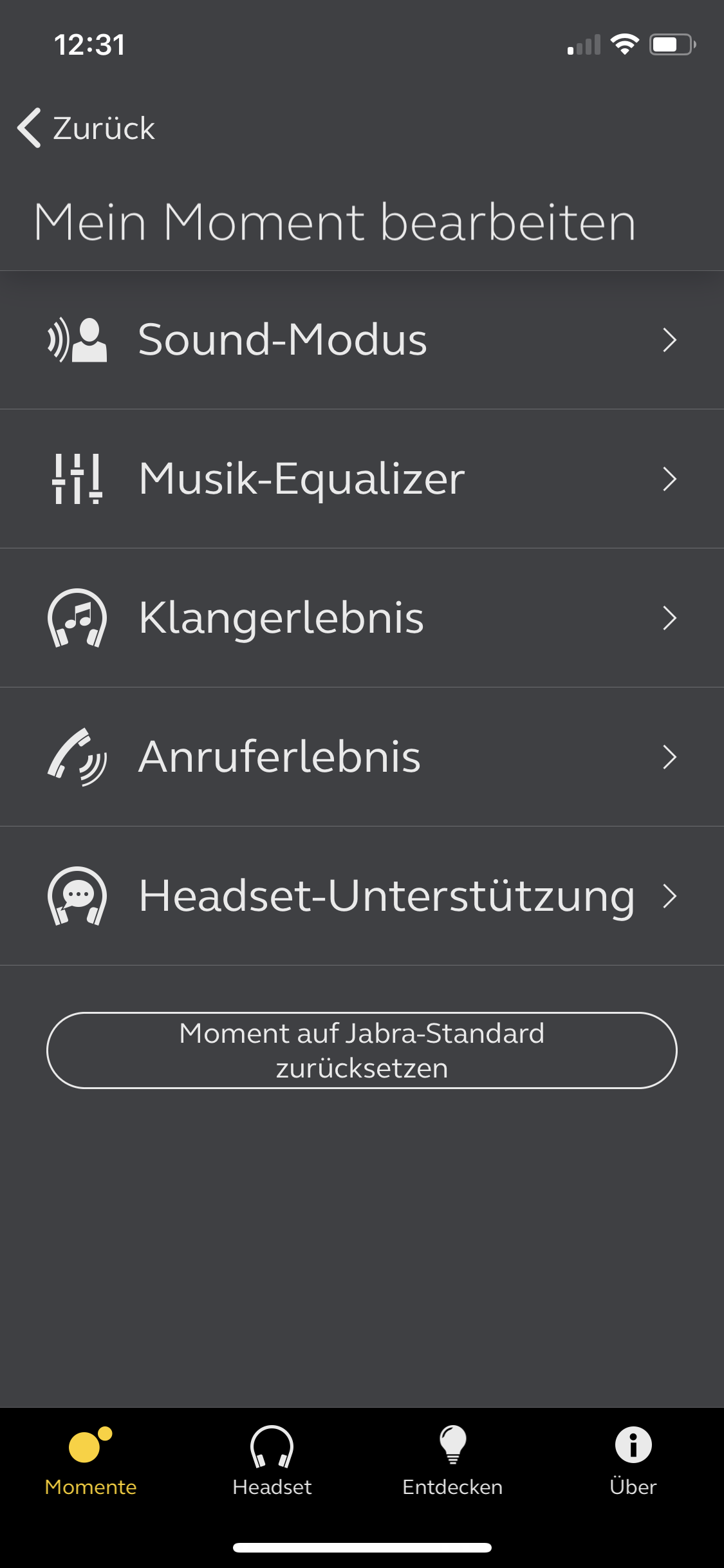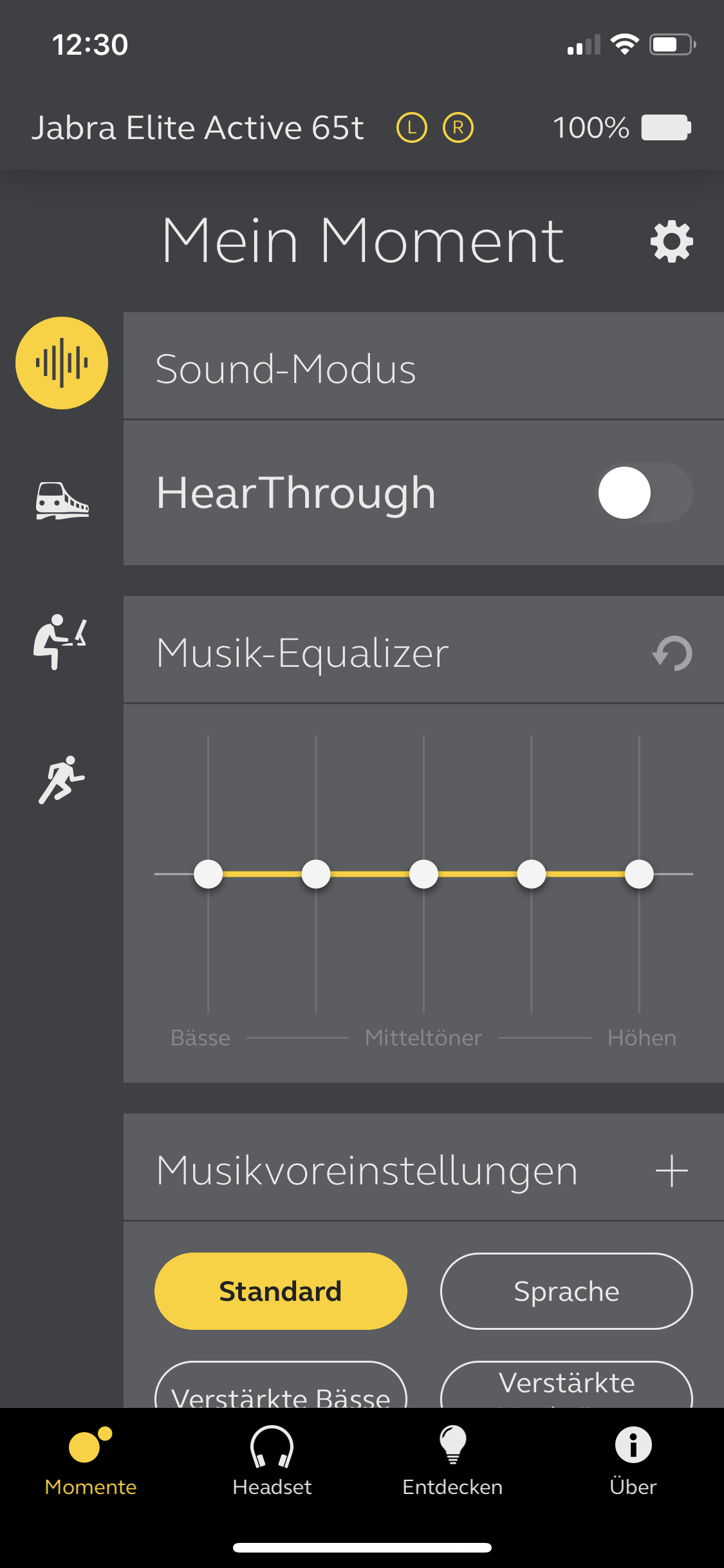 Mit diesen Funktionen könnte man eigentlich bereits zufrieden sein, doch in Verbindung mit der Jabra App „Sound+“ ist noch mehr drin. Zuallererst lässt sich damit die Firmware der Kopfhörer aktualisieren oder die Sprache auswählen der Ansagen auswählen. Vor allem lassen sich hierüber akustische Features justieren. Zum Beispiel die Stärke von Hear-Through, also wie viele Außengeräusche durchgelassen werden. Natürlich verfügt die App auch über einen einfach zu bedienenden Equalizer mit ein paar Voreinstellungen. Uns gefällt der Fokus-Modus, der per App aktiviert werden kann. Hierbei werden verschieden Geräusche und Töne abgespielt, die bei der Konzentration oder beim Einschlafen helfen. Die Bedienung der App ist trotz der vielfältigen Möglichkeiten gut durchdacht. Insgesamt ist sie eine tolle Ergänzung.