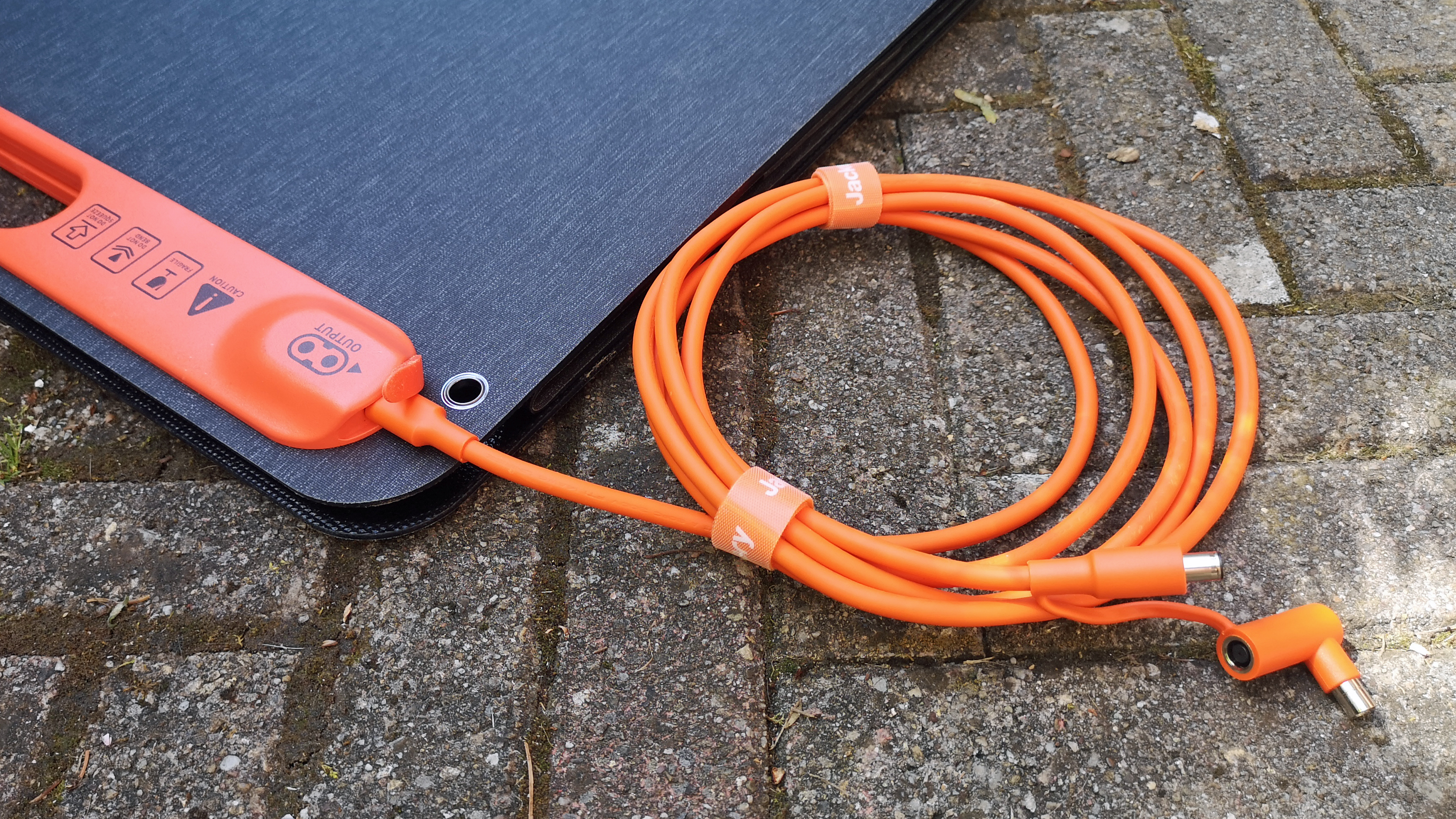 Die neuen Solarmodule kommen, anders als das Solarsaga 100 aus dem Bundle mit der Jackery Explorer 1000 (Testbericht), in praktischen und hochwertig verarbeiteten Schutztaschen zum Kunden. Das Anschlusskabel ist hier nicht fest integriert, sondern einzeln in der Tragetasche beigelegt und hinter einer Gummiabdeckung am Panel anschließbar. Da die Explorer 2000 Pro lediglich über zwei Gleichstrom-Eingänge verfügt, legt Jackery zusätzlich zwei Dreifach-Adapter für die sechs Solarmodule bei. Damit diese die volle Leistung erbringen, müssen an jedem Eingang der Explorer gleich viele Panels hängen.
