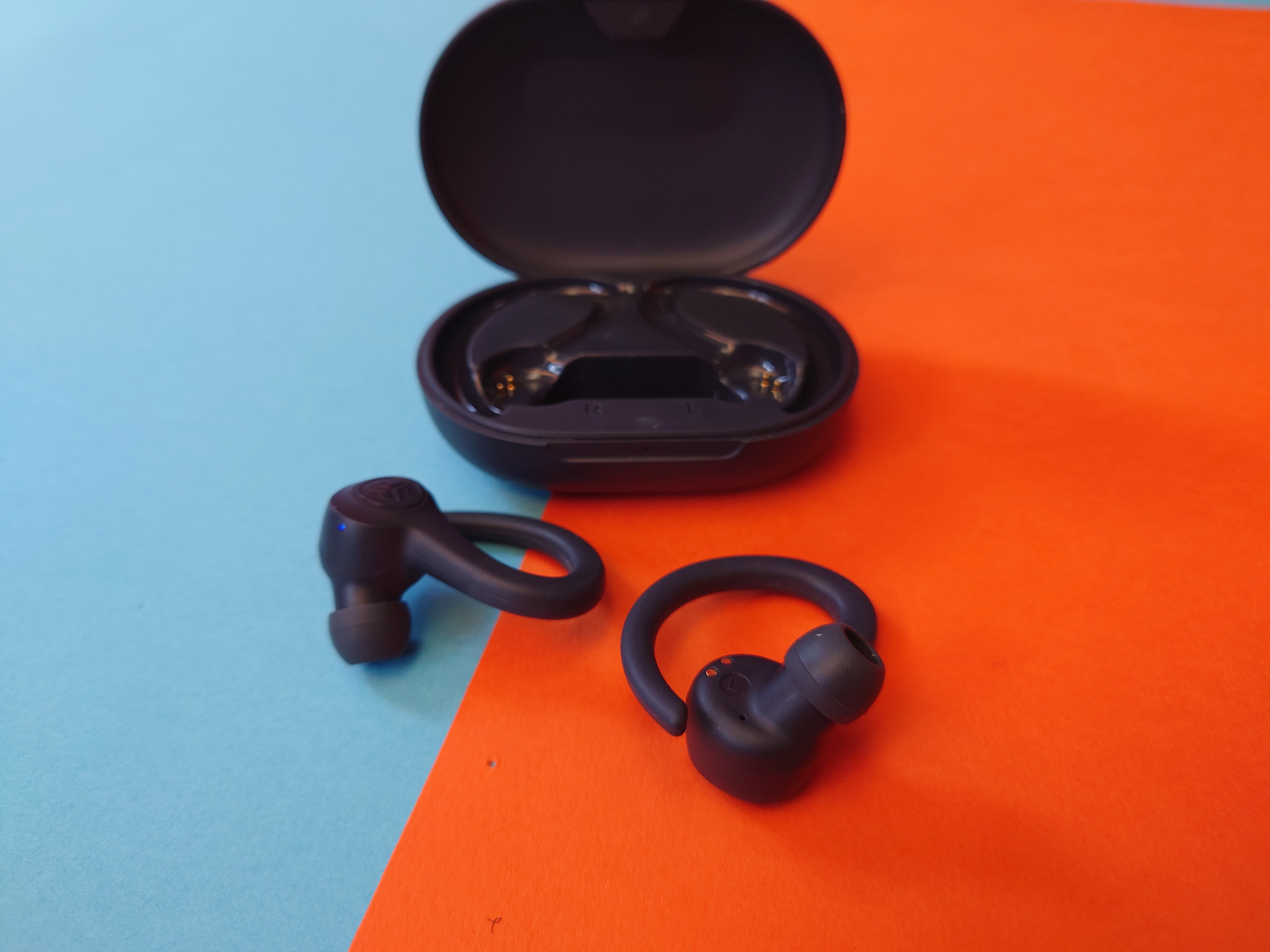 JLab setzt für die Go Air Sport auf ein Ohrbügel-Design. Das hatten wir lange nicht mehr im Test. Wahrscheinlich, weil es etwas altbacken im Vergleich zu schicken, kleinen In-Ears aussieht. Der große Vorteil ist aber, dass die Kopfhörer sehr gut halten und einen Teil des Gewichtes auf die Ohrmuschel verlagert wird.