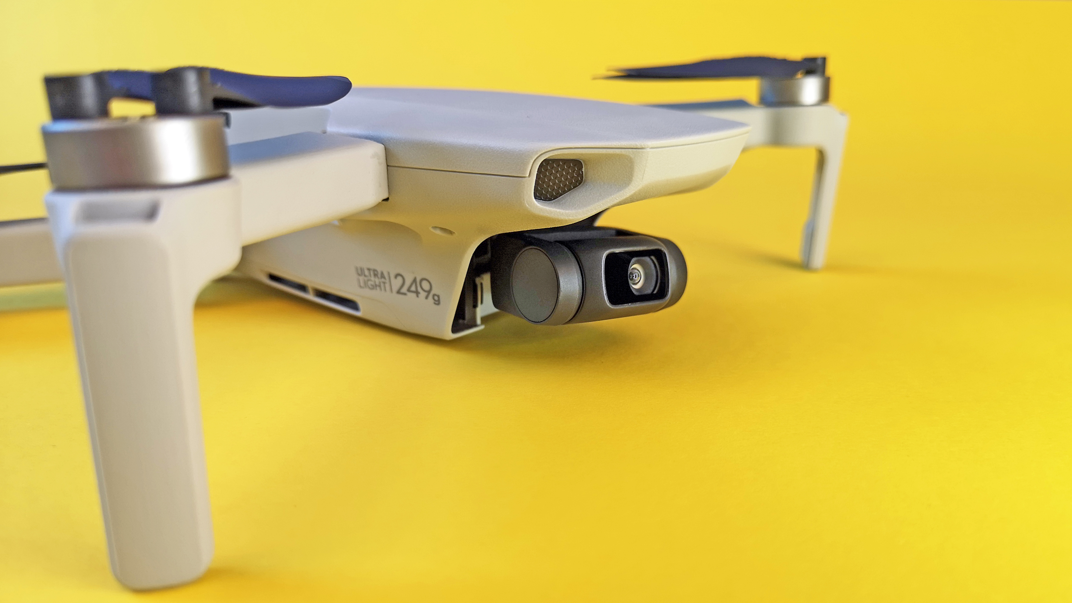 Die Kamera der Mavic Mini nutzt einen 12-Megapixel-1/2,3-Zoll-CMOS-Sensor mit einer festen Blende von f/2,8 und einem Sichtfeld von 83 Grad. Die Bitrate der Aufnahmen beträgt immerhin 40 MBit/s (H.264-Codec). Zum Vergleich, die professionelle Mavic 2 nimmt mit einer Bitrate von 100 MBit/s (H.265-Codec) auf. Die maximale Bildrate bei 2,7K-Aufnahmen (2720×1530 Pixel) liegt bei 30 fps; bei Full-HD-Aufnahmen sogar bei 60 fps. Fotos landen als JPEG mit einer Auflösung von maximal 4000×3000 Bildpunkten auf der bis zu 128 GByte großen MicroSD-Speicherkarte.