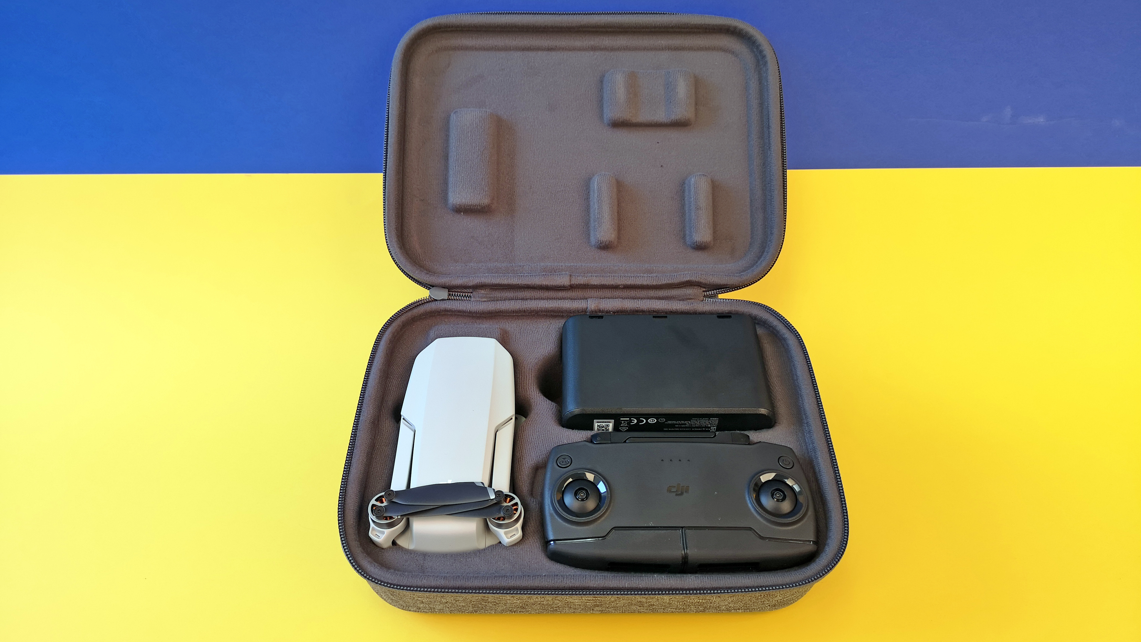 Für den Test hat uns DJI die um knapp 100 Euro teurere Fly-More-Combo der Mavic Mini zur Verfügung gestellt. Neben dem Standardzubehör sind hier zwei zusätzliche Akkus, eine Tagetasche, ein Dreifach-Ladegerät und ein Rundum-Propellerschutz beigepackt.