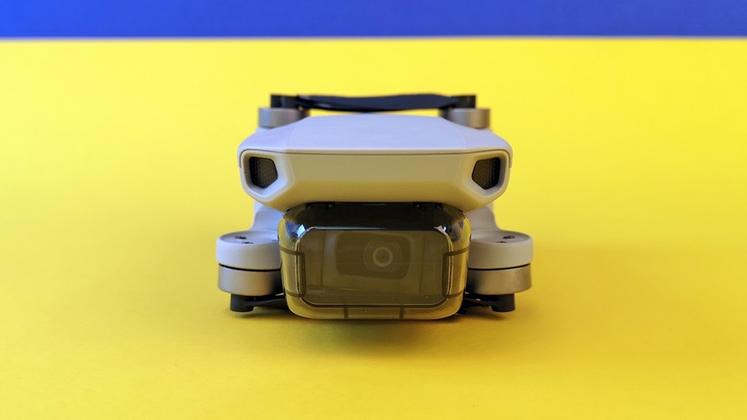 Zwar sieht die Mavic Mini aus, als würde sie über die von der Mavic Pro bekannten, nach vorne gerichteten Hindernissensoren verfügen, dies täuscht aber. In den entsprechenden Ausbuchtungen des Gehäuses sind lediglich Aufkleber angebracht. Wer mit der Mavic Mini unterwegs ist, kann sich also nicht blind auf die Technik verlassen – Hindernisse erkennt die Einsteigerdohne nicht automatisch.