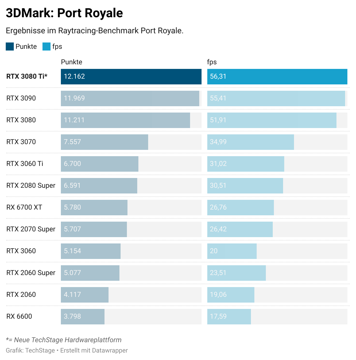 Was bedeutet dies für unsere bisherigen Benchmark-Ergebnisse? Aufgrund der Marktlage werden wir es nicht schaffen, alle bisherigen Modelle nachzutesten (oder zu bekommen). Wir haben aber eine Grafikkarte, eine Radeon RX 6600, die wir in drei vergleichbaren Umgebungen, der alten Intel-Testplattform und der neuen Testumgebung testen konnten. Natürlich kommen Unsicherheiten wie Treiber, CPU, Mainboard hinzu.
