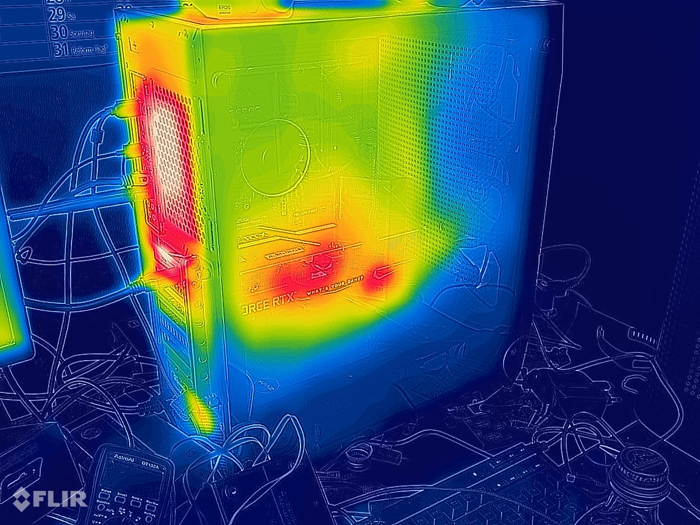 Die RTX 3080 Ti ist hungrig. Aus unserem 650 Watt Netzteil zog das komplette System in der Spitze bis zu 467 Watt (zum Vergleich, die RTX 3080 lag bei 421 Watt, die RX 6600 gar bei 205 Watt). Entsprechend sollte man das Netzteil großzügig dimensionieren.