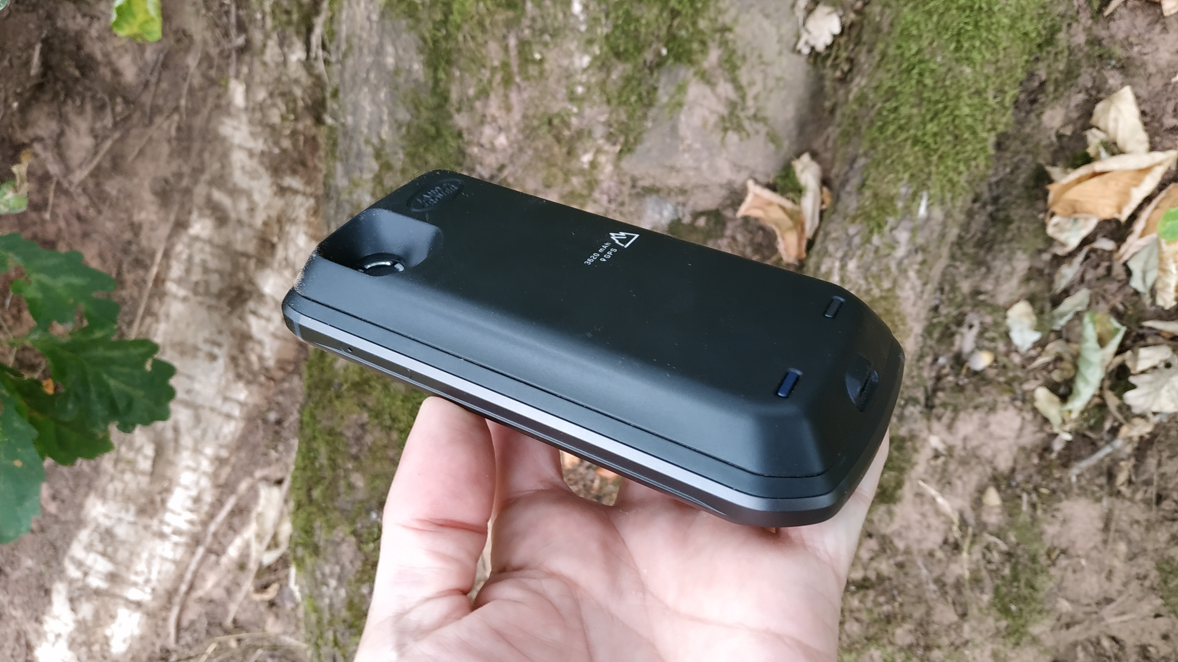 Unterhalb Kamera und Logo befinden sich acht vergoldete Kontaktpunkte zur Verbindung mit speziellem Zubehör, das magnetisch am Land Rover Explore haftet. Im Lieferumfang des Outdoor-Smartphones befindet sich dann auch gleich ein sogenanntes „Adventure Pack“. Zu diesem gehört ein externer Akku nebst integrierter GPS-Antenne, der sich eben dieser Möglichkeit zur Erweiterung der Funktionalität des Smartphones bedient. Einfach hinten aufgelegt ist die Verbindung über Magnet dann bombig fest und stabil.