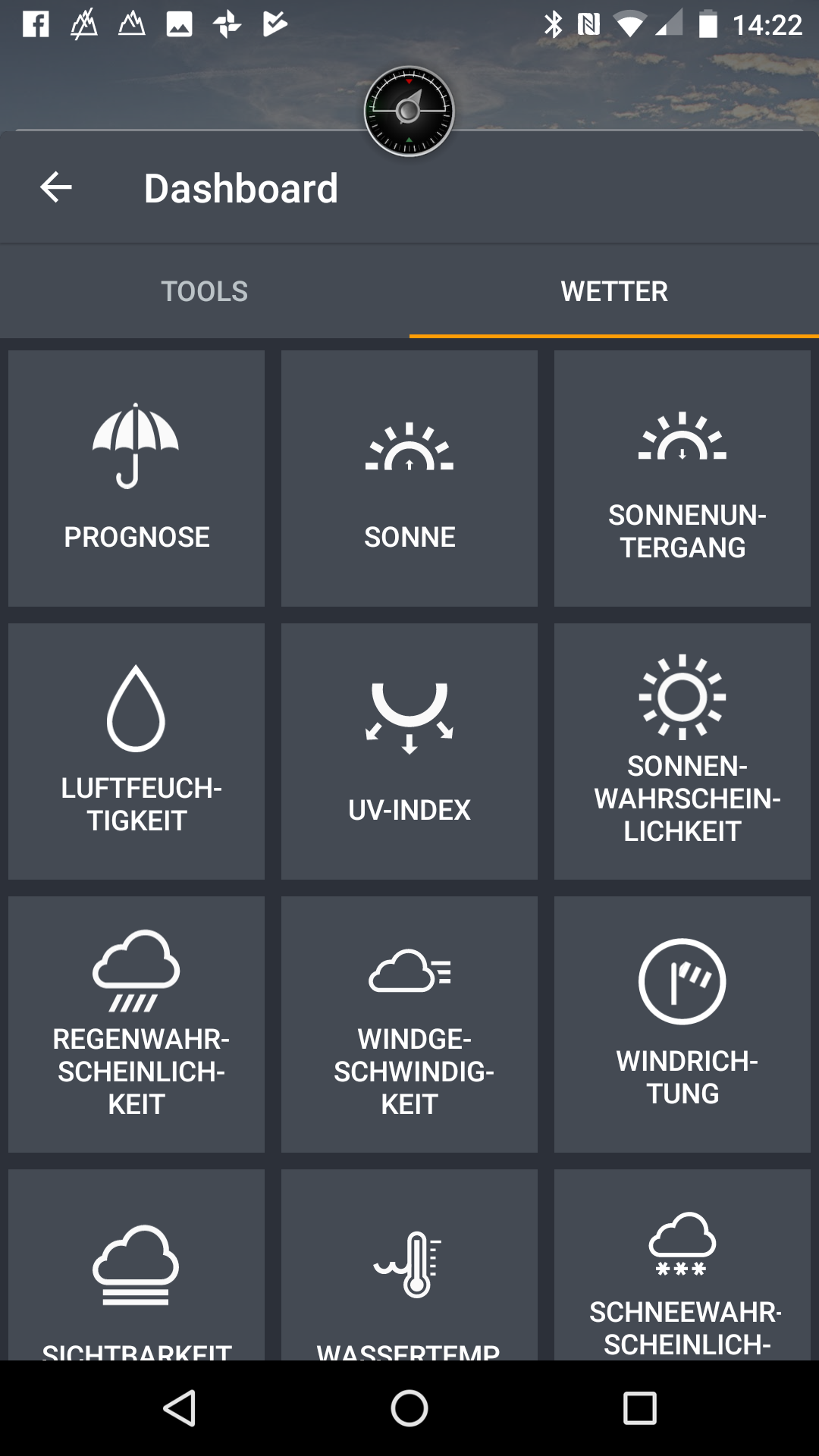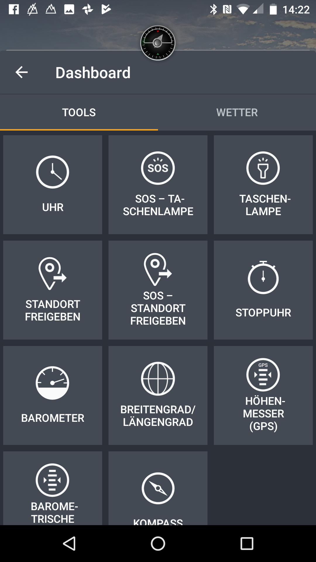 Die Anpassungen des Herstellers an das installierte Android in Version 7.1.1 beschränken sich in erster Linie auf vorinstallierte Applikationen für den Outdoor-Einsatz. Beispielsweise gibt es einen eigenen App-Store mit großer Auswahl an Programmen zur Unterstützung beim Wandern, Radfahren und Co., ein Dashboard mit Schnellzugriff auf nützliche Tools und Wetterinformationen und Apps wie Geocaching oder ViewRanger . Für letztere App bekommt der Käufer einen Gutschein für freien Zugang zu landesweiten topografischen Karten und zum Herunterladen benutzerdefinierter Kartenbereiche über mehrere Länder hinweg. Der zum Zeitpunkt des Tests installierte Google-Sicherheitspatch stammte vom 05. April 2018. Ein Update auf Android Oreo hat der Hersteller angekündigt.