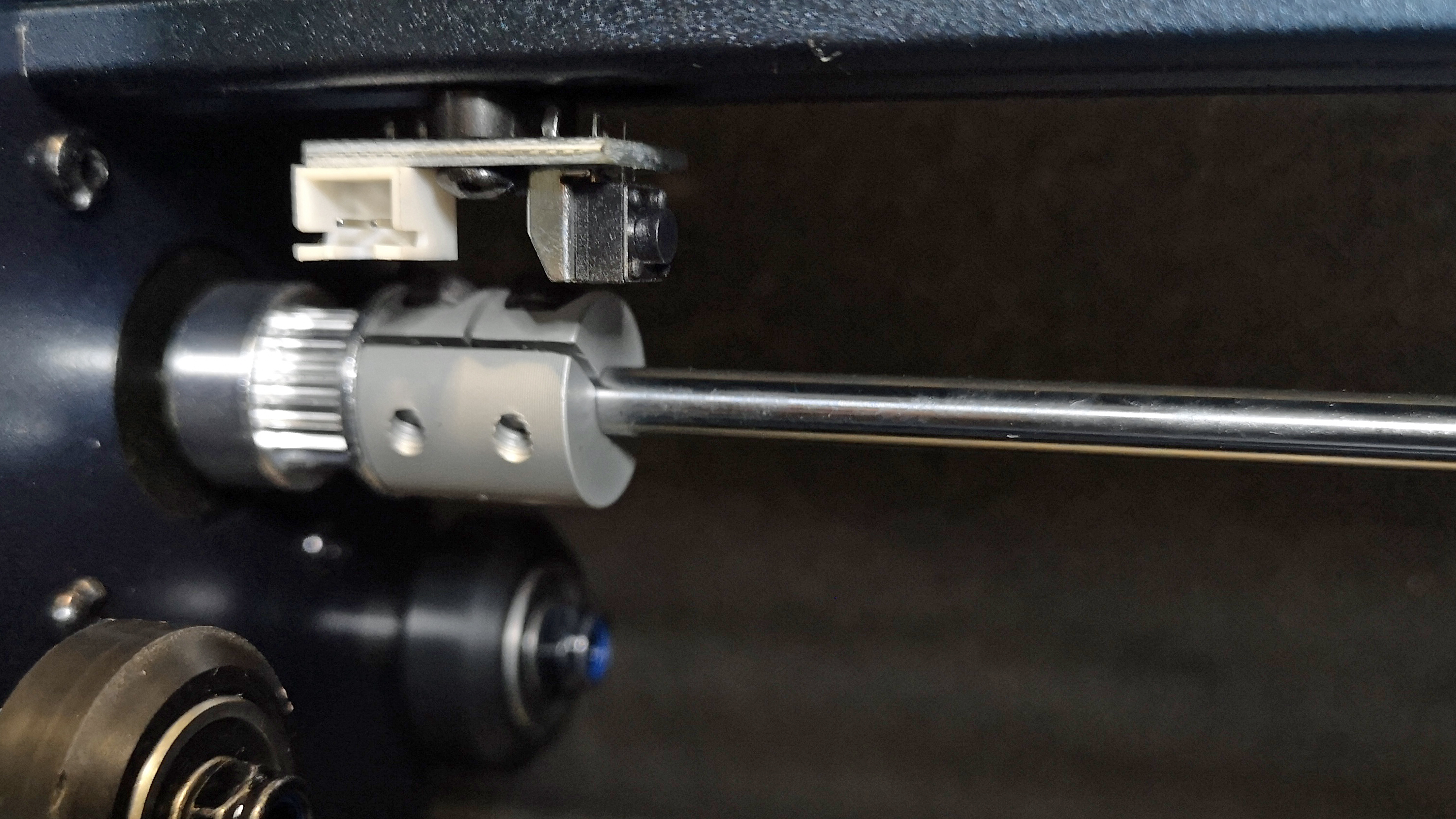 Der Rahmen des A20 ist gleichzeitig die y-Achse, auf der sich die x-Achse vor- und zurückbewegt. Der Laser-Kopf sitzt auf der x-Achse und vollführt auf dieser die Seitwärtsbewegungen. Da es sich um einen Laser mit festem Fokus handelt, muss der Abstand von Lasermodul und Werkstück angepasst werden. Das funktioniert mittels einer Stellschraube, mit der das Lasermodul an der z-Achse befestigt ist. Zur Ermittlung des optimalen Abstands zur Oberfläche ist eine Kalibrierhilfe zum Unterlegen im Lieferumfang enthalten. Passt dieses noch gerade so zwischen Laser und Werkstück, sitzt der Fokus optimal und der Laser spielt sein volles Potenzial aus.