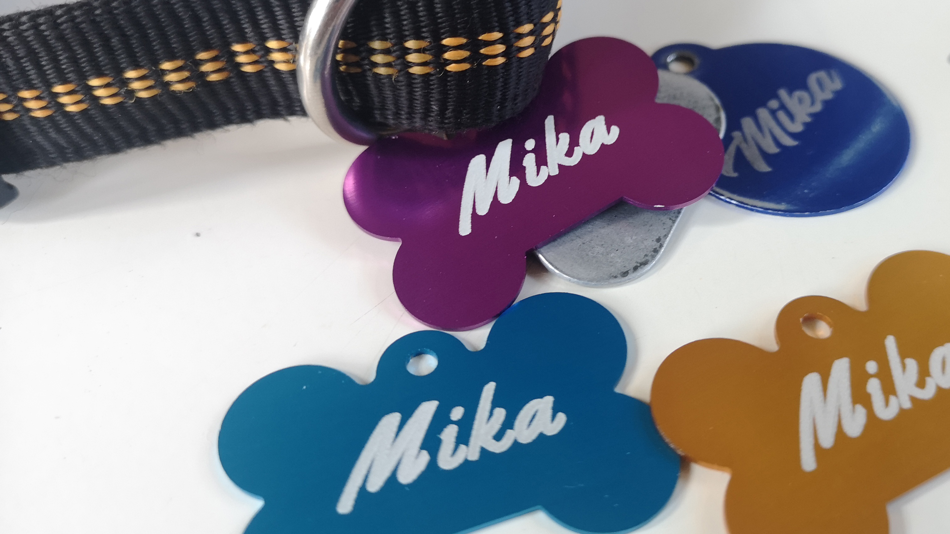 Das Markieren von Aluminium und Edelstahl funktioniert ebenfalls prima. Neben einiger Tests auf Werkzeugoberflächen und alten Messern haben wir direkt auch ein paar neue Hundemarken beschriftet. Auch das Gravieren von Leder und Stein funktioniert problemlos. Allerdings sind Rauch- und Geruchsentwicklung bei Leder höchst unangenehm. Hier sollte man grundsätzlich mit wenig Leistung arbeiten, um das empfindliche Material nicht zu verbrennen. Außerdem sollte man das Leder aufspannen, da es sich beim Bearbeiten verzieht.