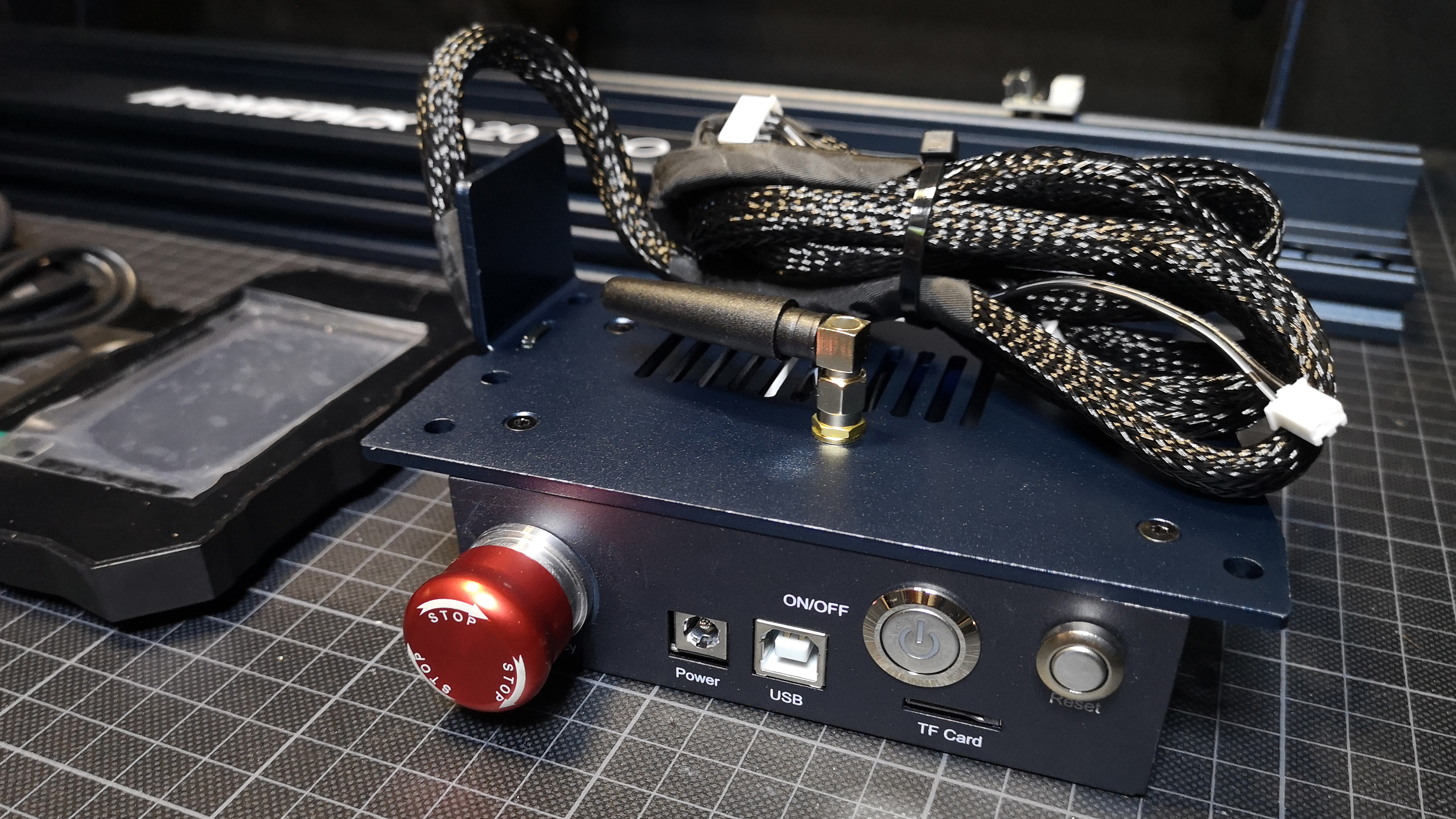 Offline-Funktion und Endstopps kennen wir zwar schon von anderen Lasern, eine funktionierende WLAN-Steuerung hatten aber auch die noch nicht an Bord. Eine weitere Neuerung ist der im Lieferumfang enthaltene Air-Assist. Hierbei handelt es sich um ein System zur Vermeidung von Brandspuren. Es besteht aus einem Kompressor, welcher Luft durch einen Schlauch und eine Düse direkt auf den Laserstrahl bläst. So ausgestattet werden Brandspuren sichtbar verringert und die Schneidkraft verbessert. Bisher musste man hier selbst DIY-Lösungen finden oder welche vom Hersteller dazukaufen – hier ist alles mit dabei. Privat sind alle unsere Laser damit nachgerüstet.